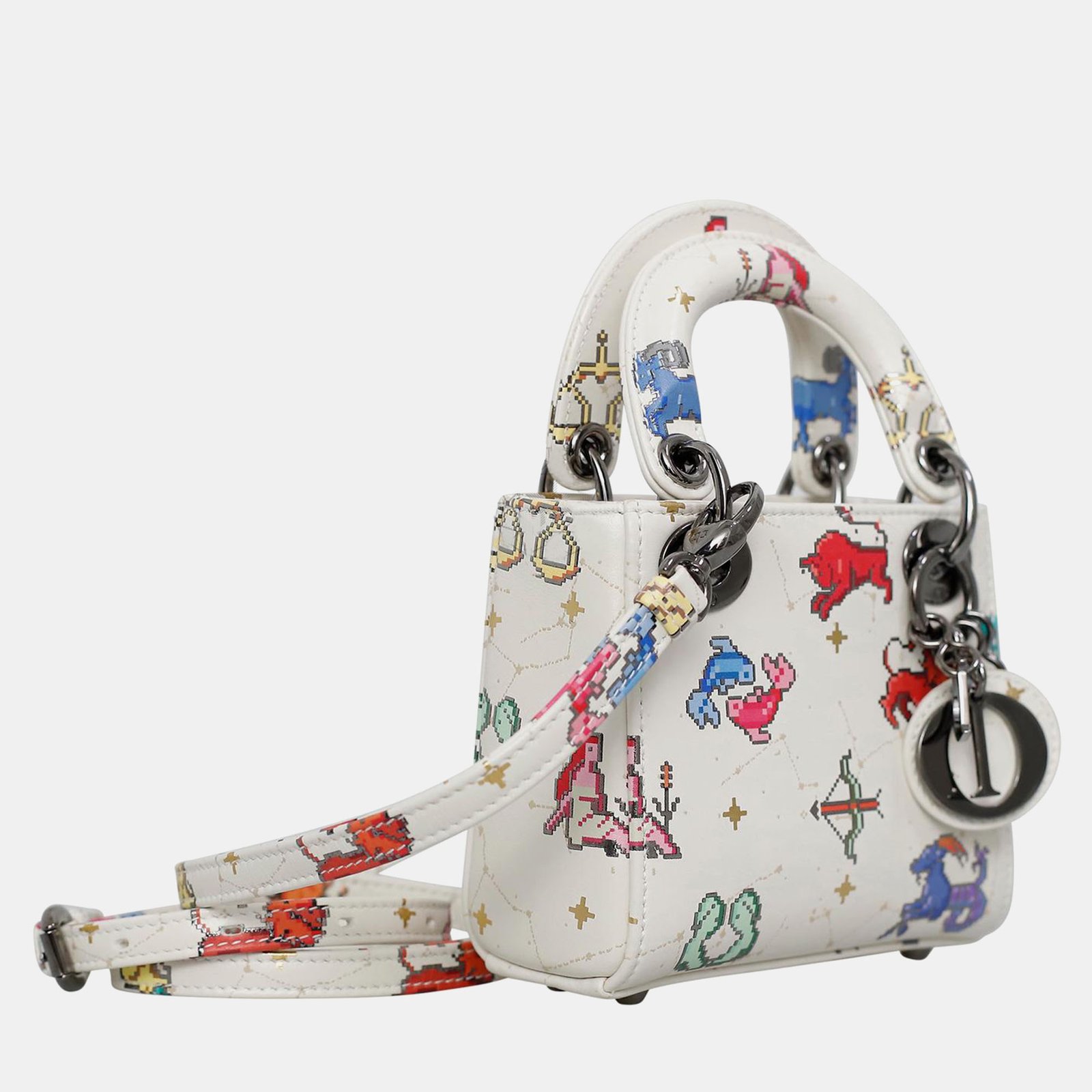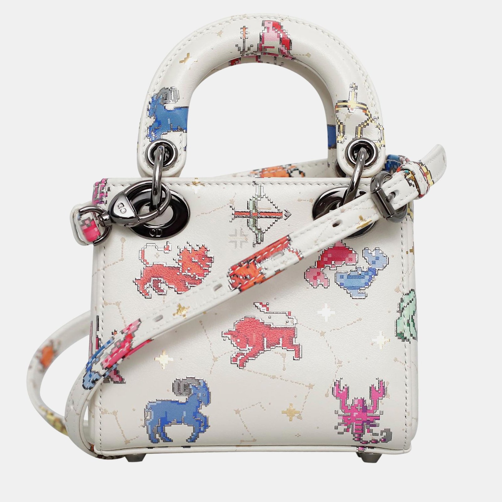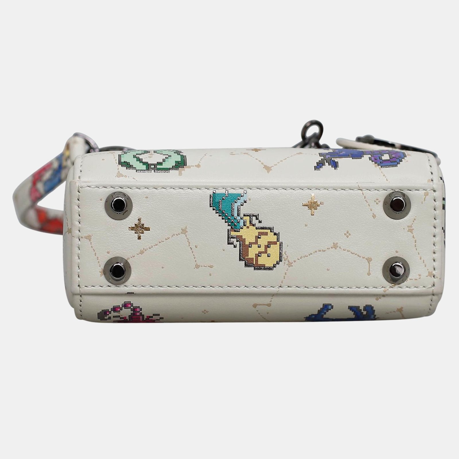 Dior White Leather Zodiac Pixel Micro Lady Dior Tote Bag