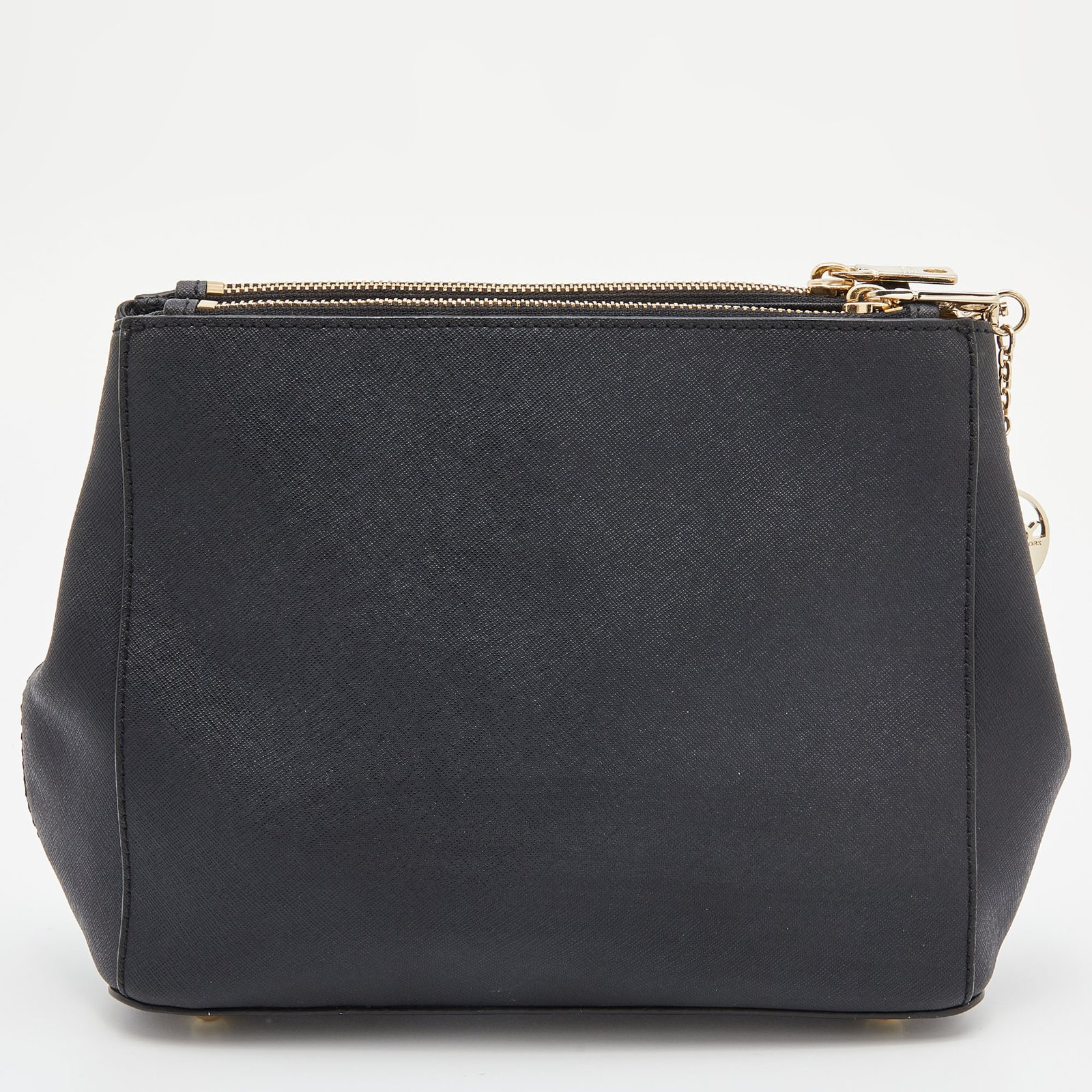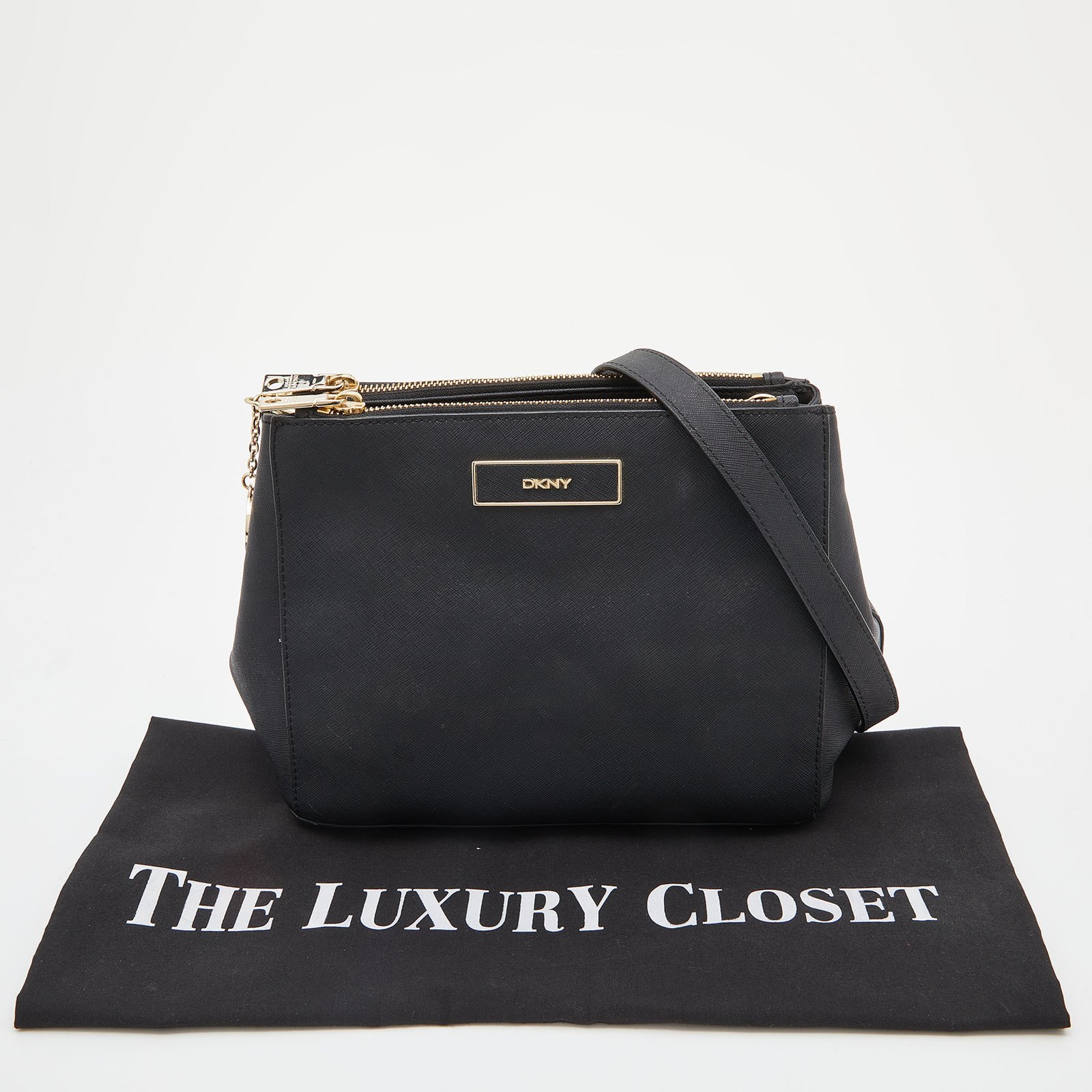 Dkny Black Saffiano Leather Double Zip Crossbody Bag