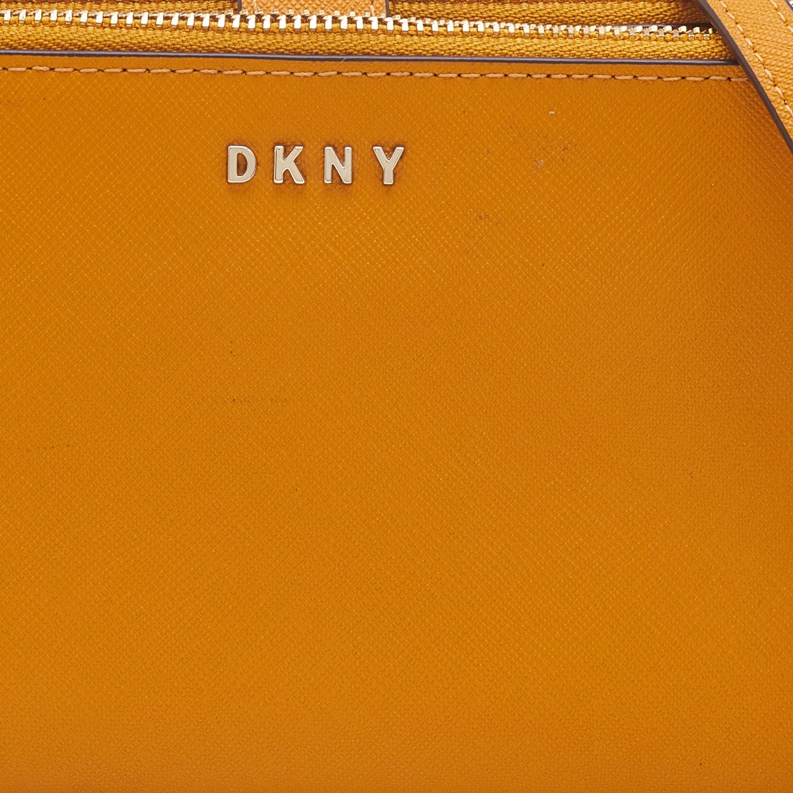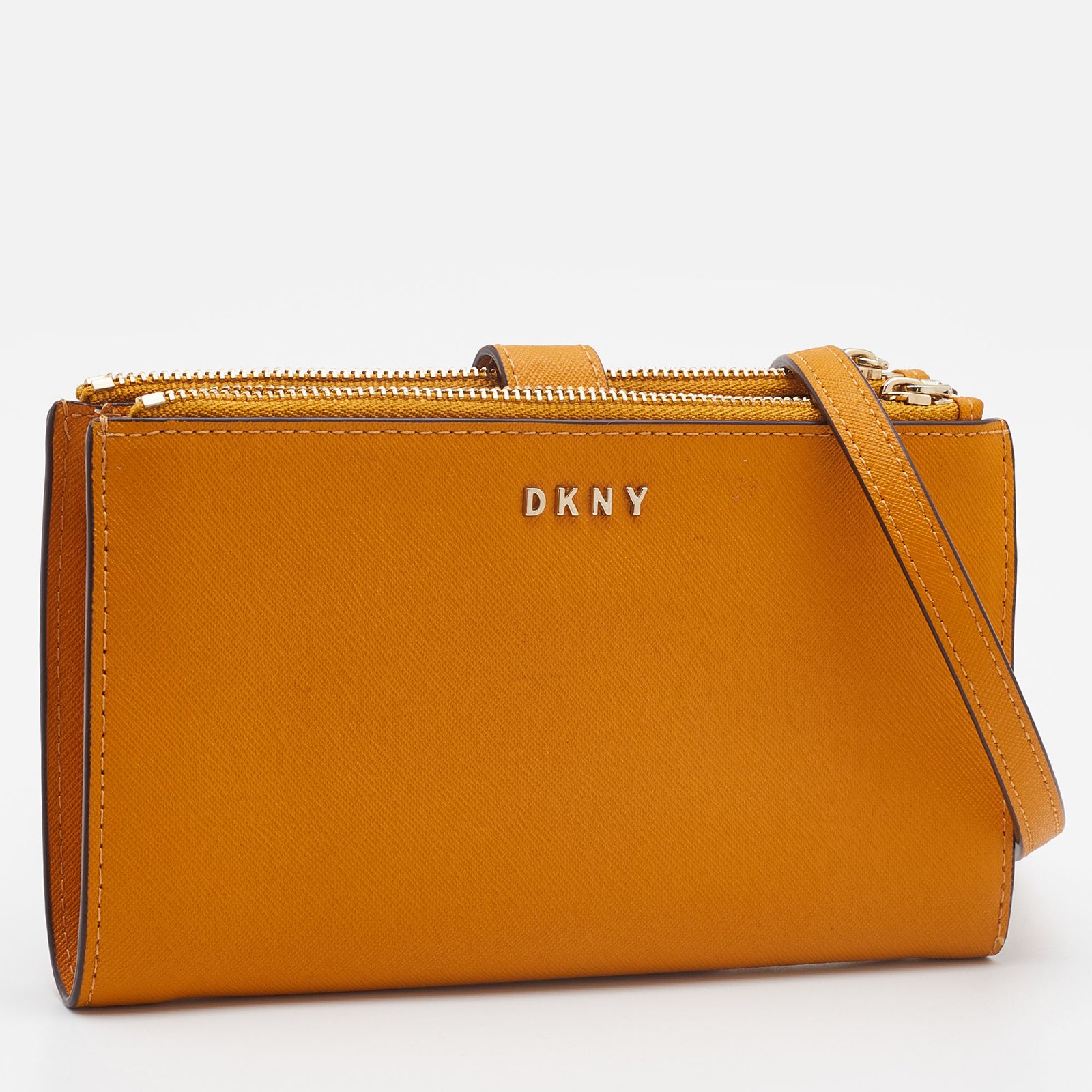 Dkny Mustard Leather Double Zip Crossbody Bag
