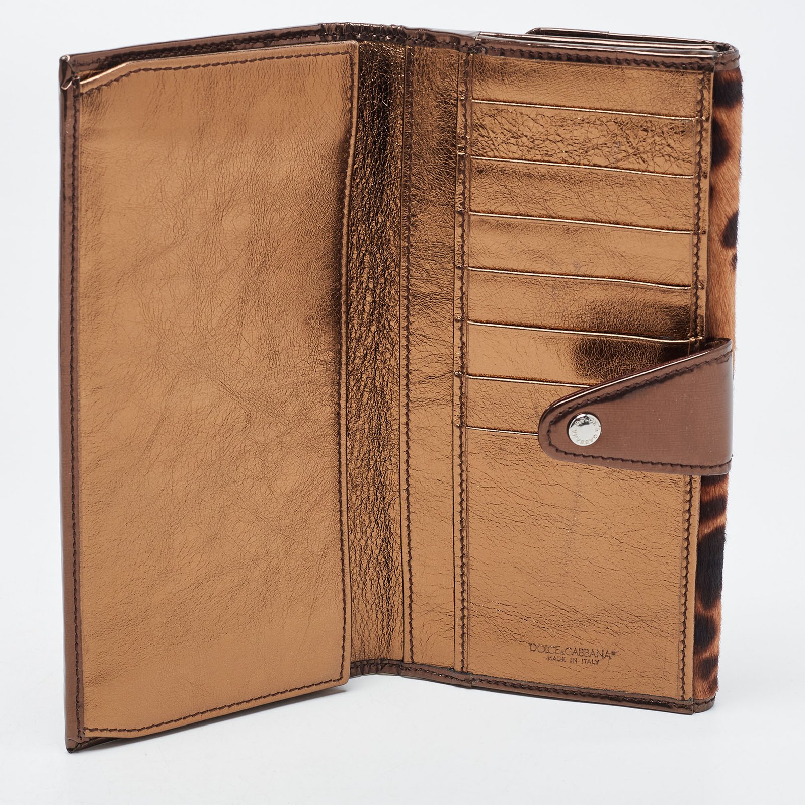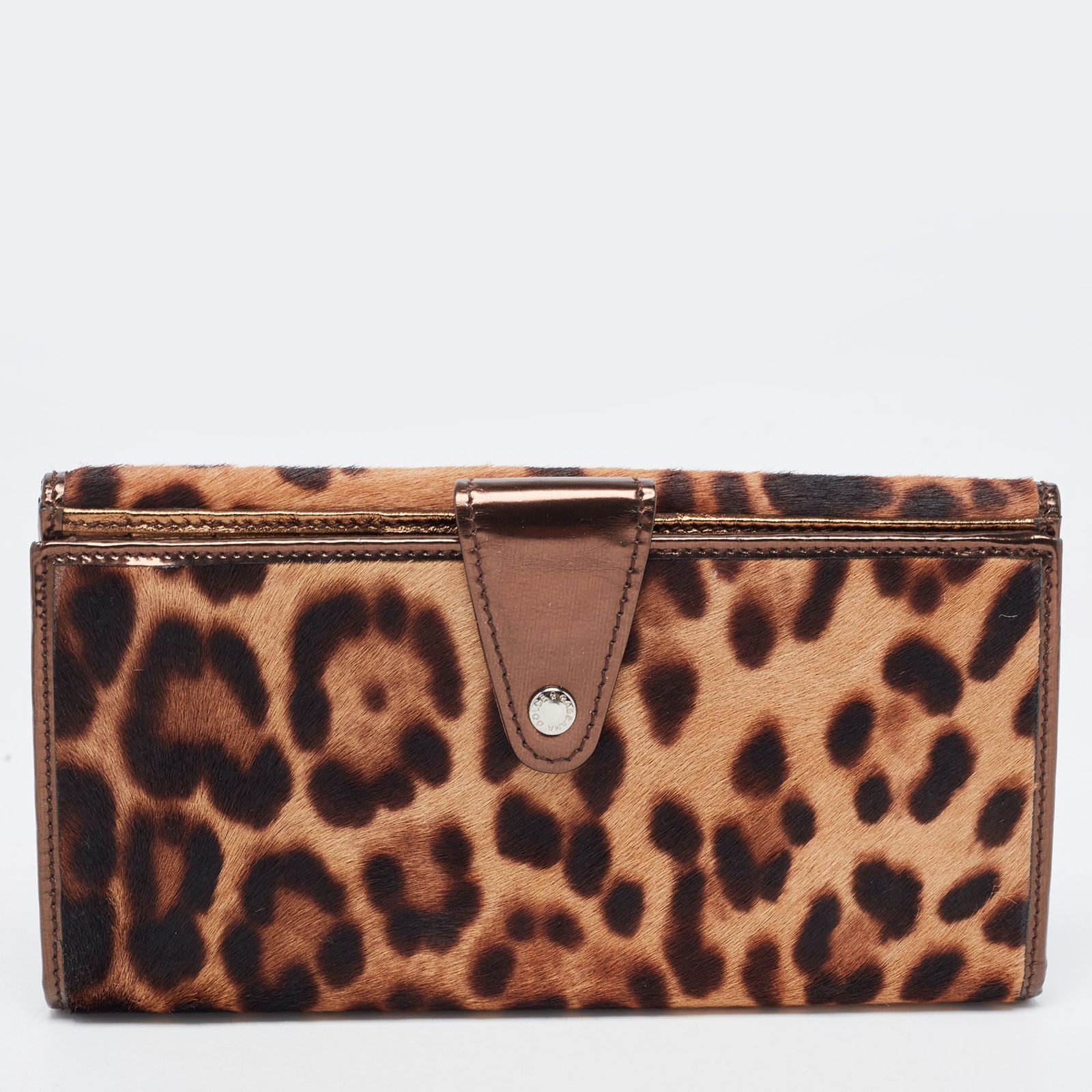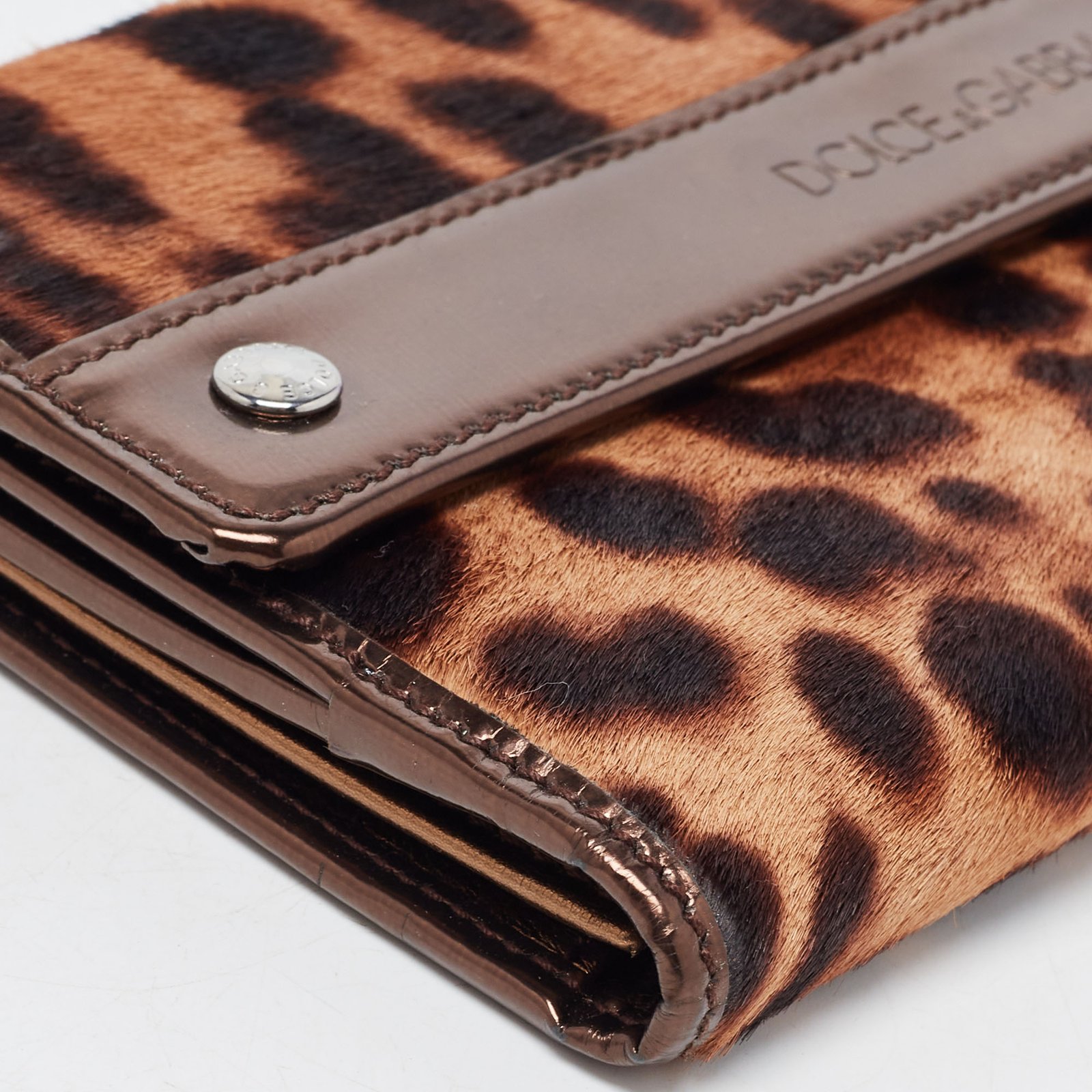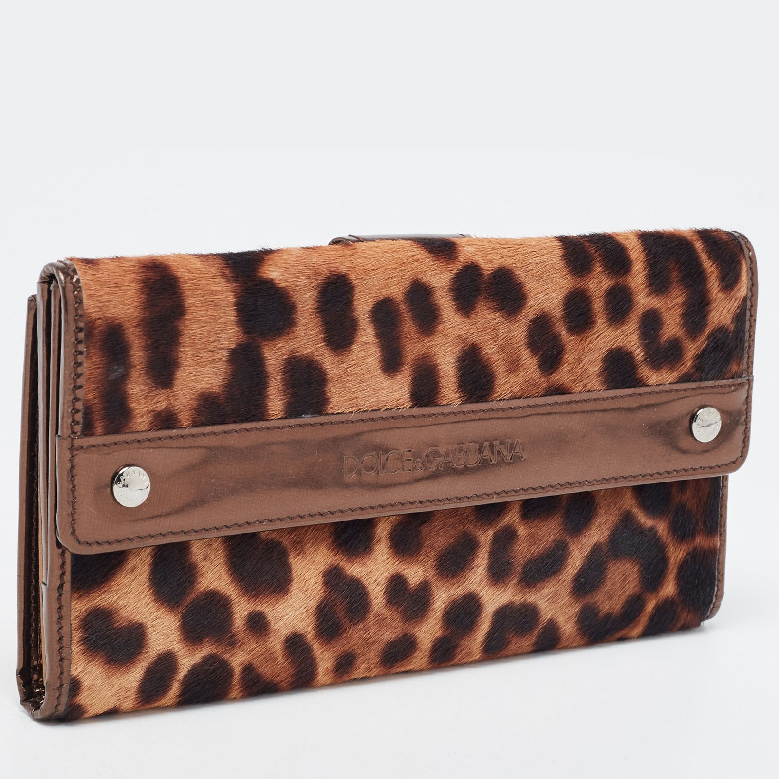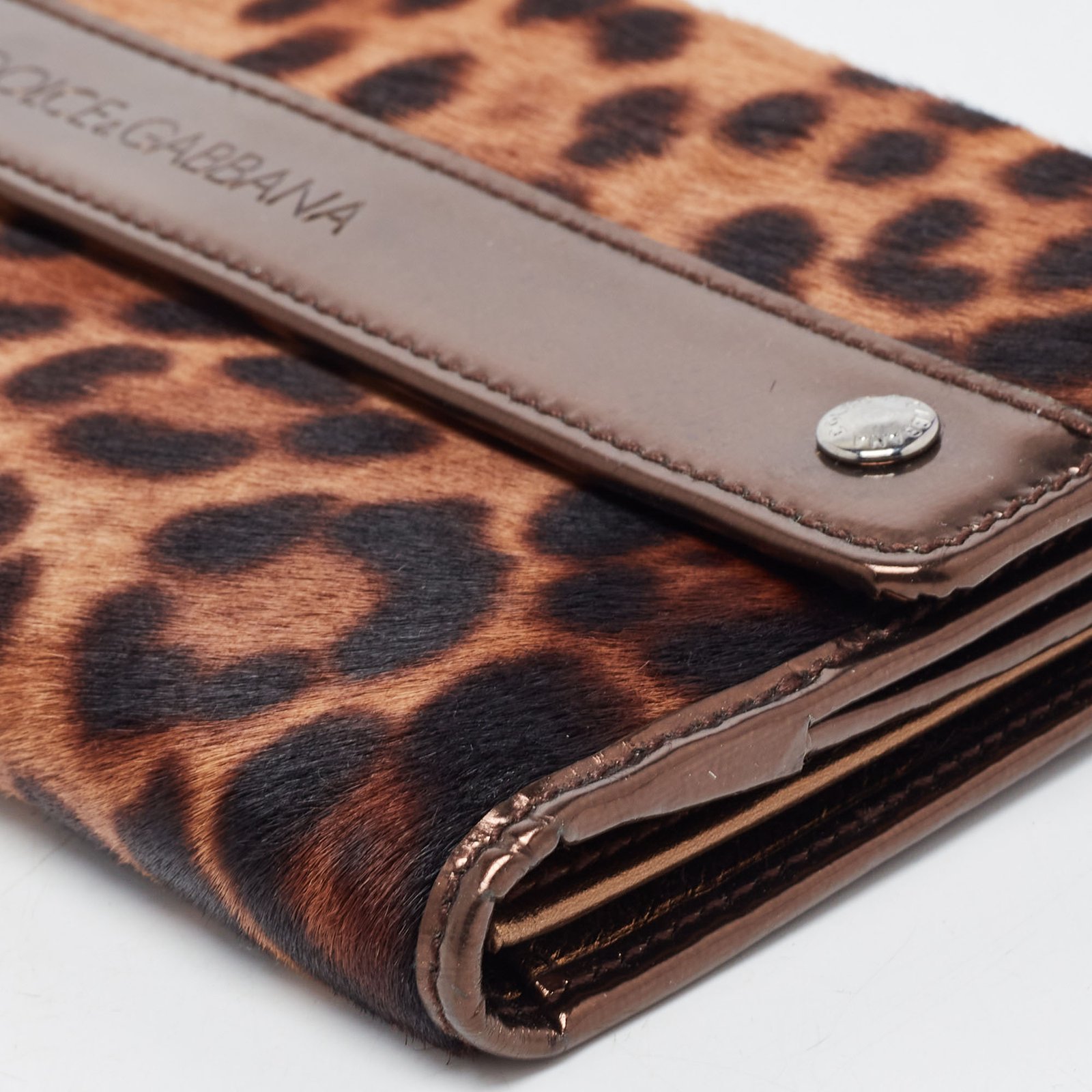 Dolce & Gabbana Brown Leopard Print Calfhair and Patent Leather Continental Wallet