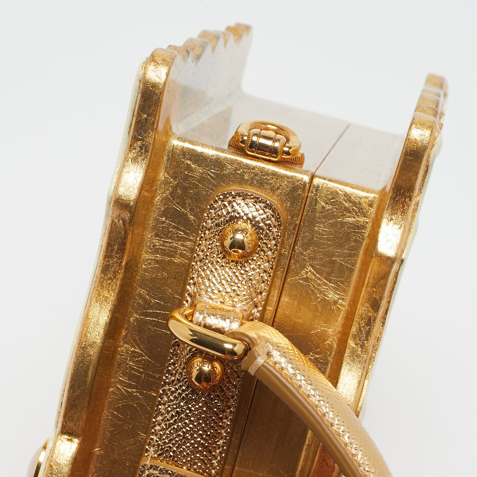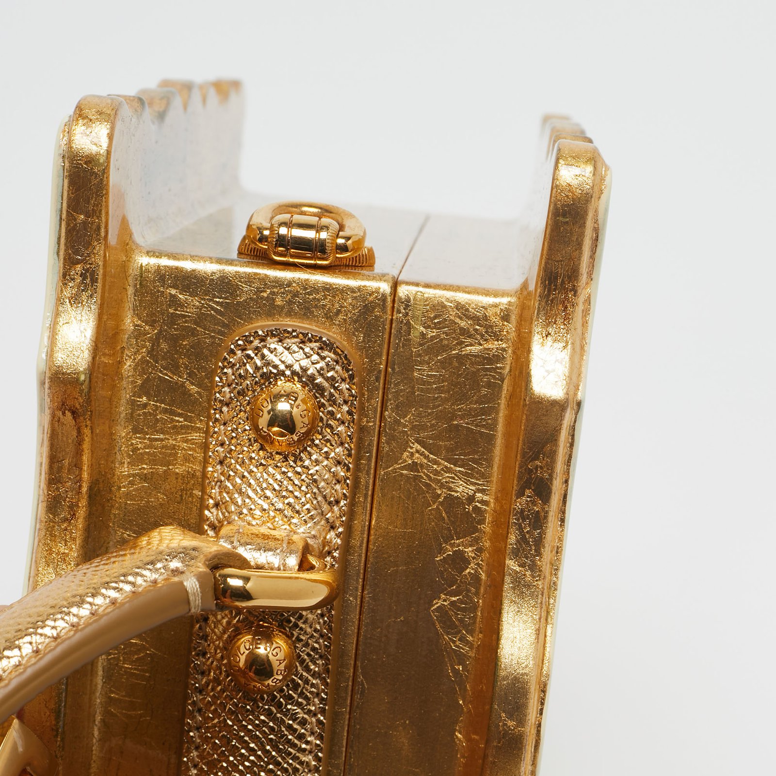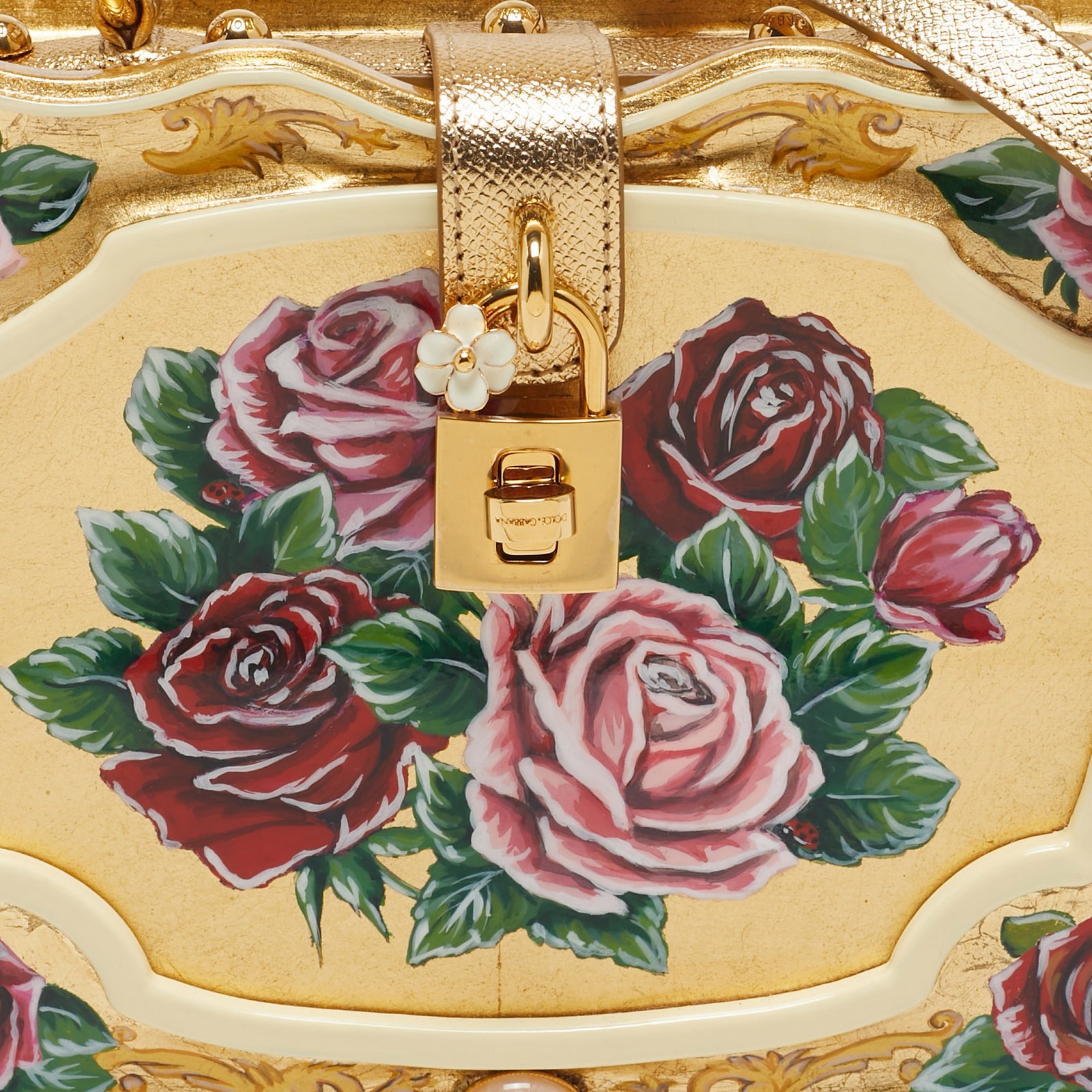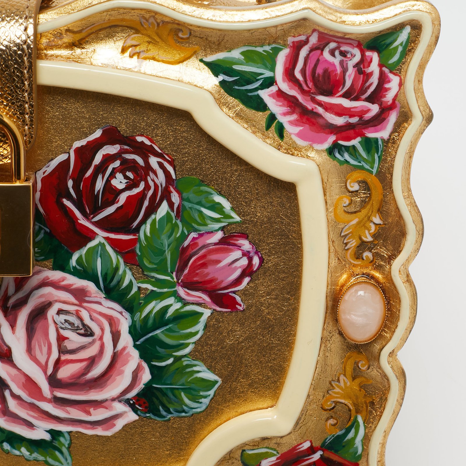 Dolce & Gabbana Gold/Red Rose Painted Wood Dolce Box Top Handle Bag