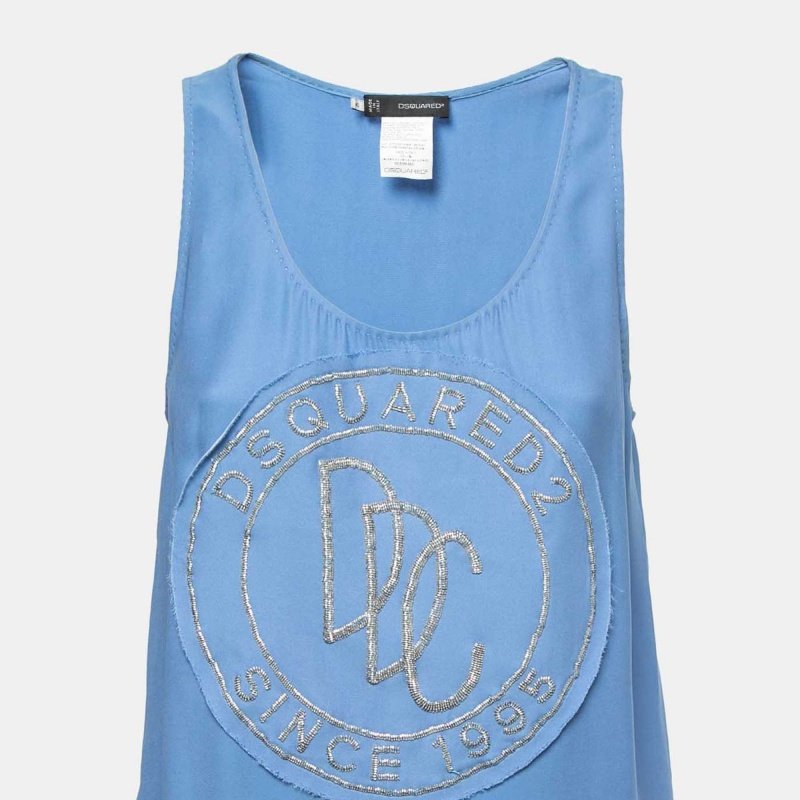 Dsquared2 Blue Logo Embellished Crepe Tank Top S