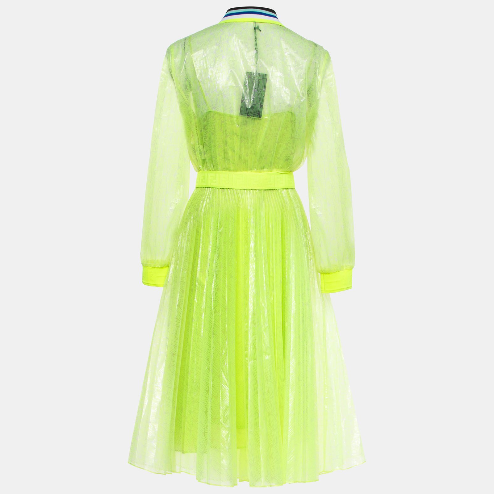 Fendi Neon Yellow Printed Synthetic Pleated Bleated Midi Dress M - Image 5