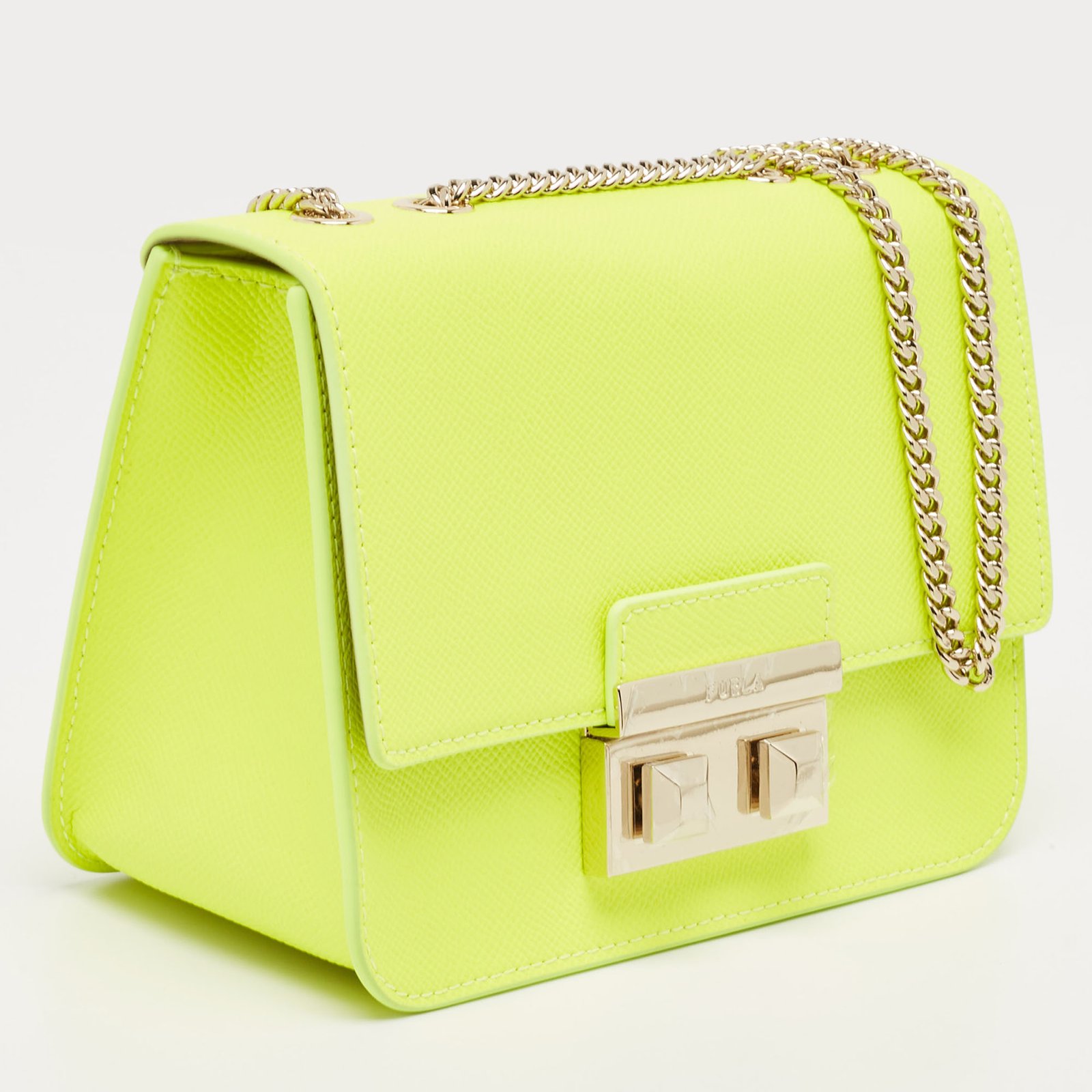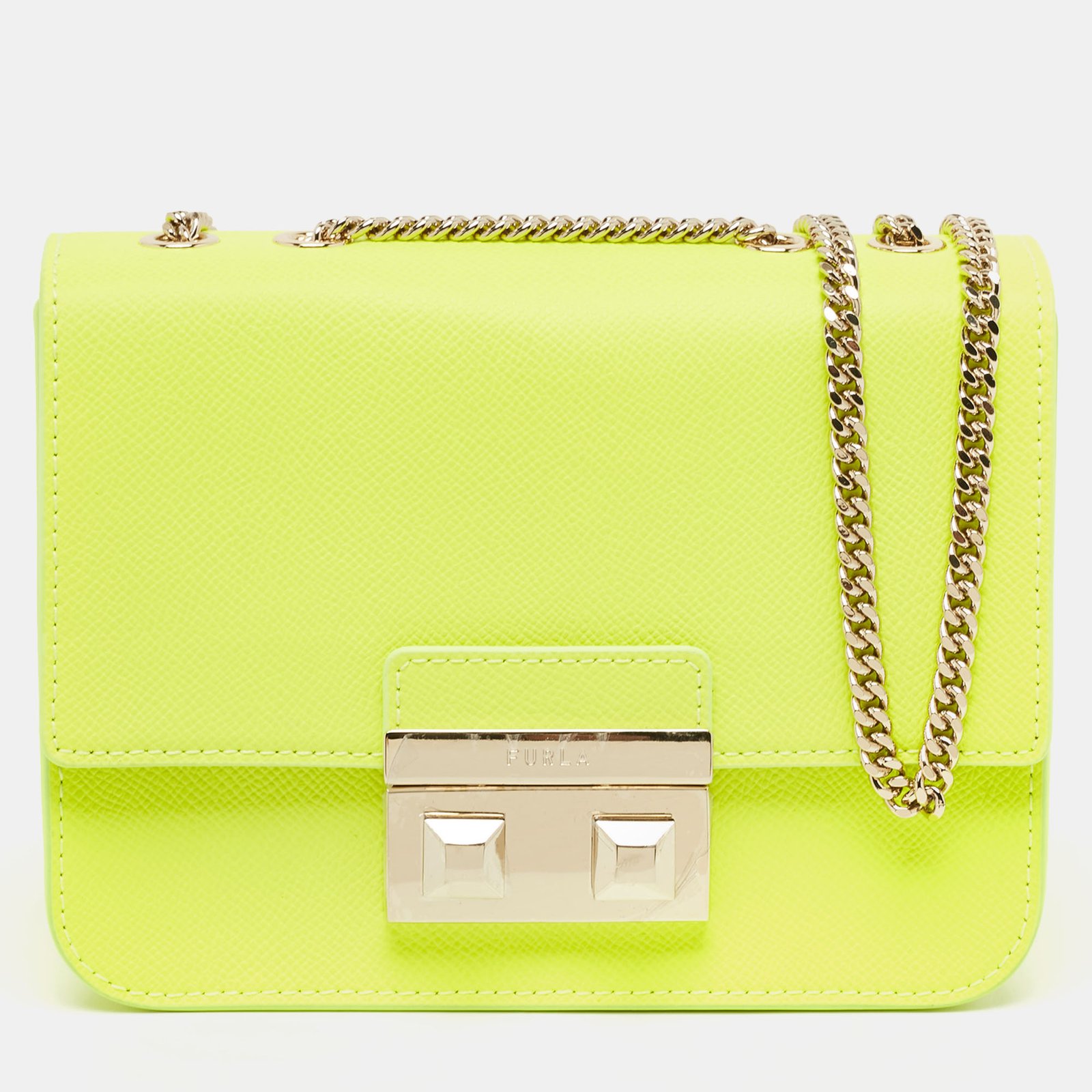 Furla Neon Green Leather Mini Bella Crossbody Bag