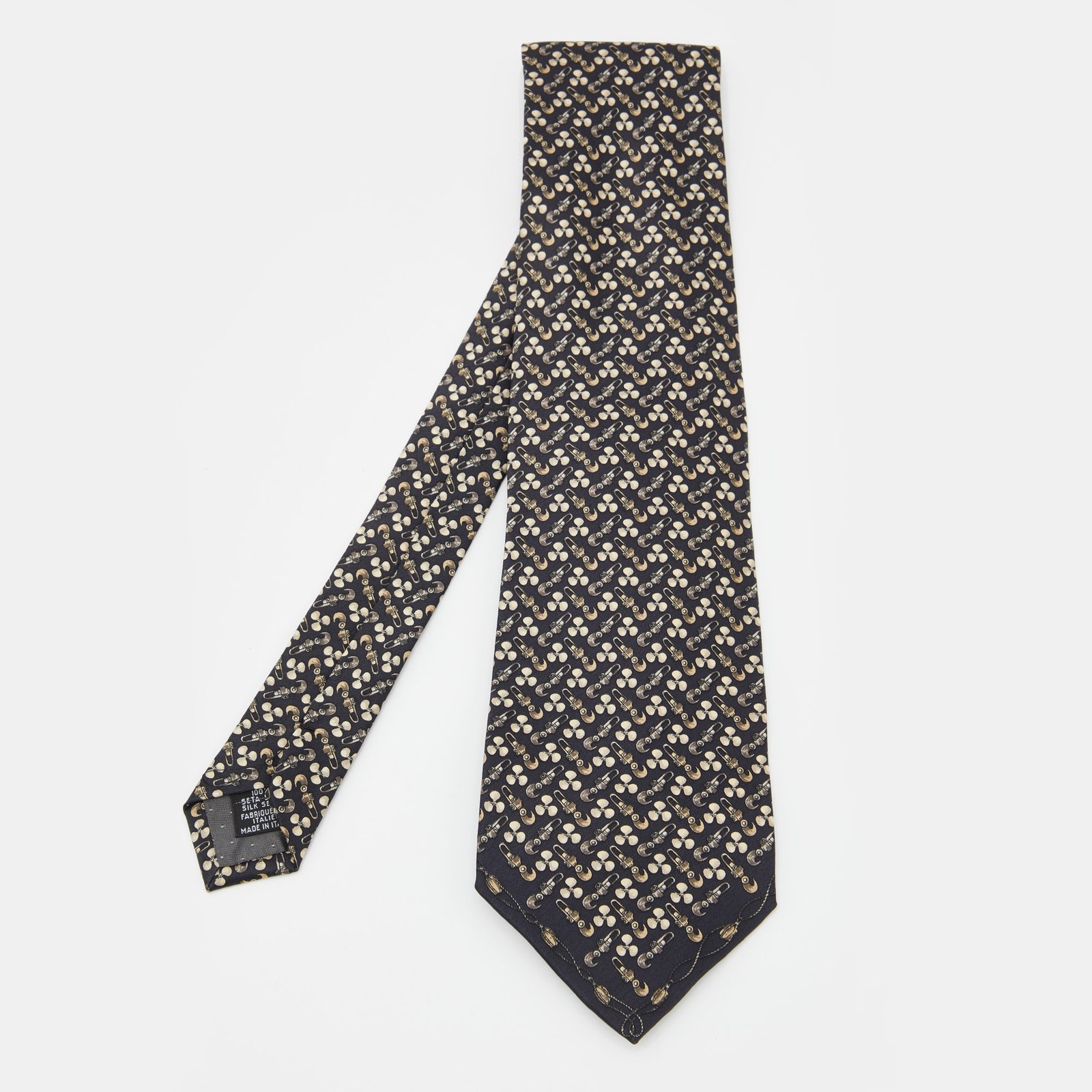 Gianfranco Ferre Black Fan Printed Silk Tie