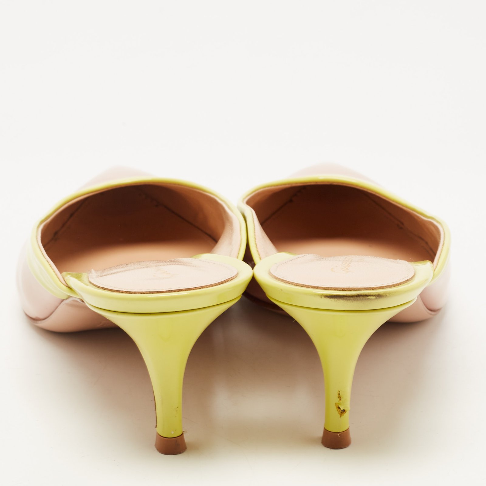 Gianvito Rossi Beige/Green Patent Leather Fanny Mules Size 38.5