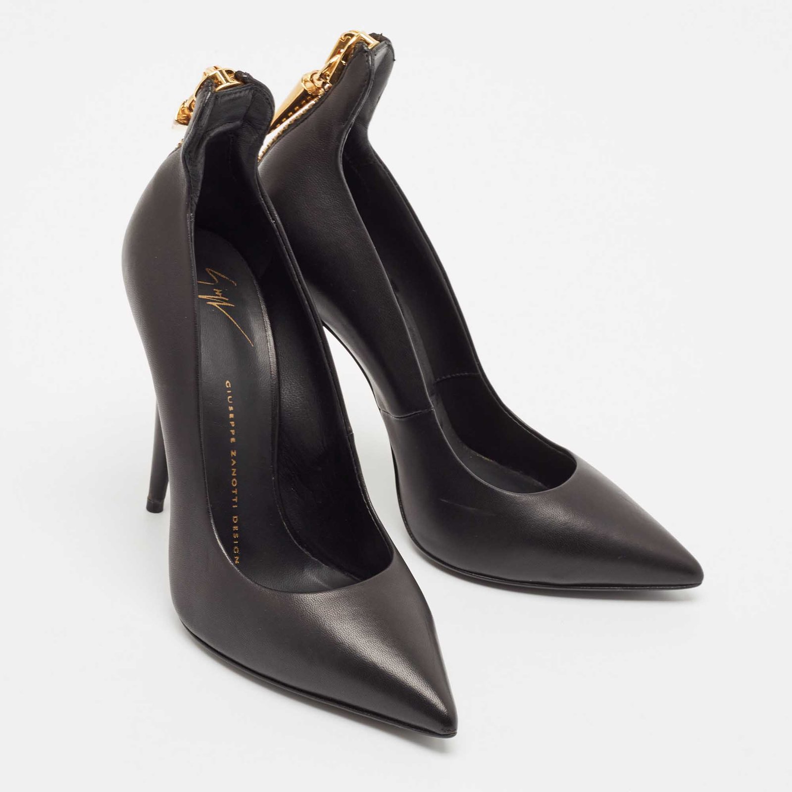 Giuseppe Zanotti Black Leather Horn Zip Back Pumps Size 38