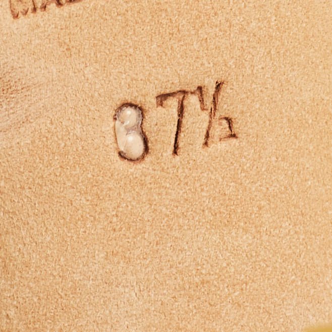 Good – In good condition with minor darkening, discoloration, marks on few areas, slight scuff on heel, splits on insole, slight stickiness on exterior, amended sole.