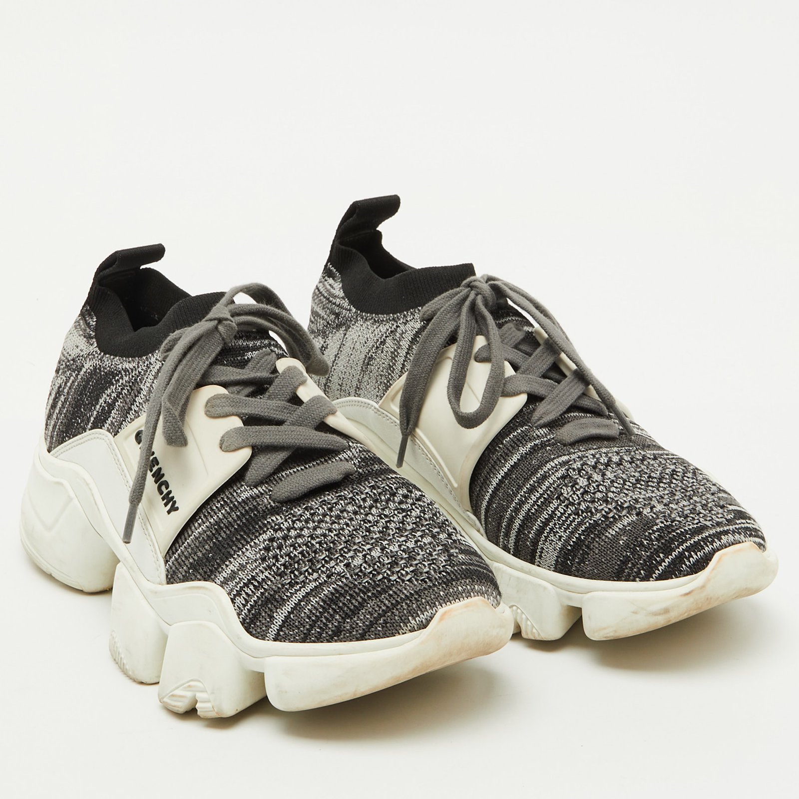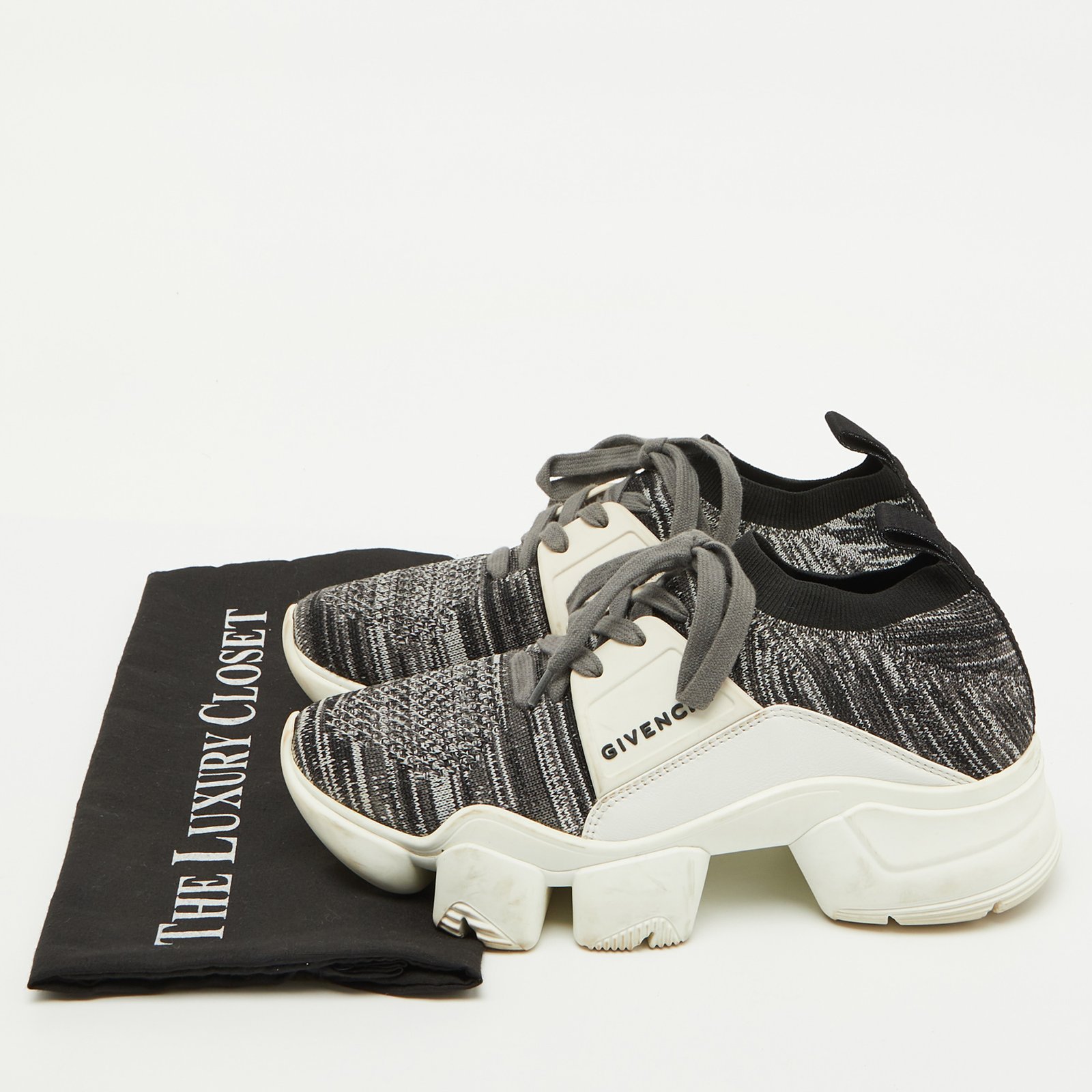 Givenchy Grey/White Knit Fabric and Rubber Jaw Low Top Sneakers Size 38