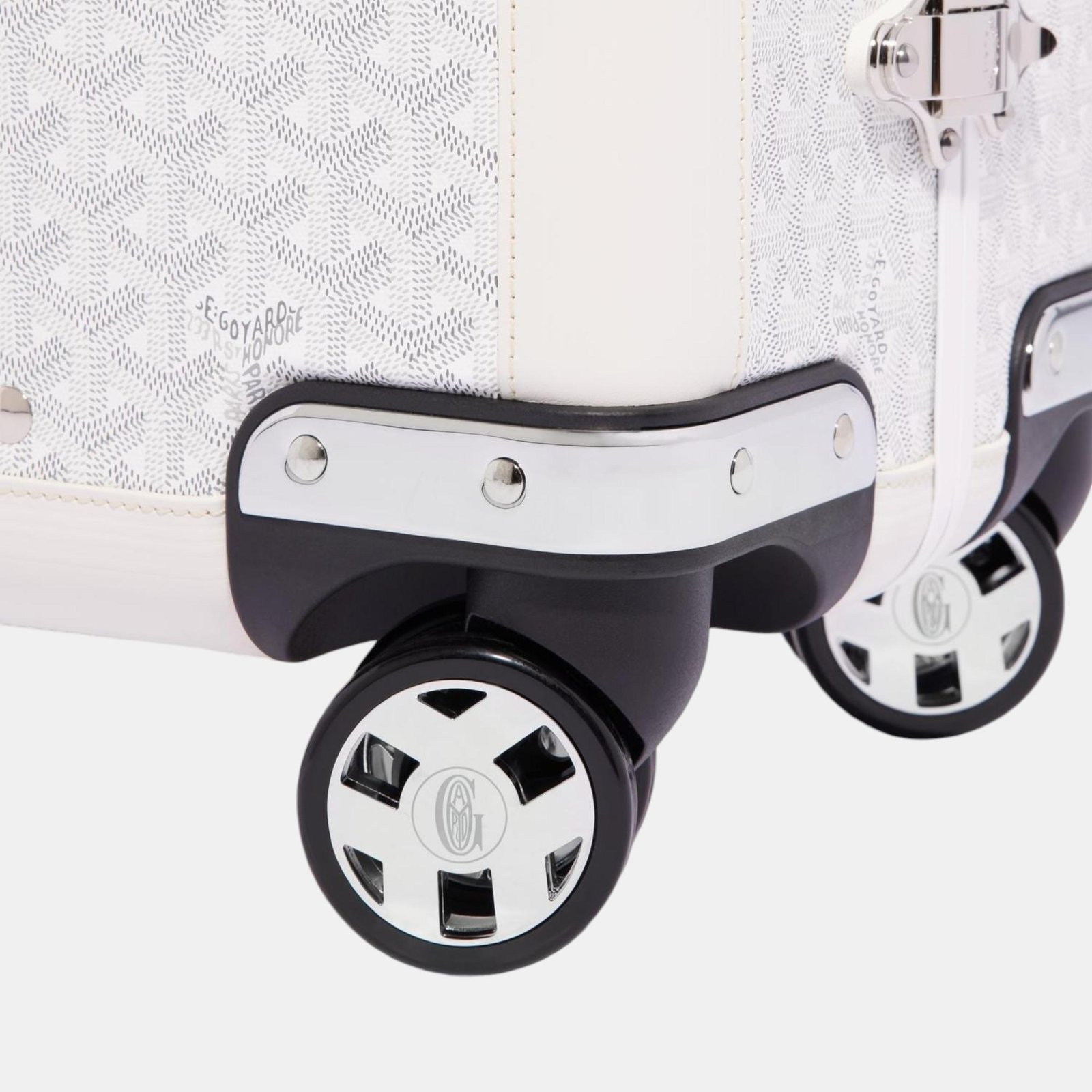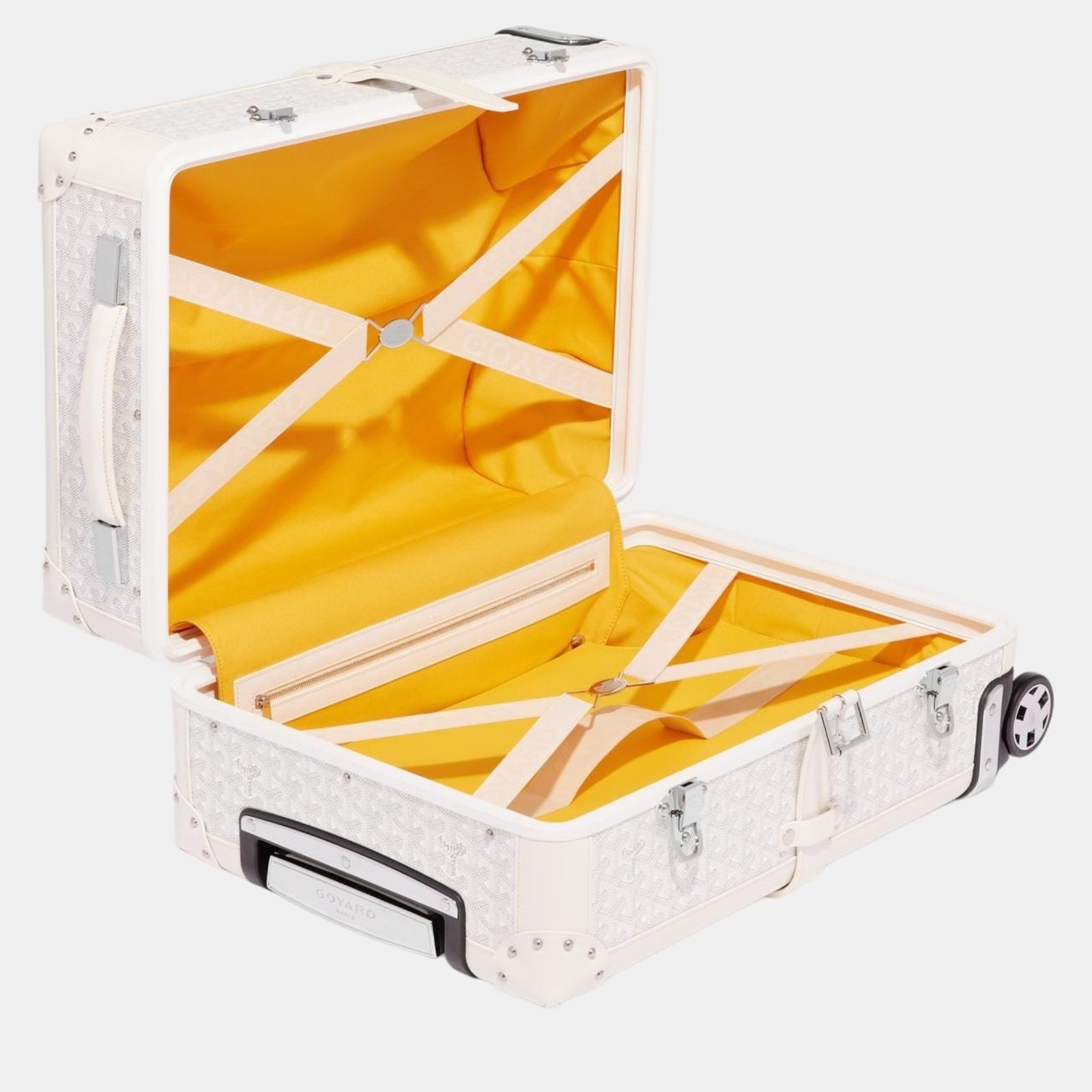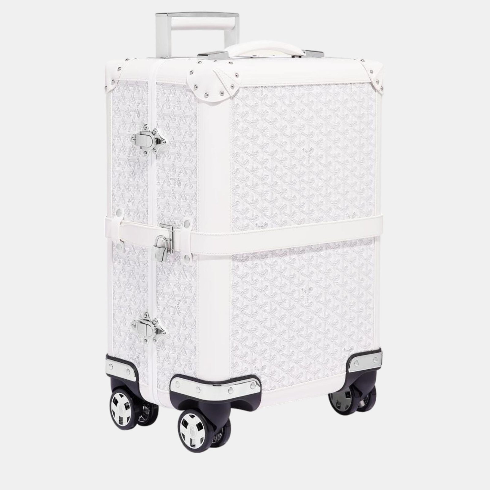 Goyard White Goyardine Canvas & Clamecy Cowhide Bourget PM Trolley Case