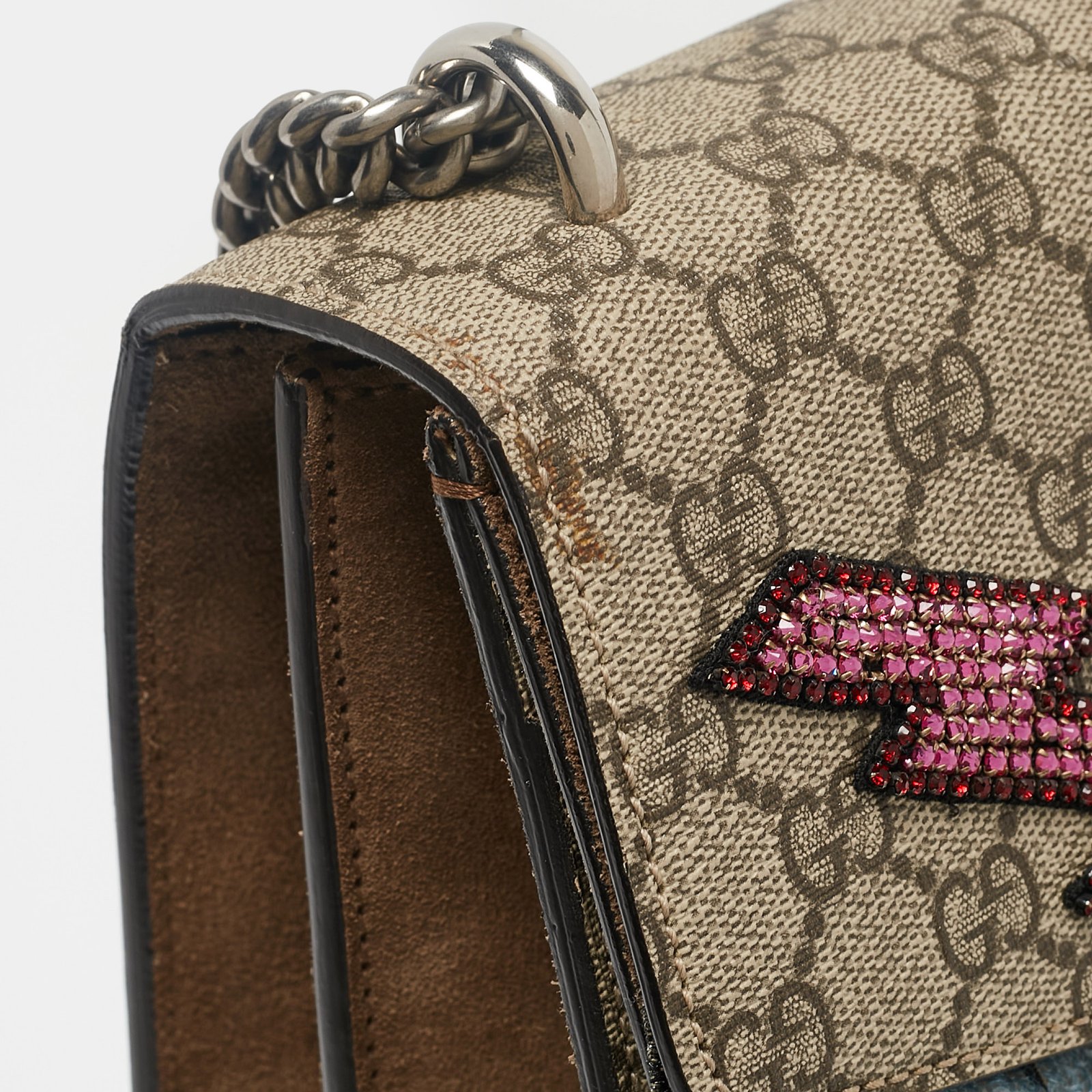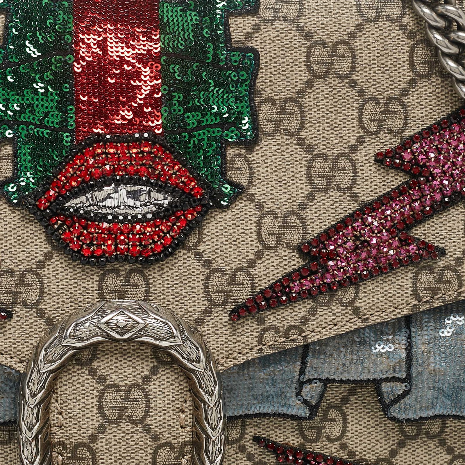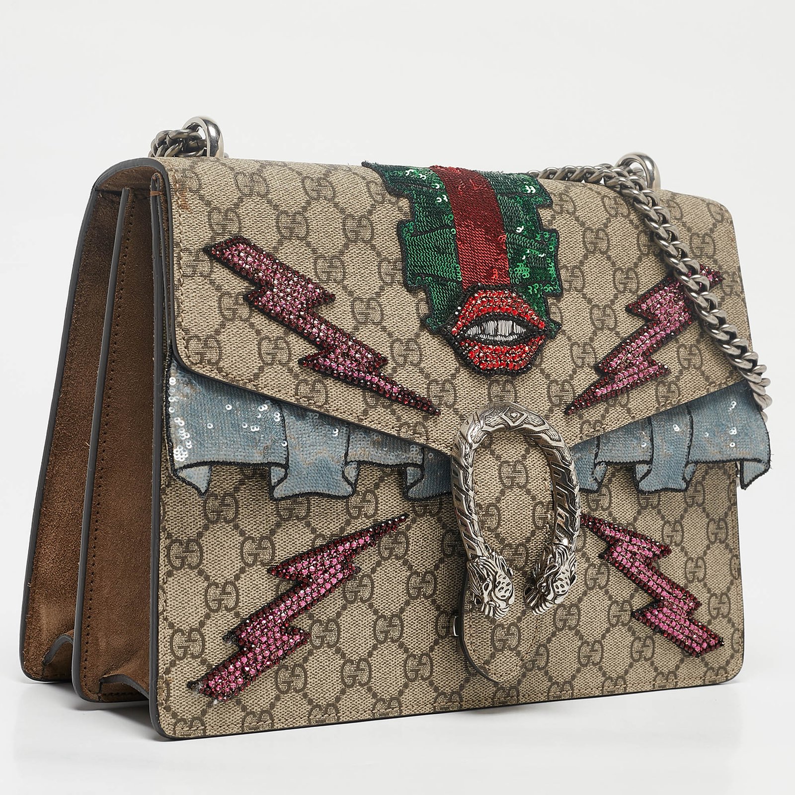 Gucci Beige GG Supreme Canvas and Suede Medium Embellished Dionysus Shoulder Bag