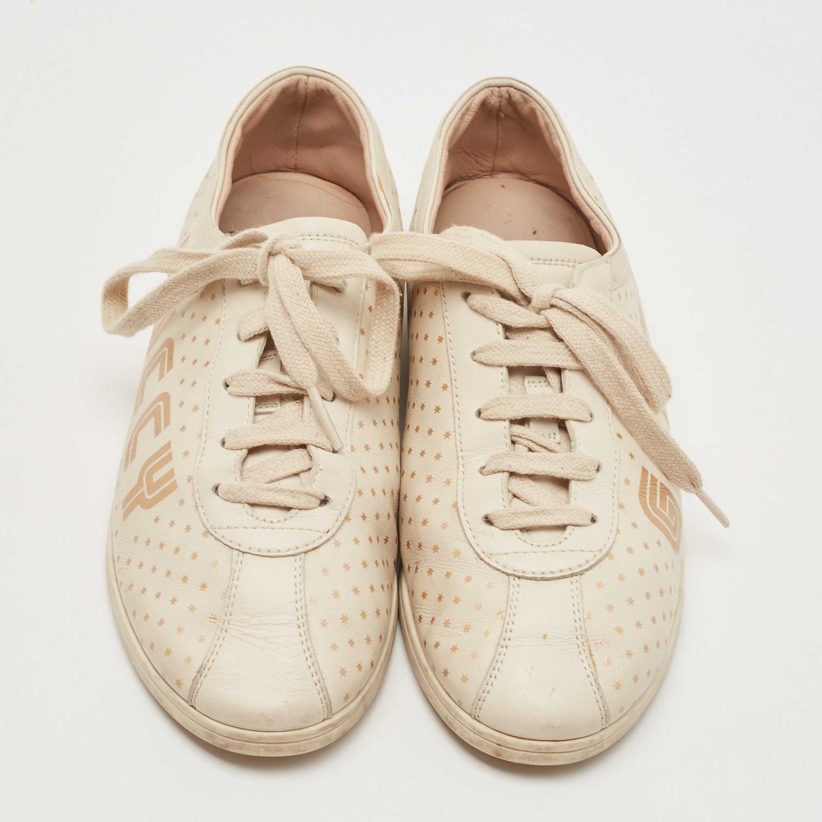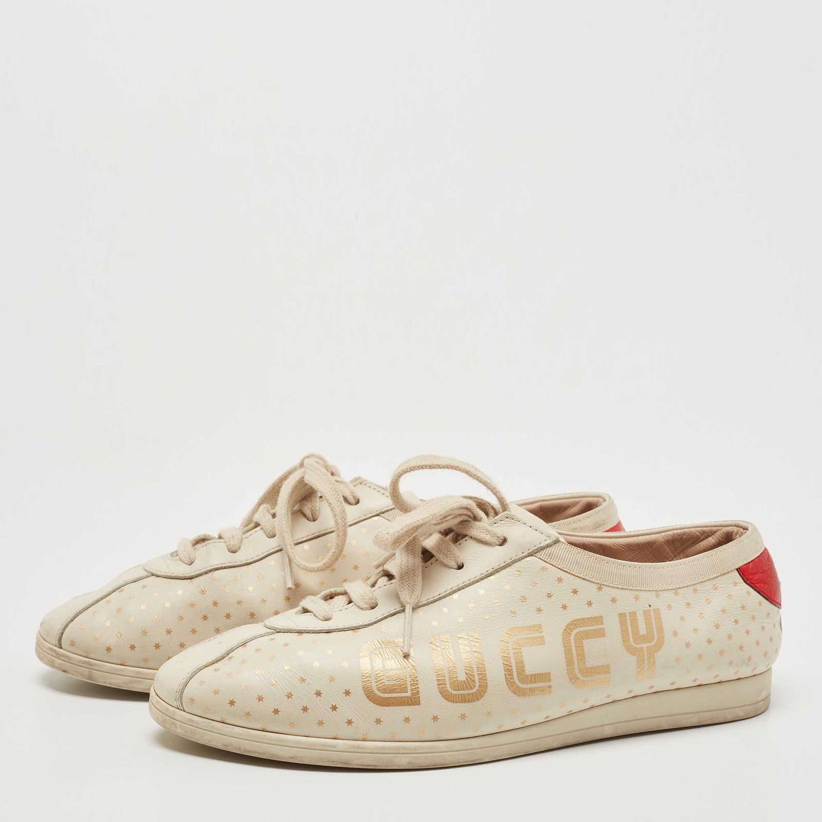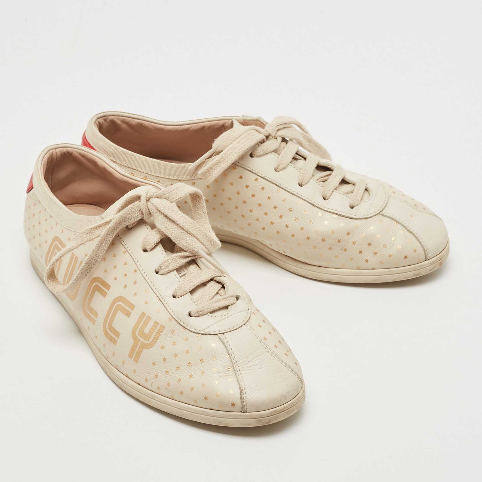 Gucci Beige Leather Falacer Guccy Sneakers Size 37