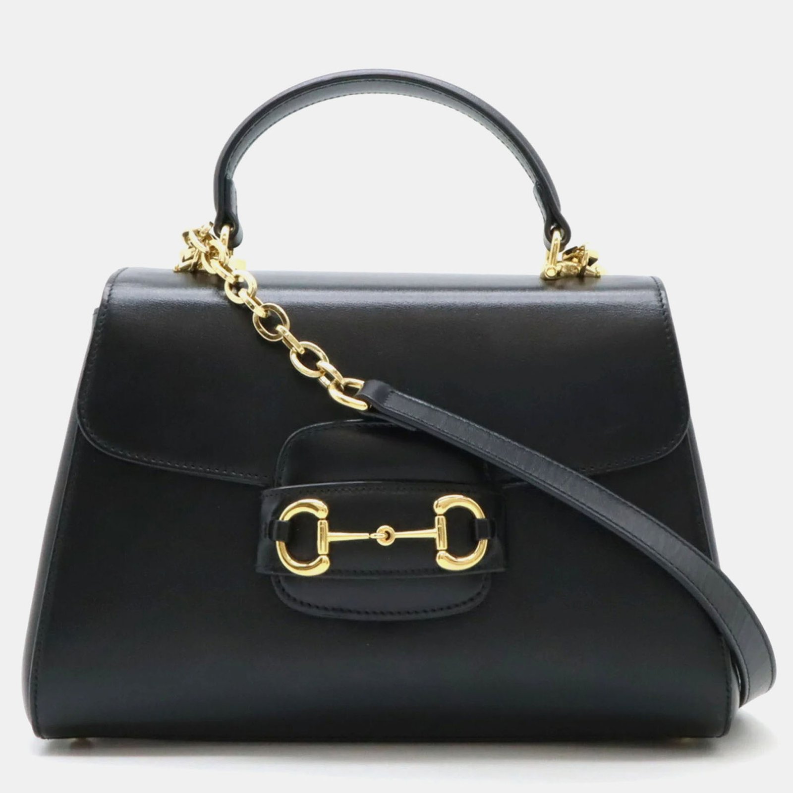 Gucci Black Leather Horsebit 1955 Medium Bag