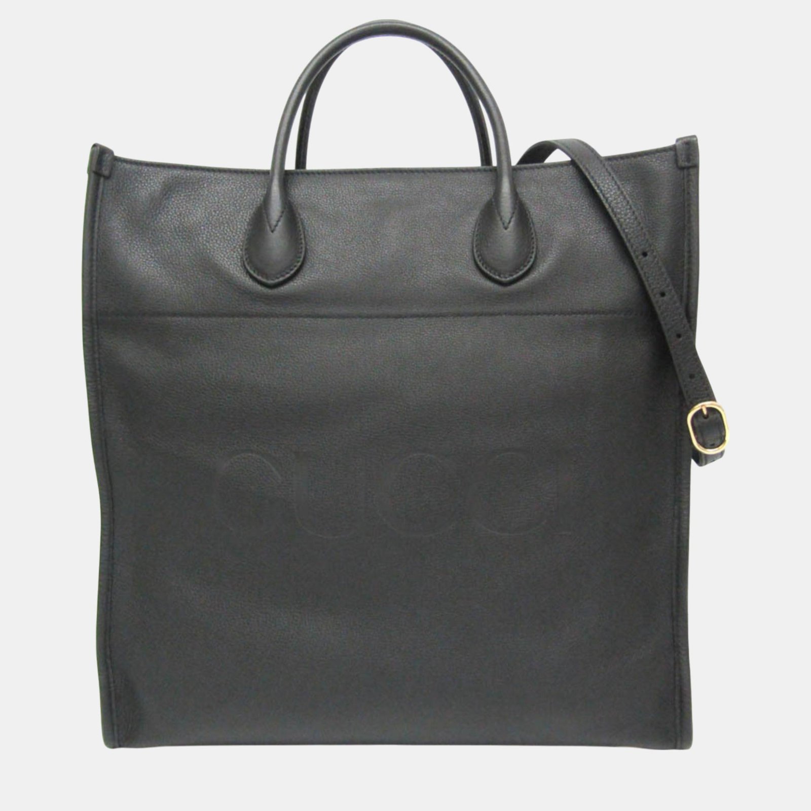 Gucci Black Leather Logo Tote Bag