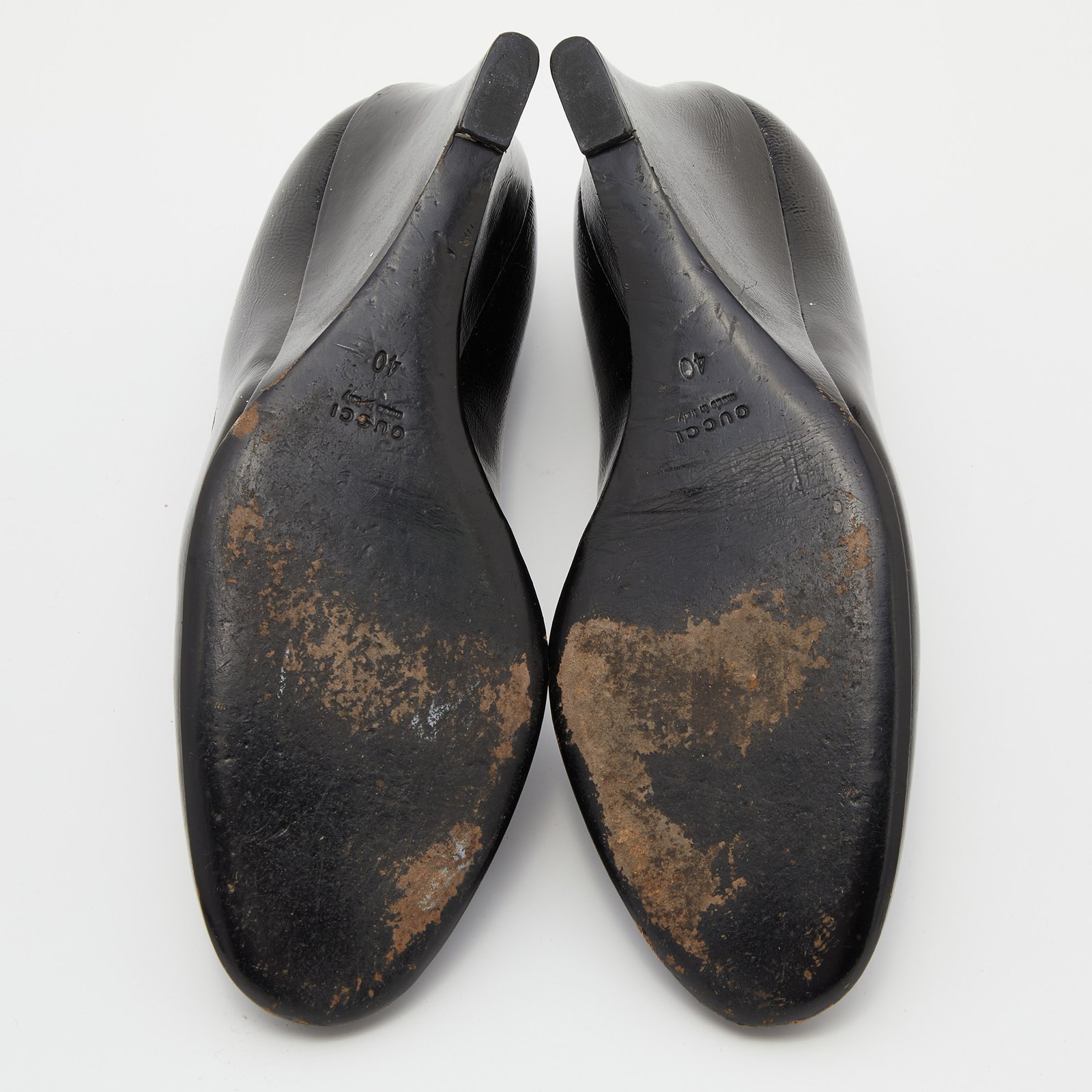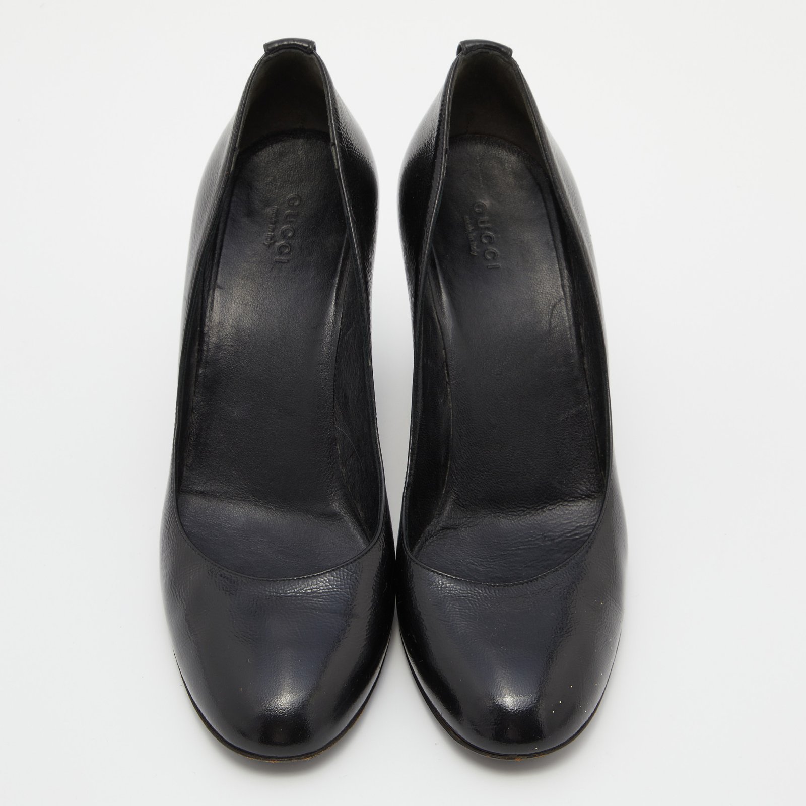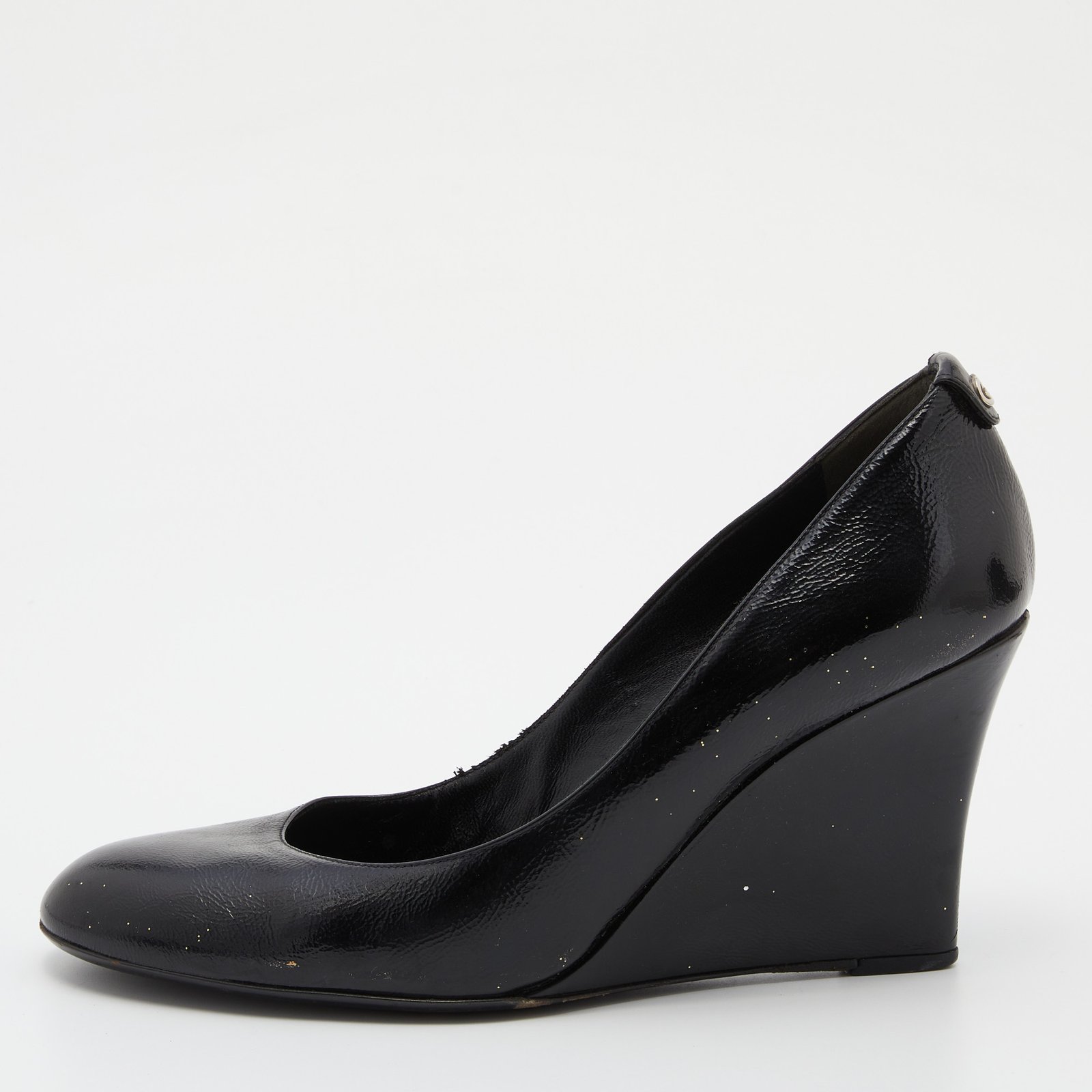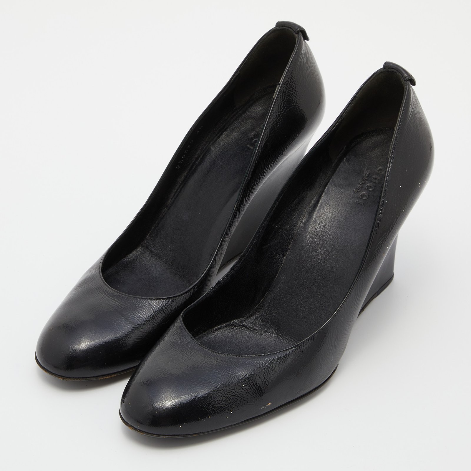 Gucci Black Patent Leather Wedge Round Toe Pumps Size 40
