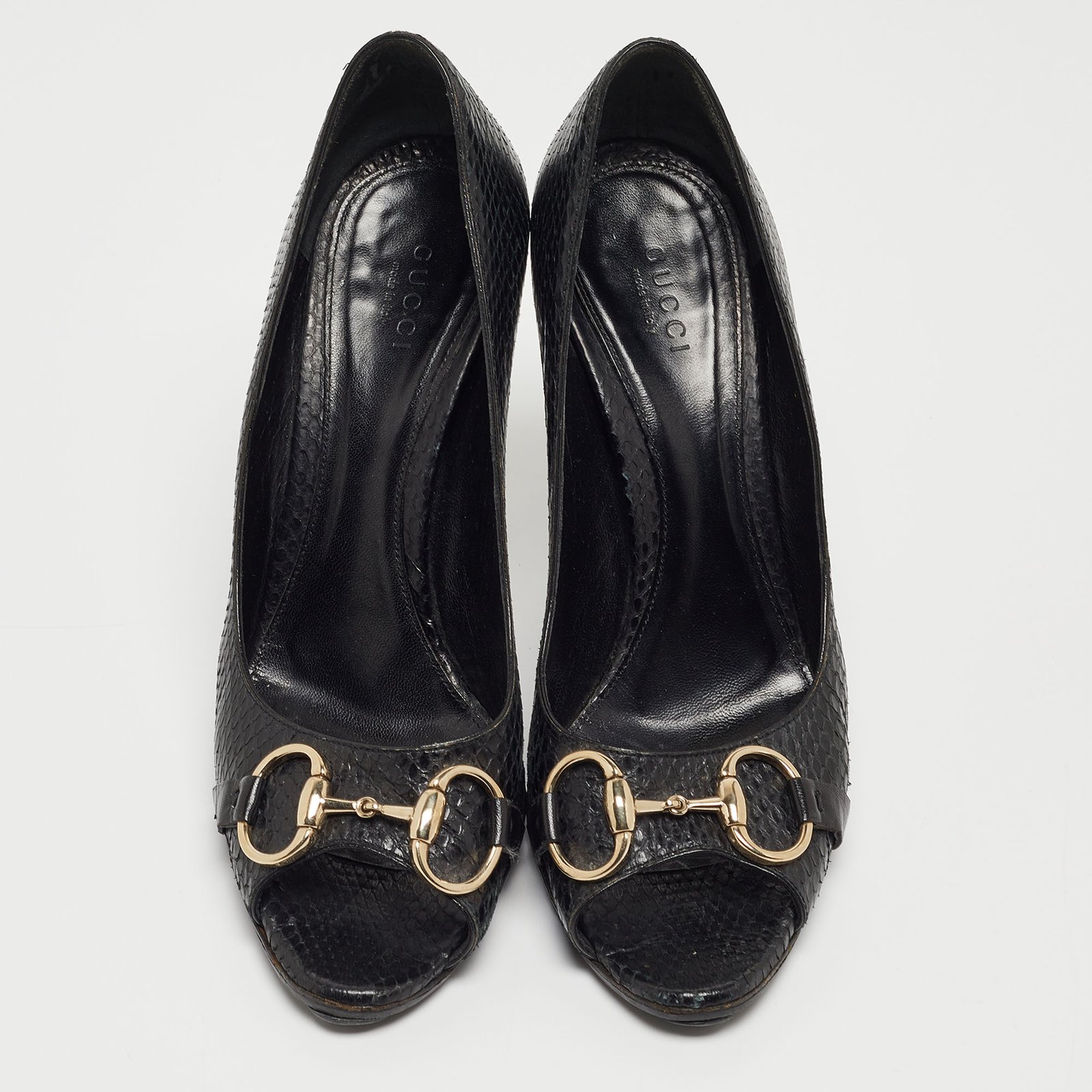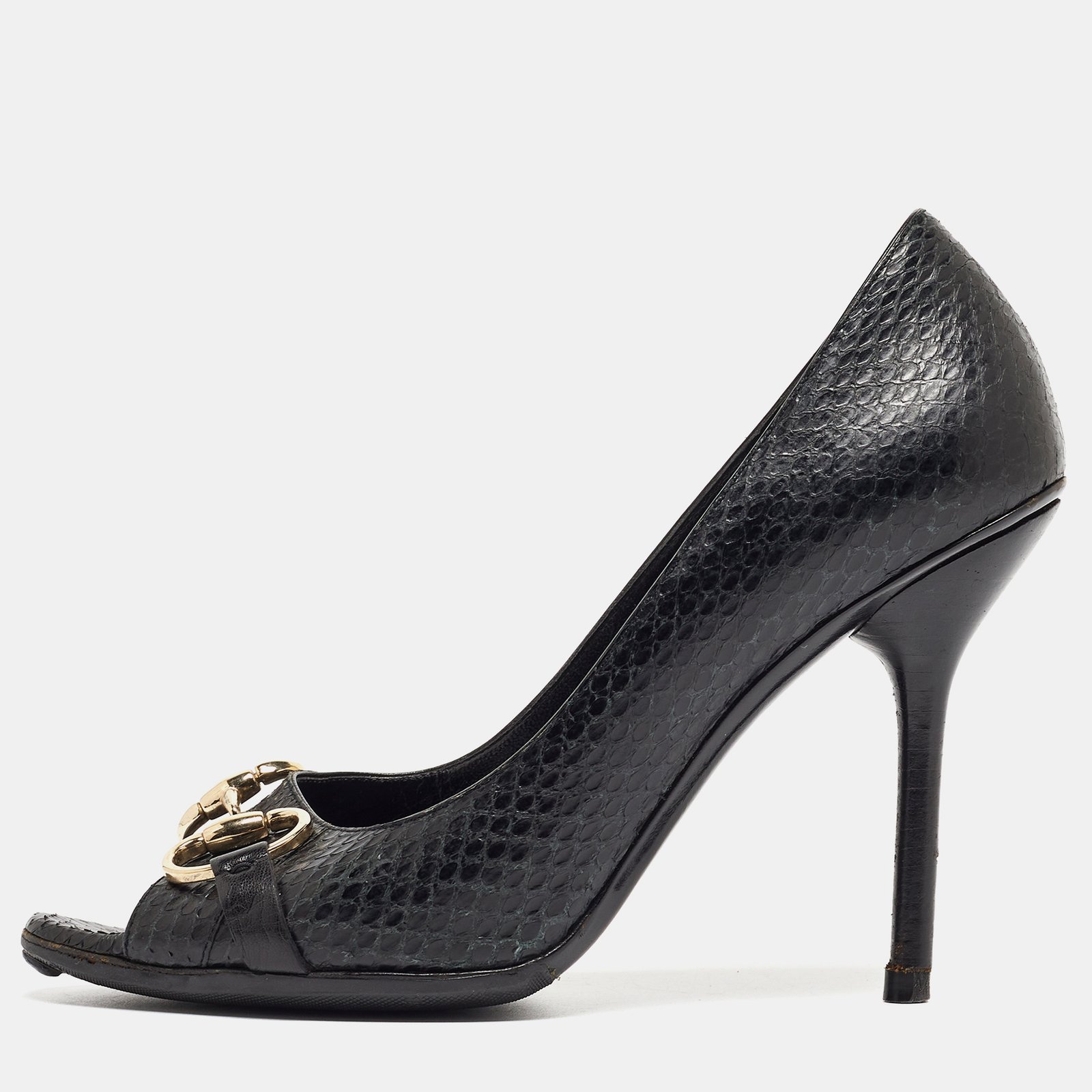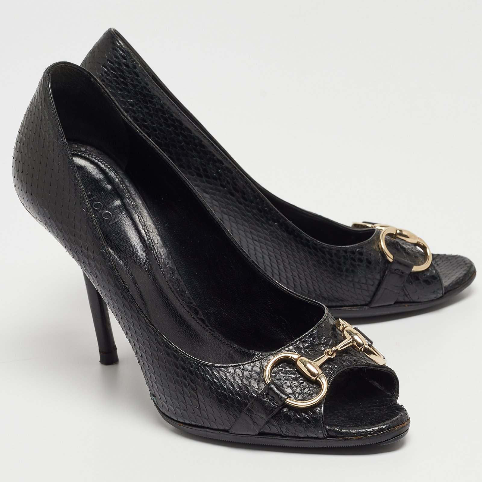 Gucci Black Python Horsebit Open Toe Pumps 38.5 - Image 1