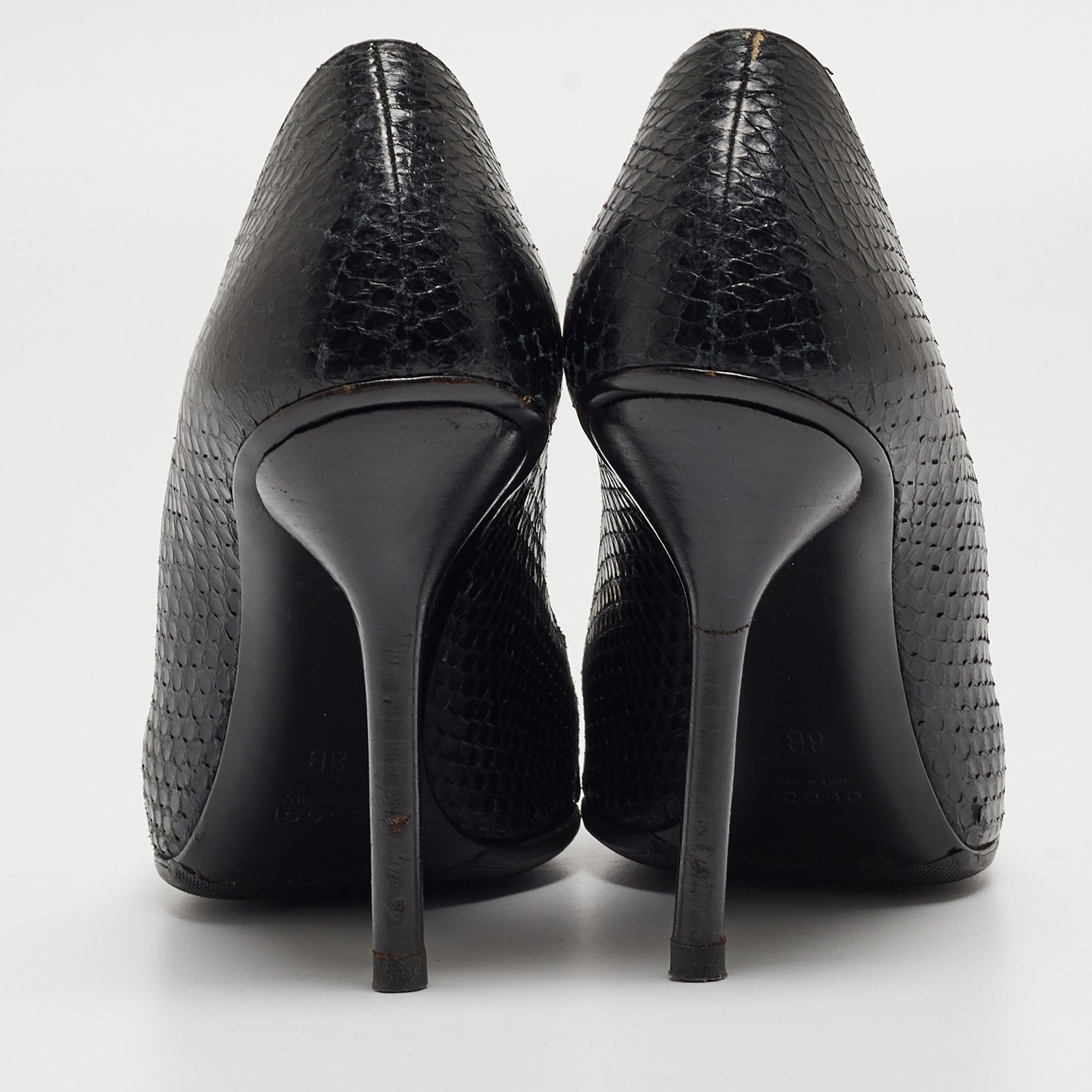 Gucci Black Python Horsebit Open Toe Pumps 38.5 - Image 3