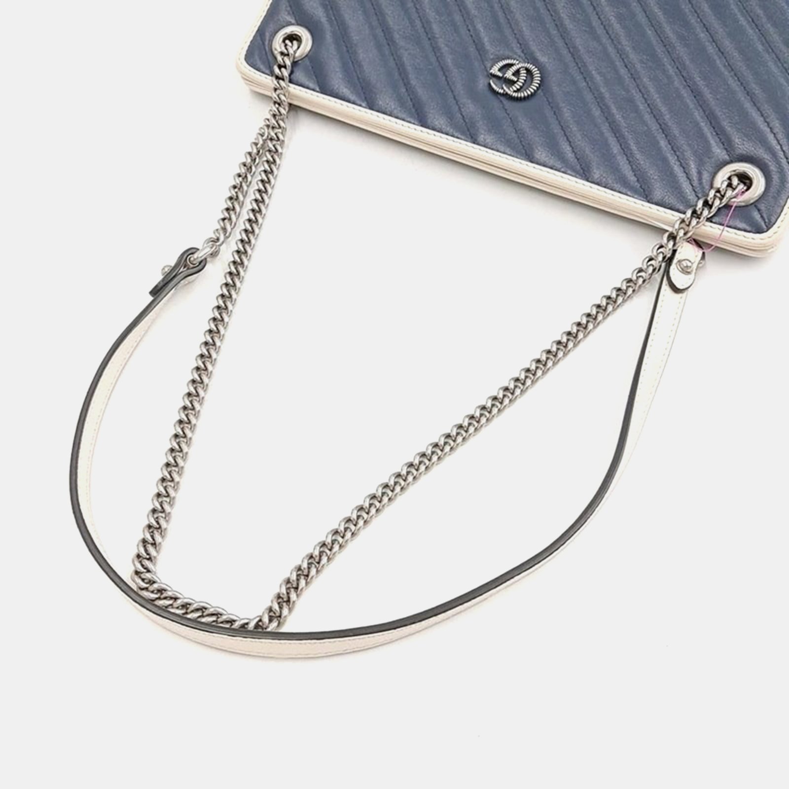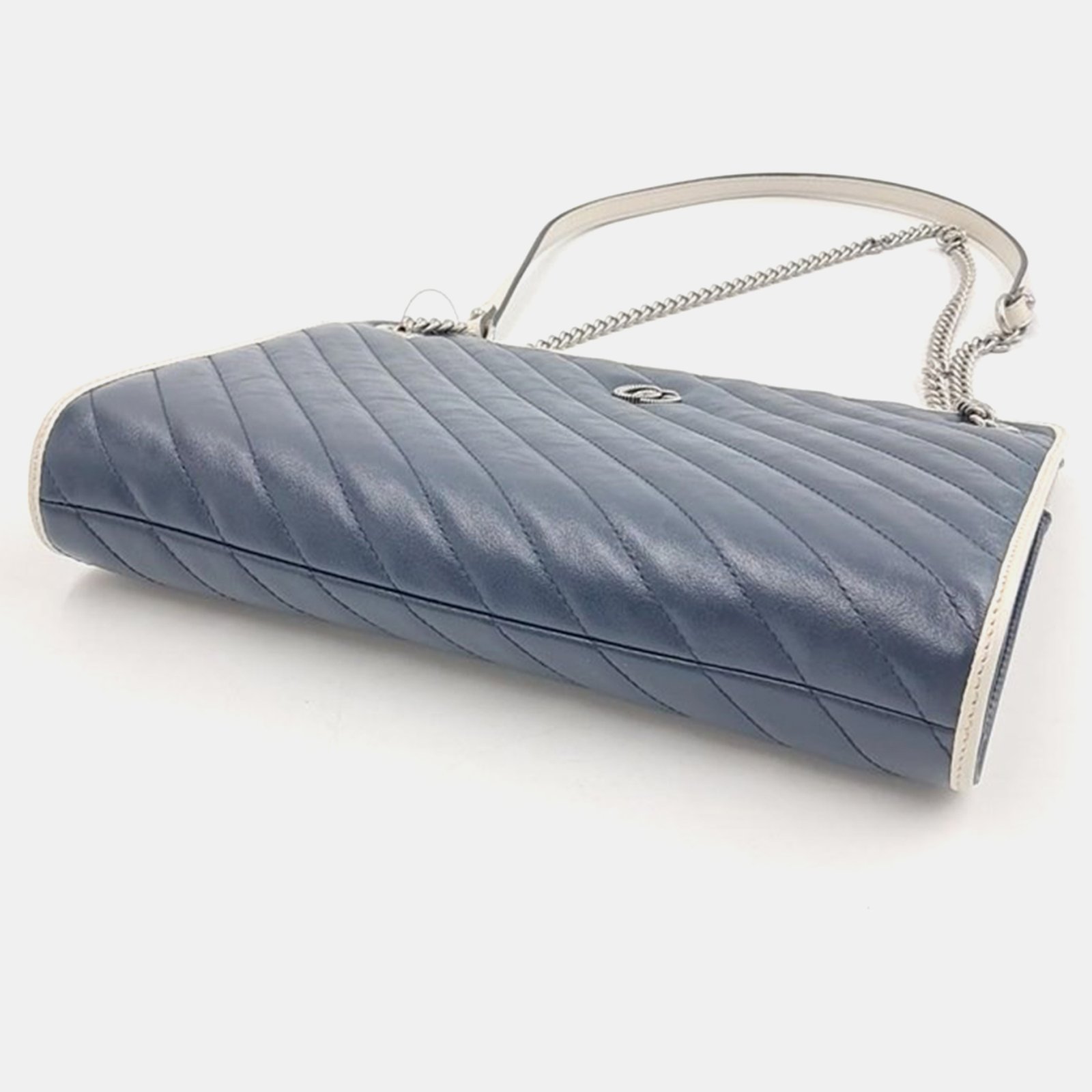 Gucci Blue Diagonal Quilted Leather Medium GG Marmont Accordion Shoulder Bag