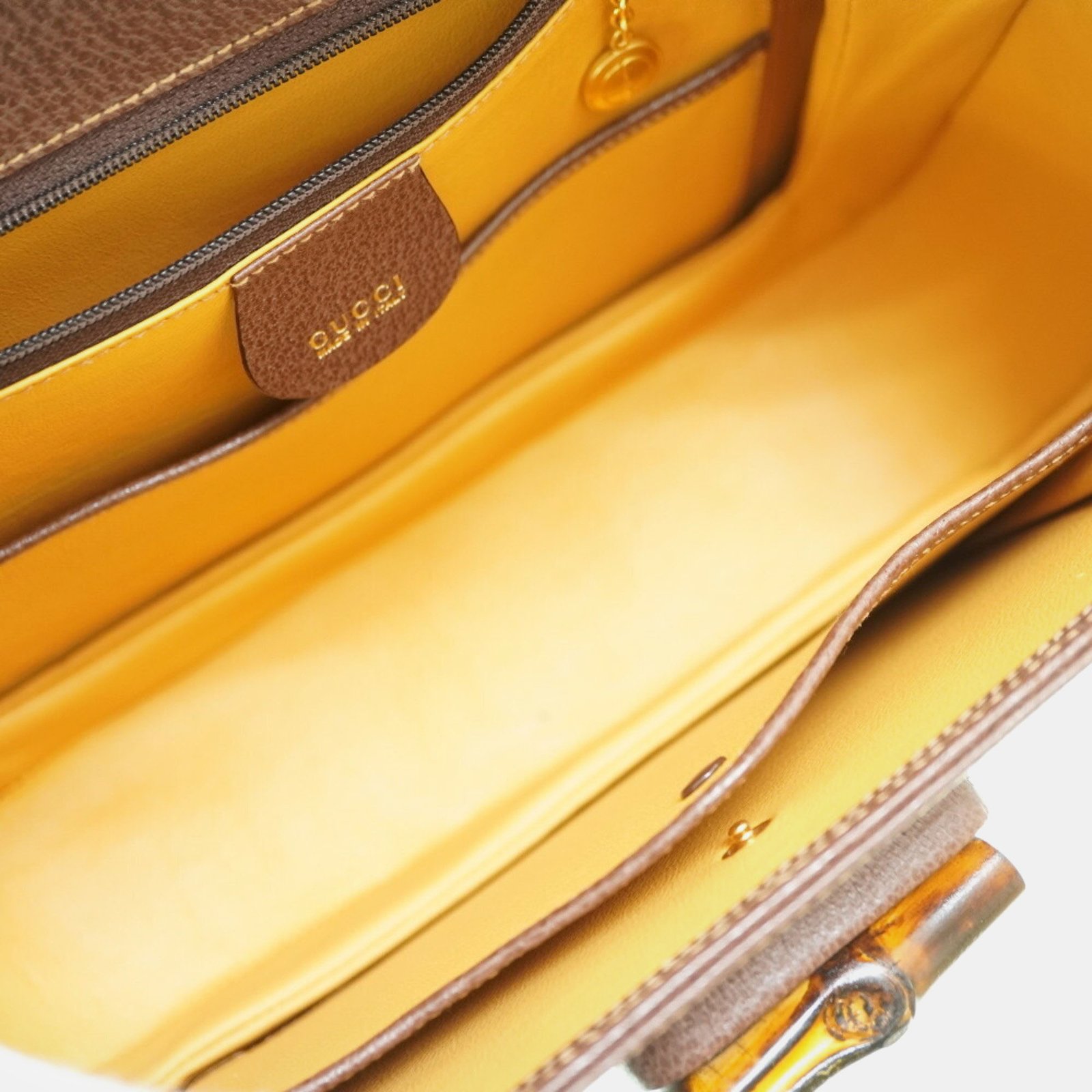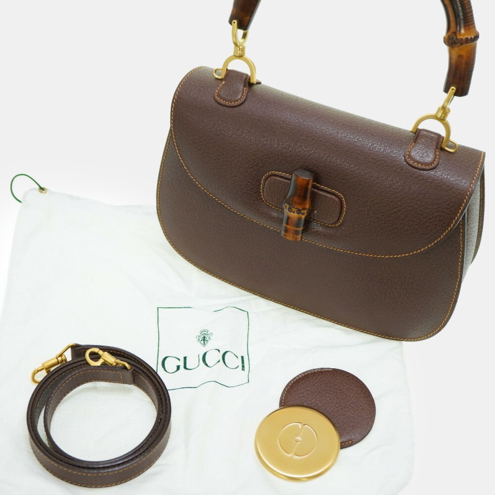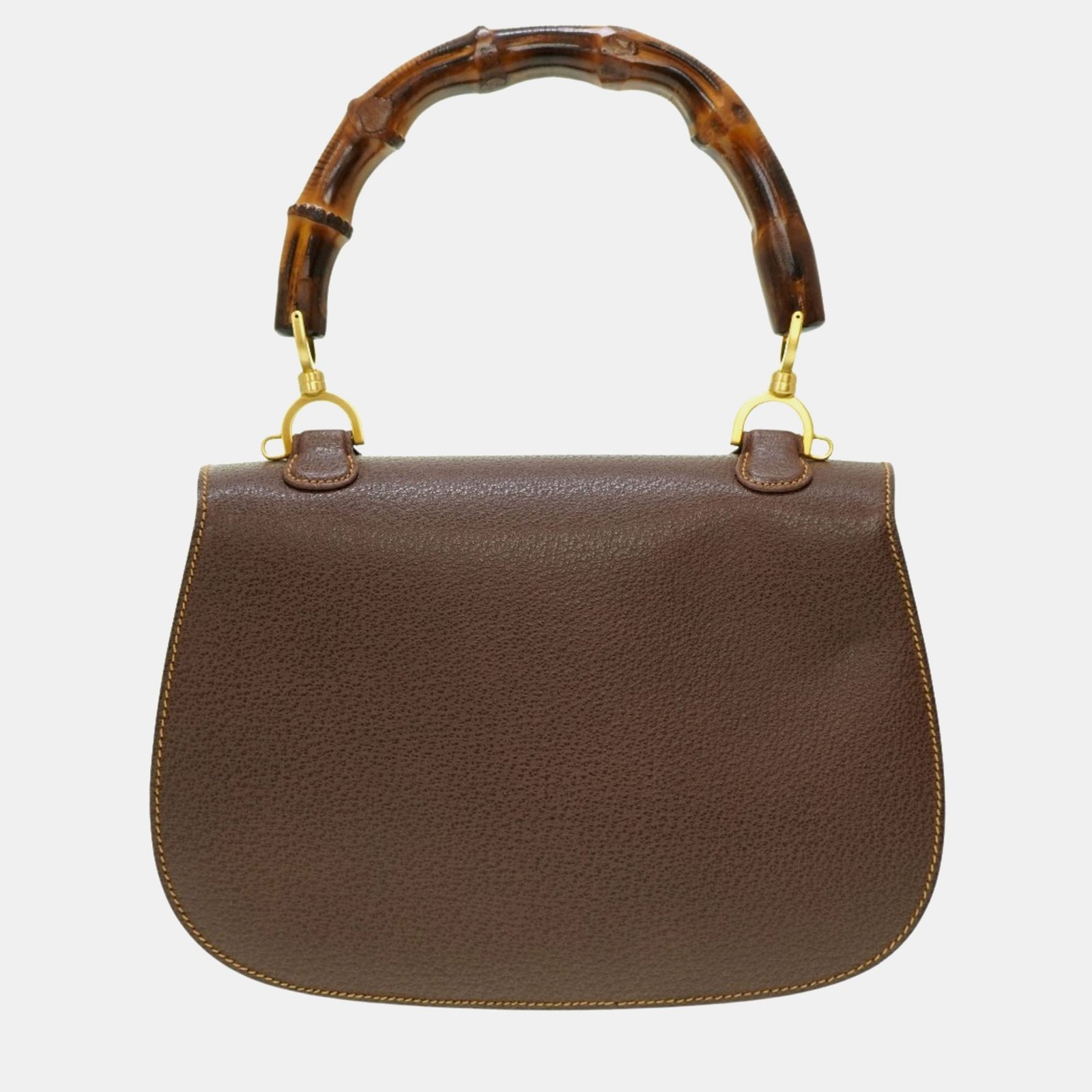 Gucci Brown Leather Bamboo 1947 Top Handle Bag