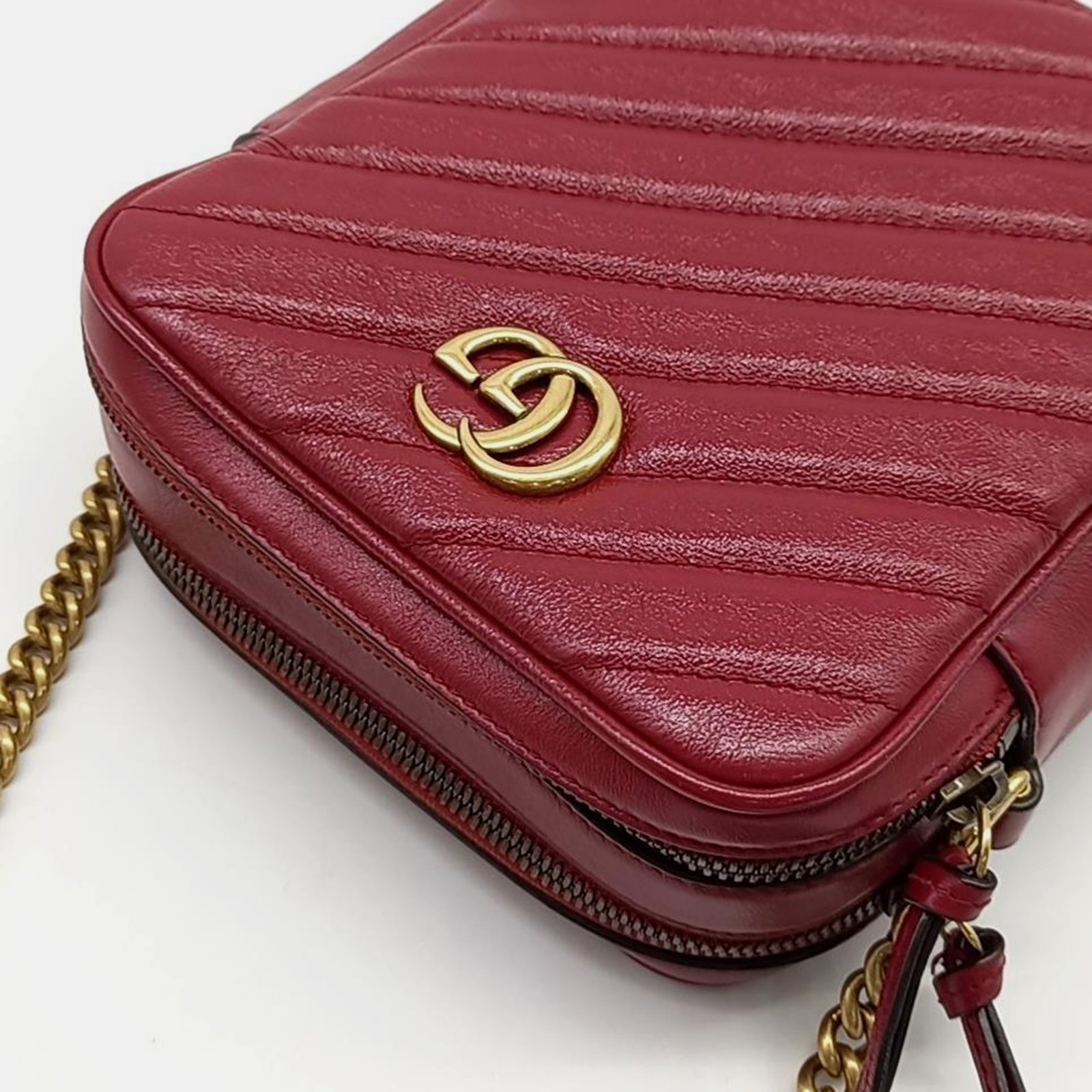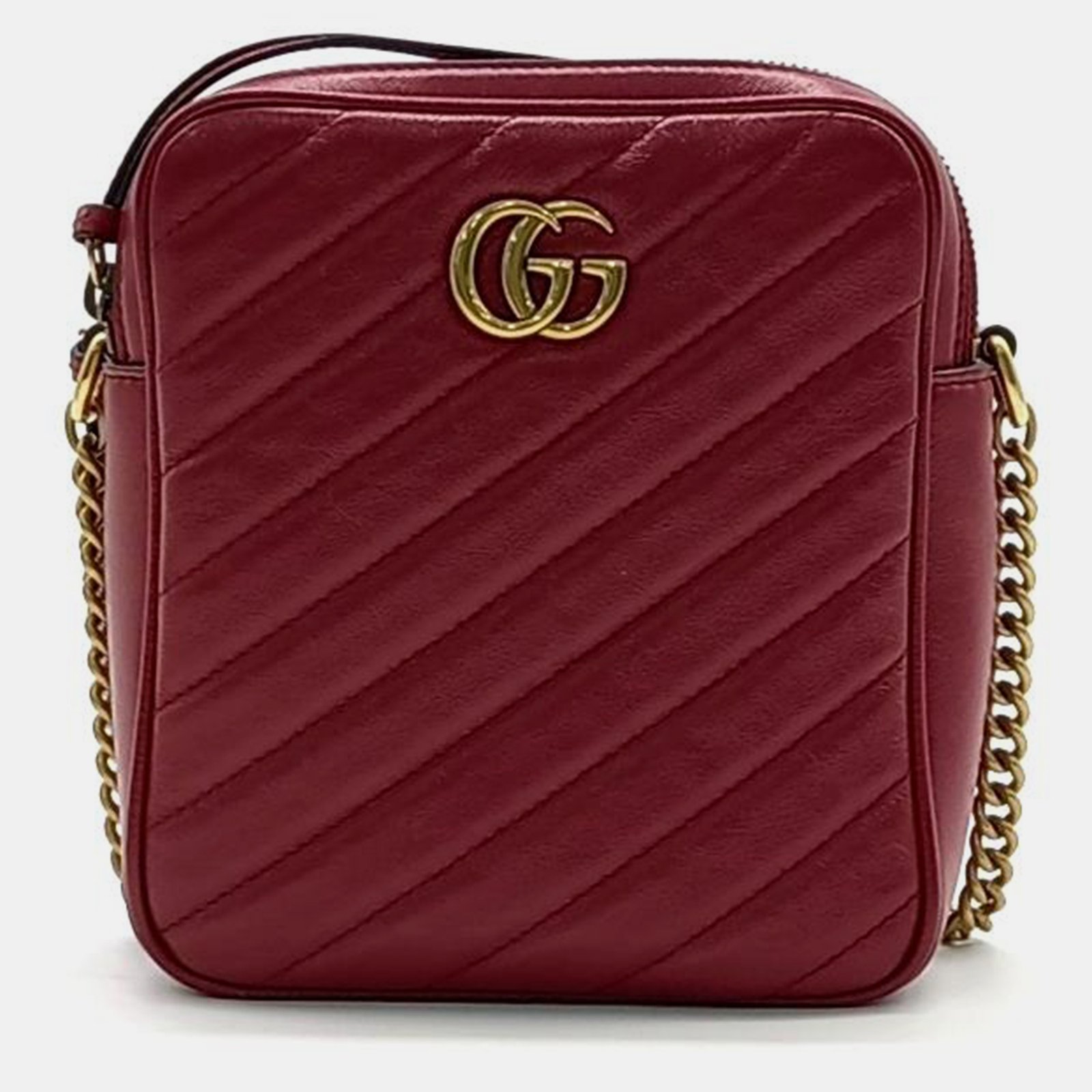 Gucci Burgundy Leather Marmont Chain Crossbody Bag