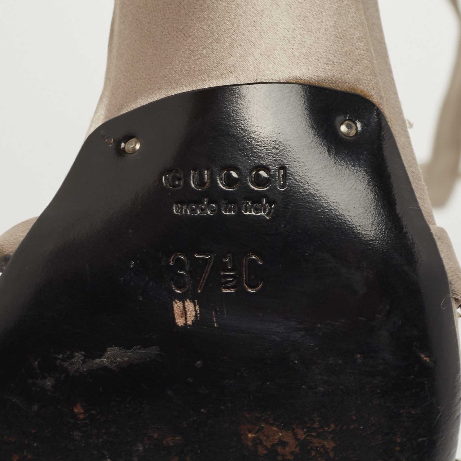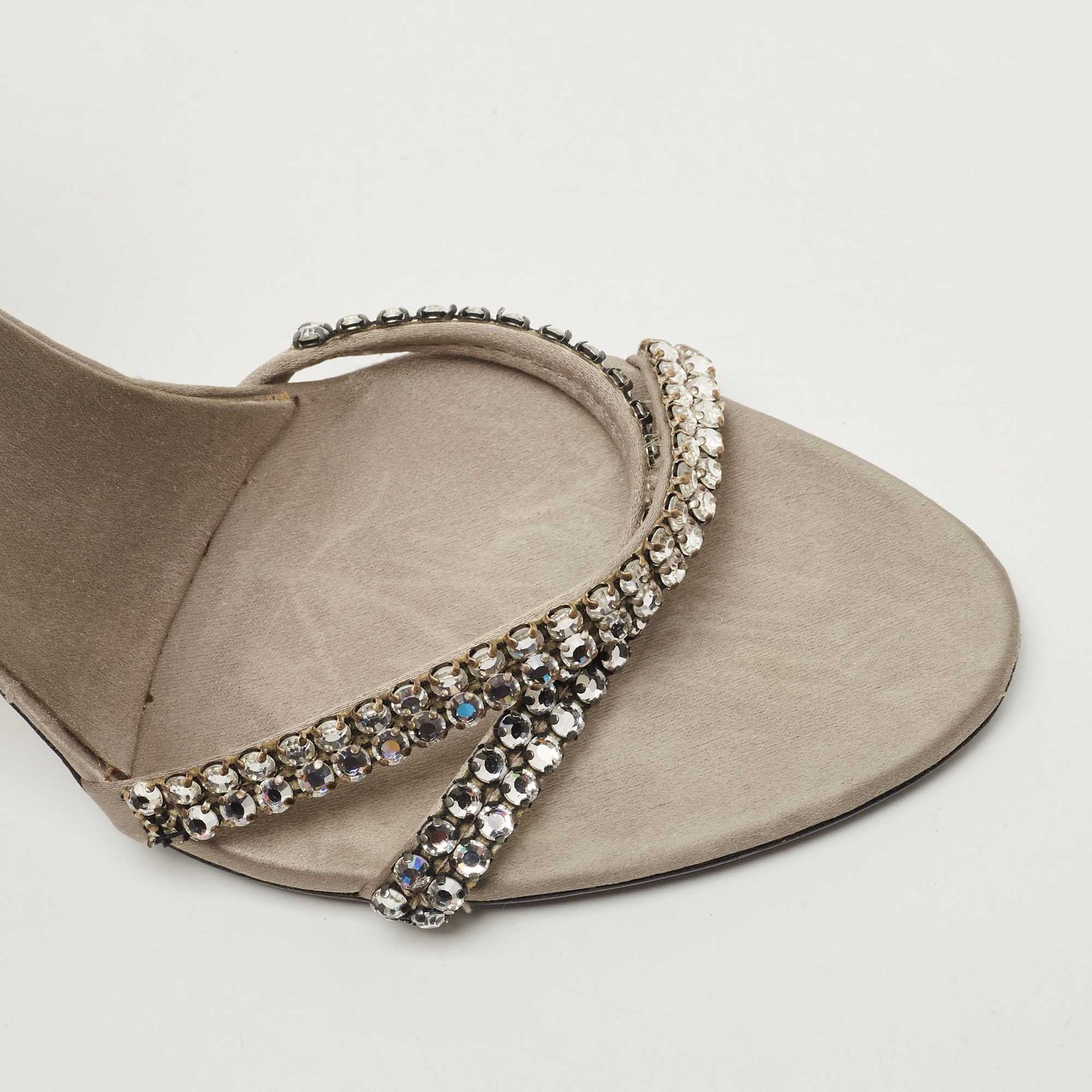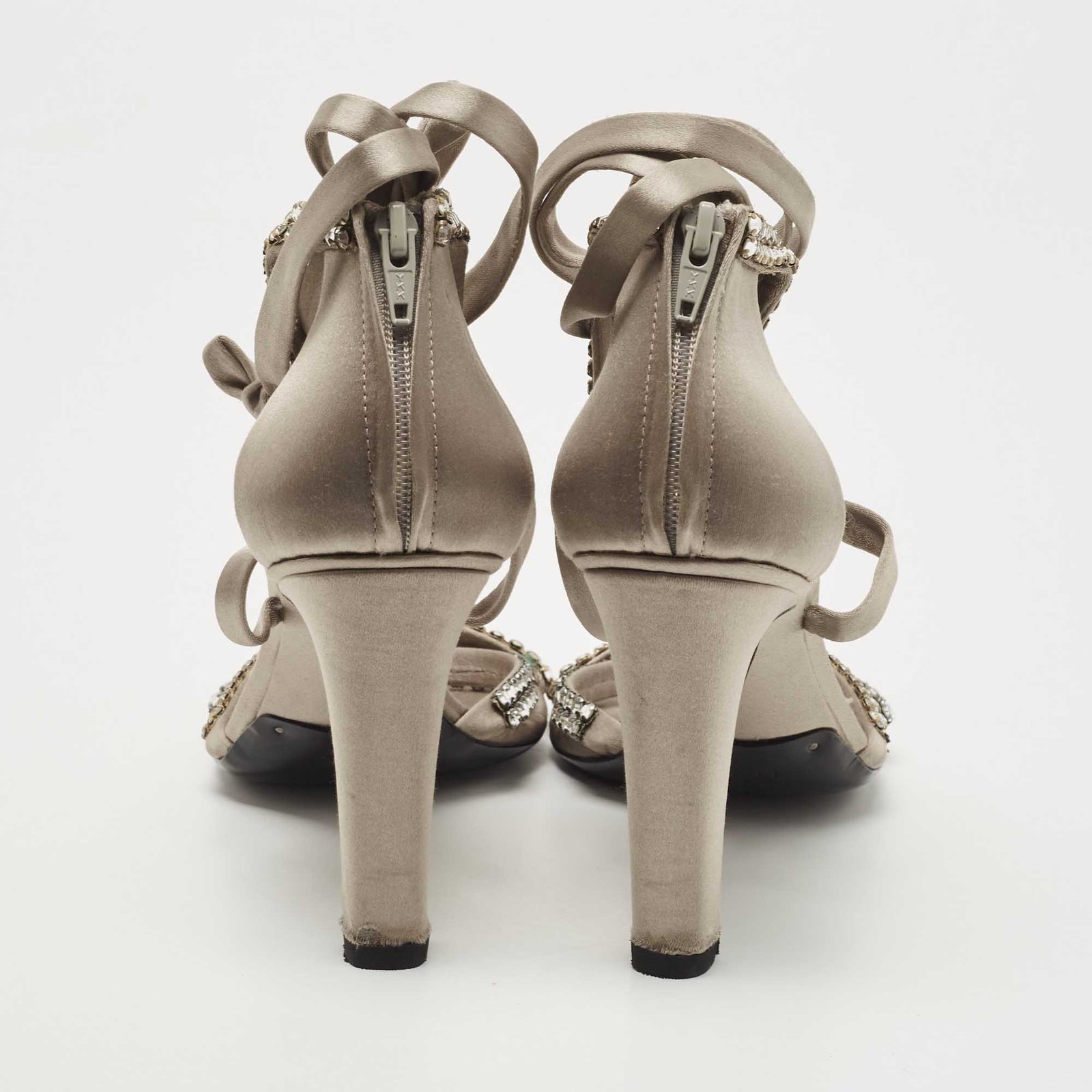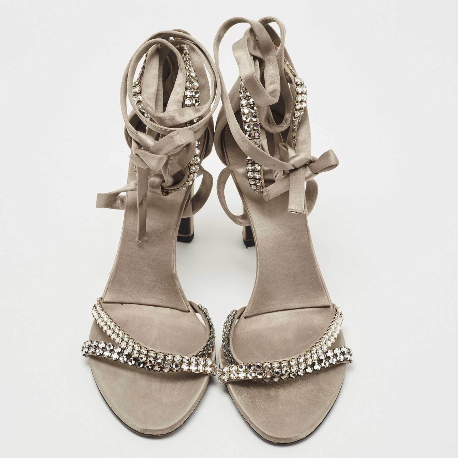 Gucci Grey Satin Crystal Embellished Ankle Wrap Sandals Size 37.5