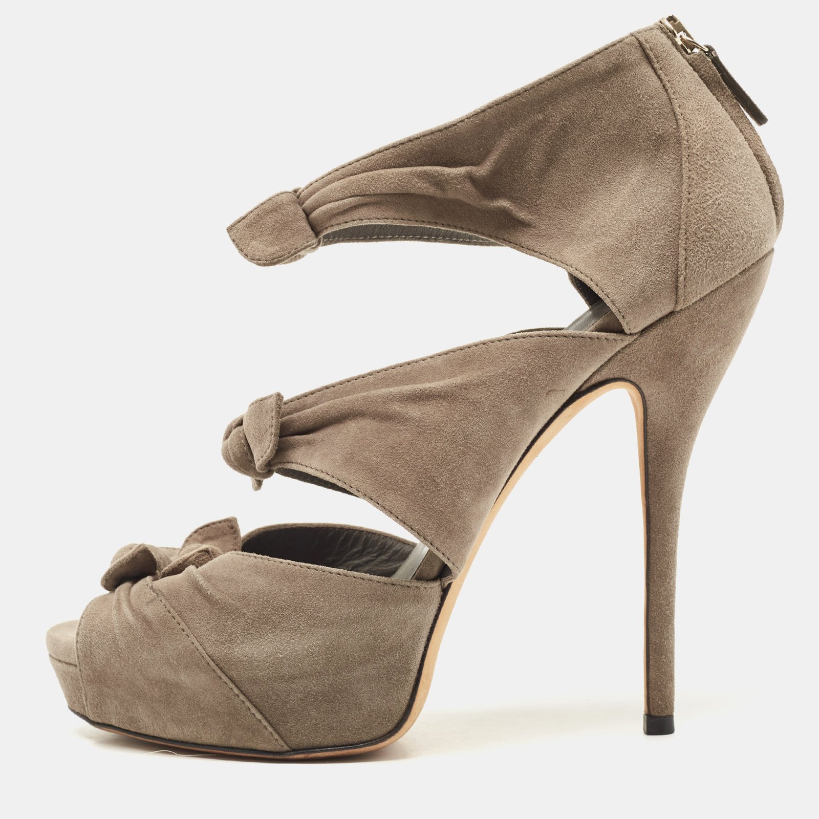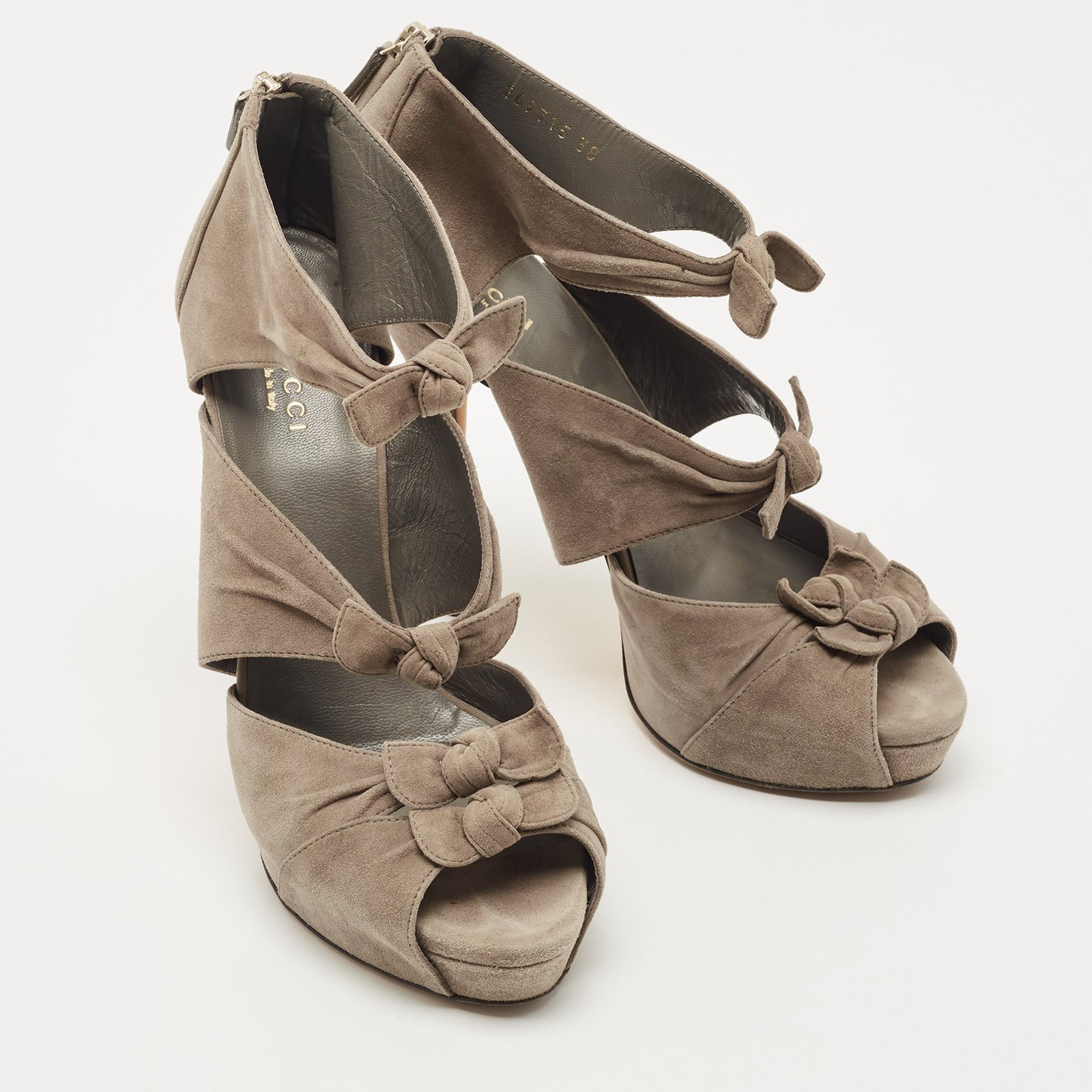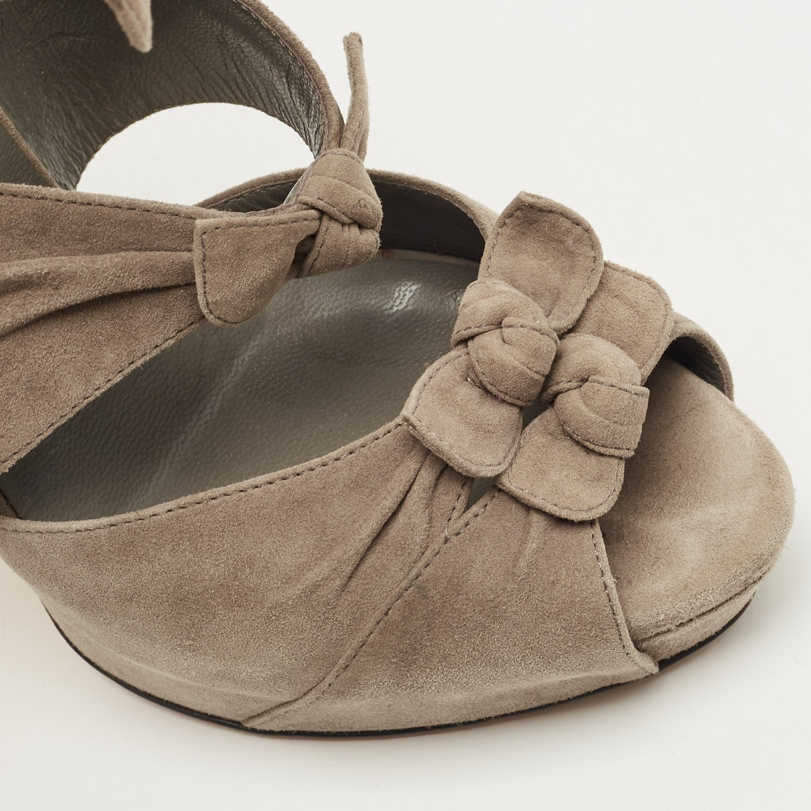 Gucci Grey Suede Bow Ankle Strap Sandals Size 38