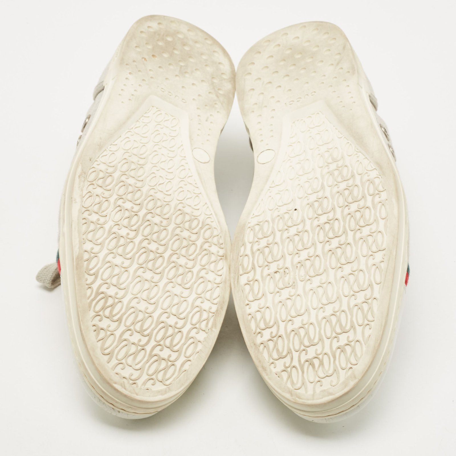 Gucci Grey/White Fabric and Leather Low Top Sneakers Size 44.5 - Image 9
