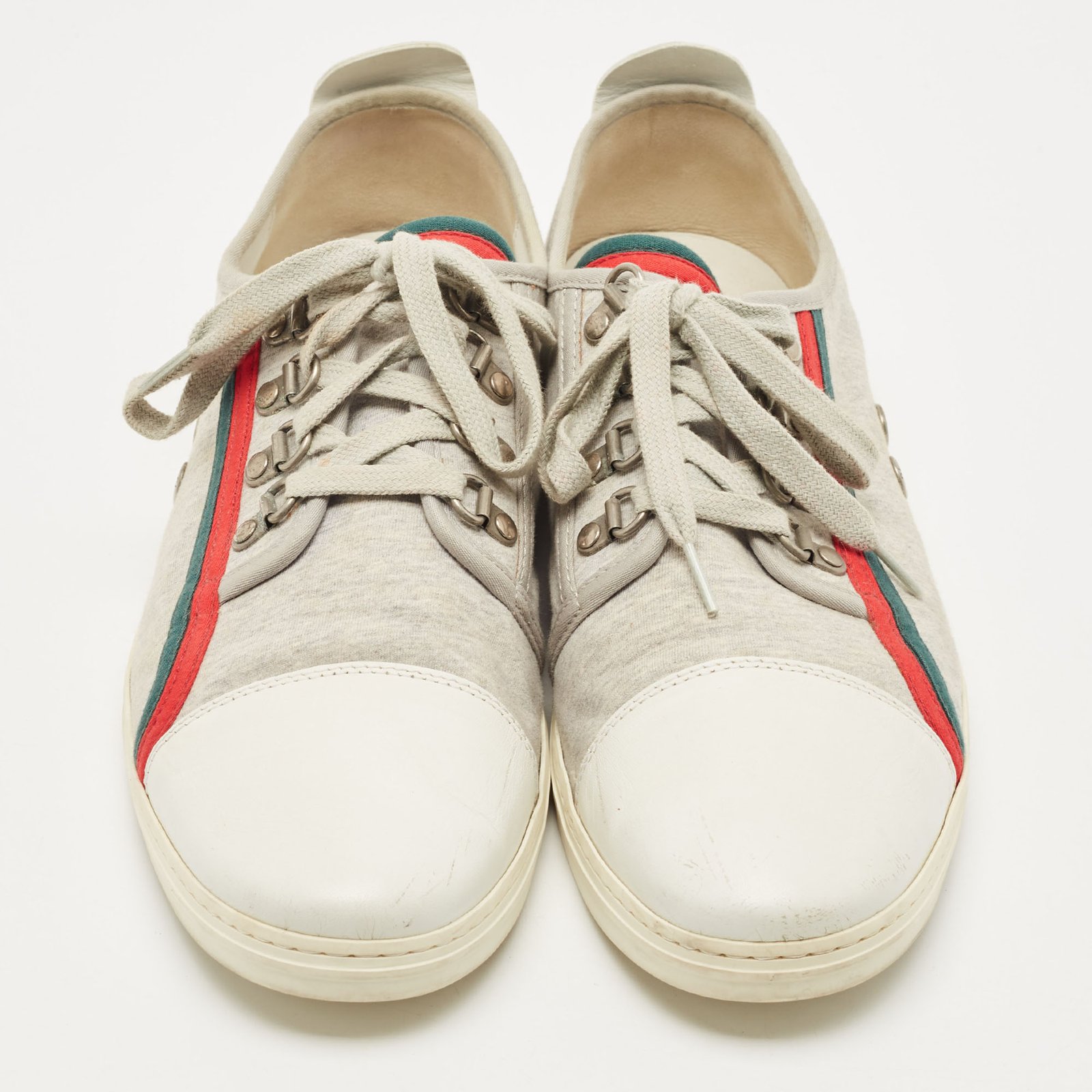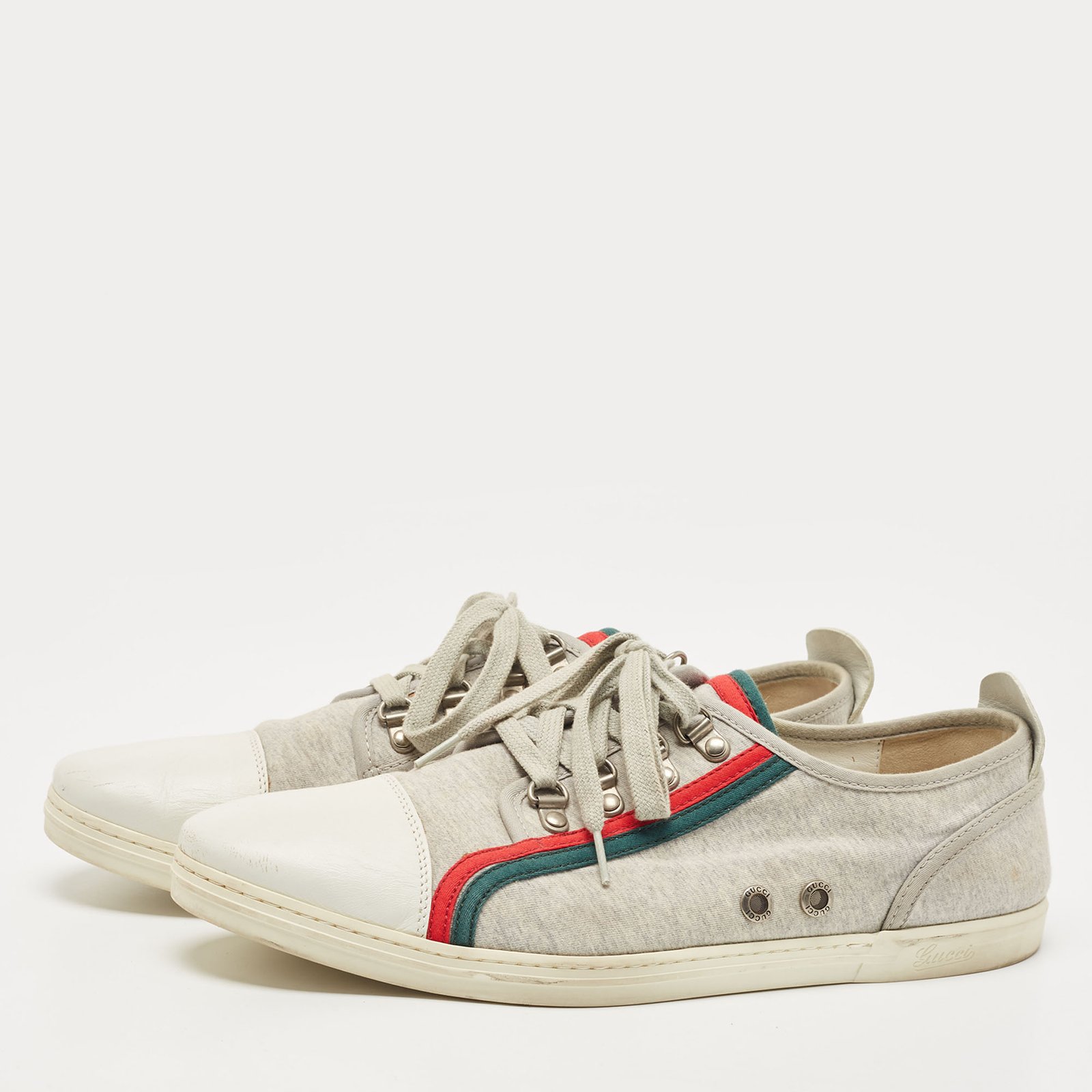 Gucci Grey/White Fabric and Leather Low Top Sneakers Size 44.5