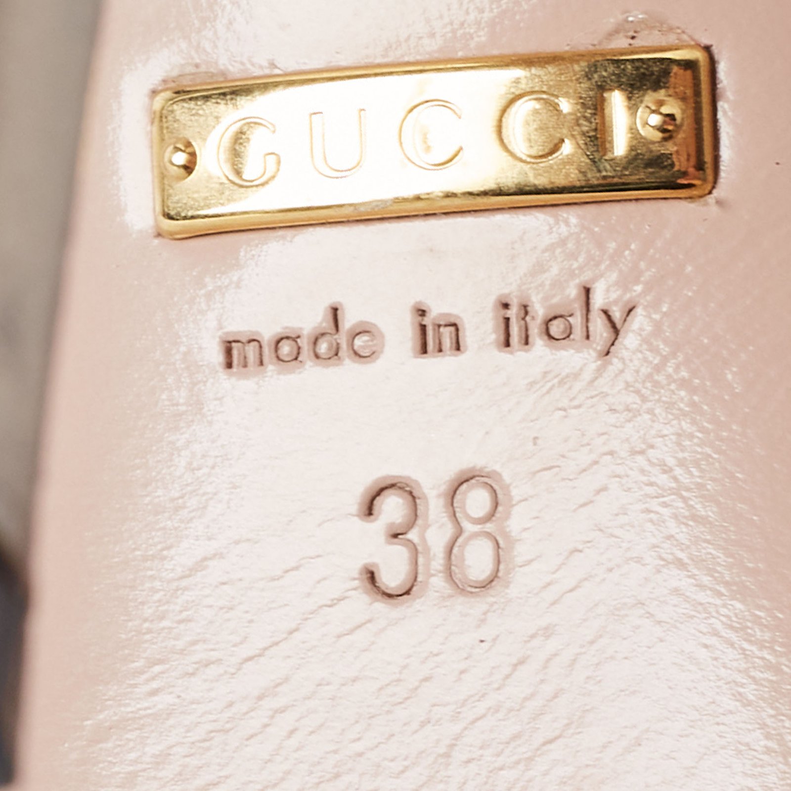 Gucci Metallic Grey Leather Ankle Strap Peep Toe Platform Pumps Size 38