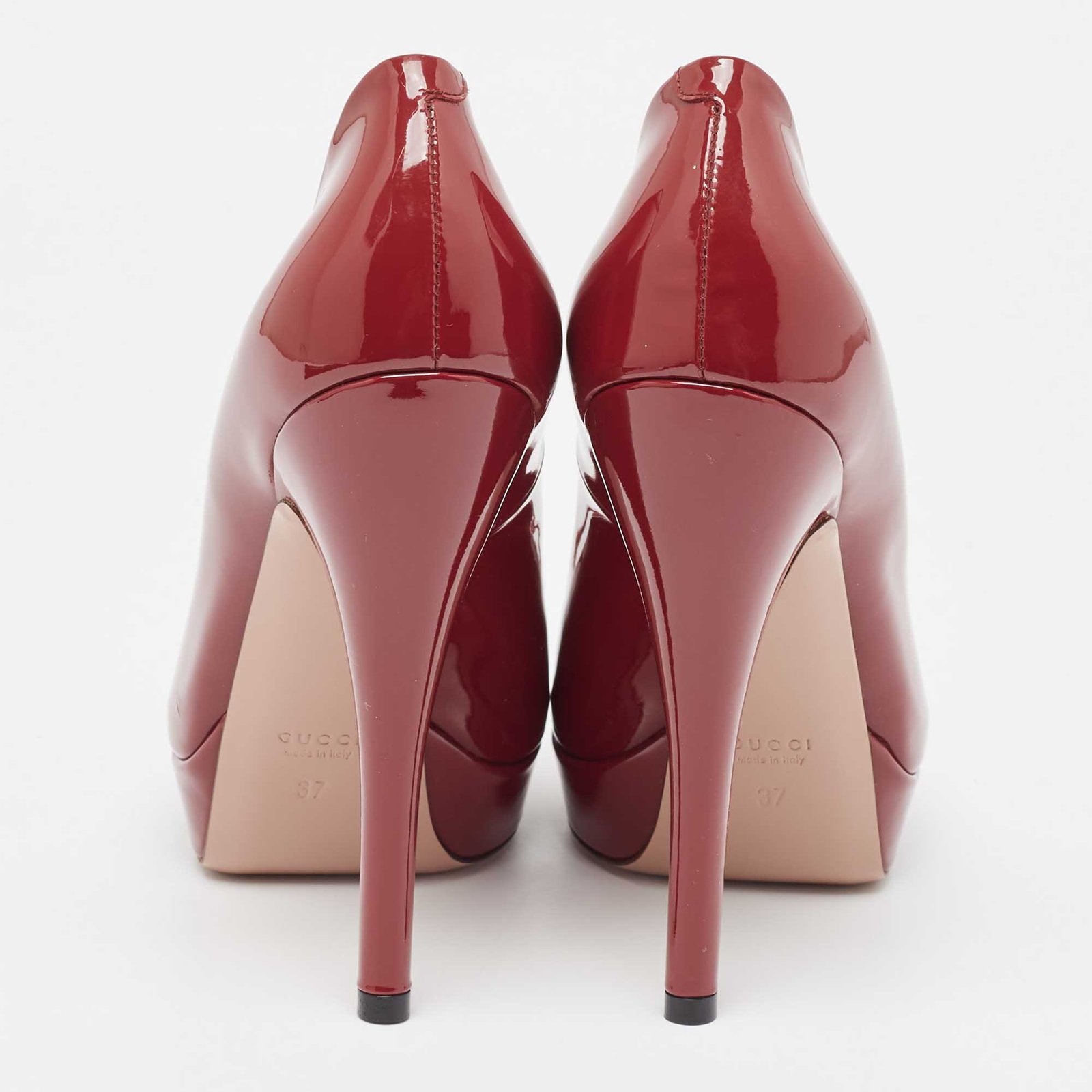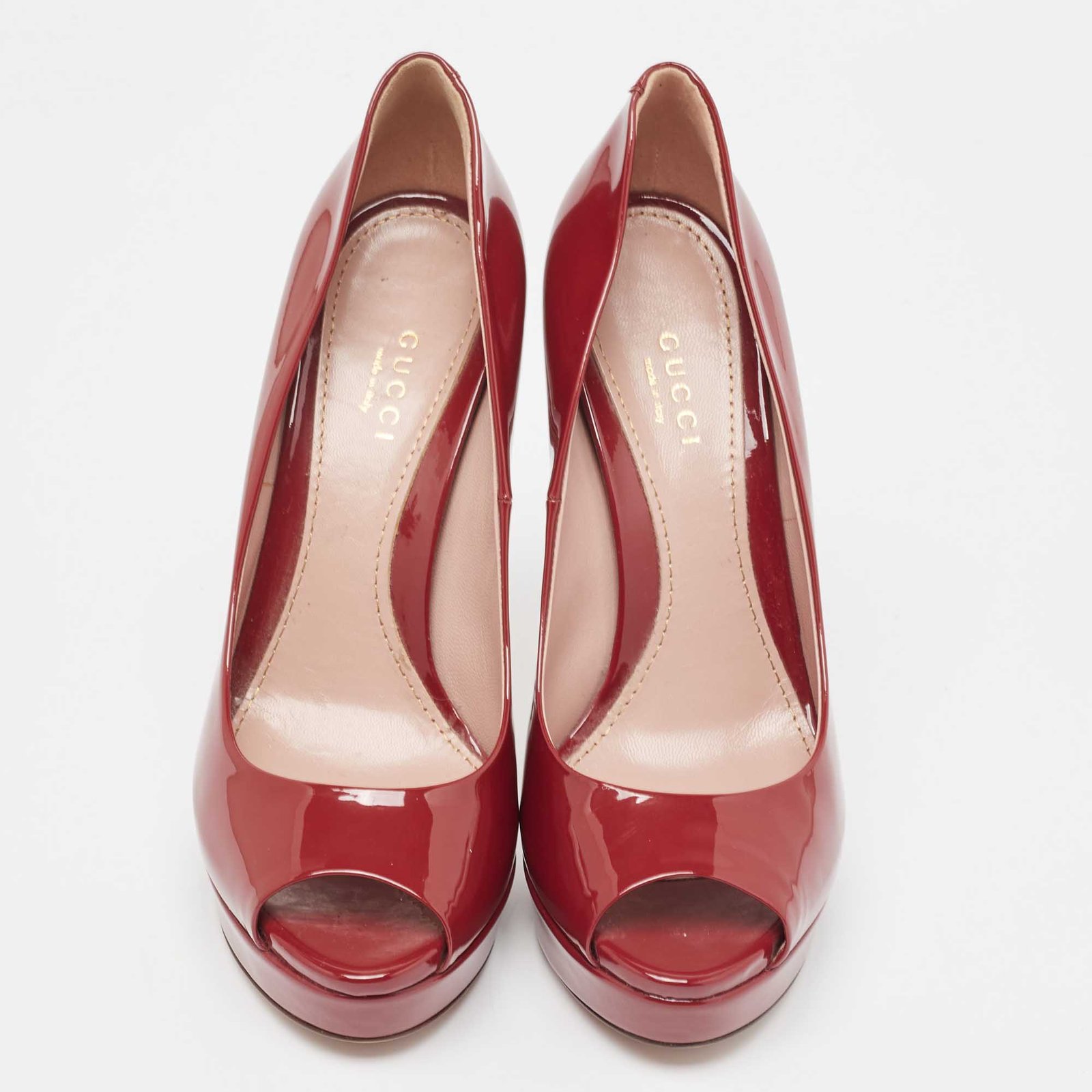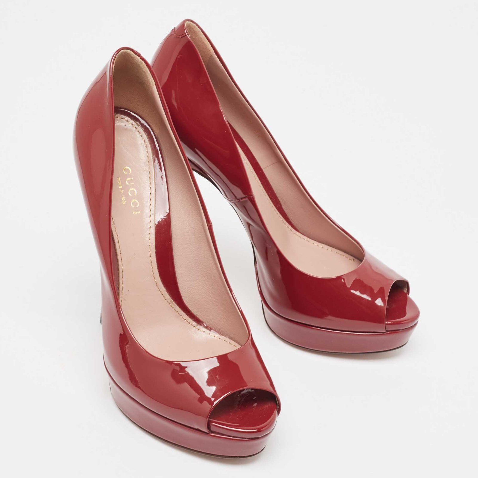 Gucci Red Patent Leather Peep Toe Pumps Size 37