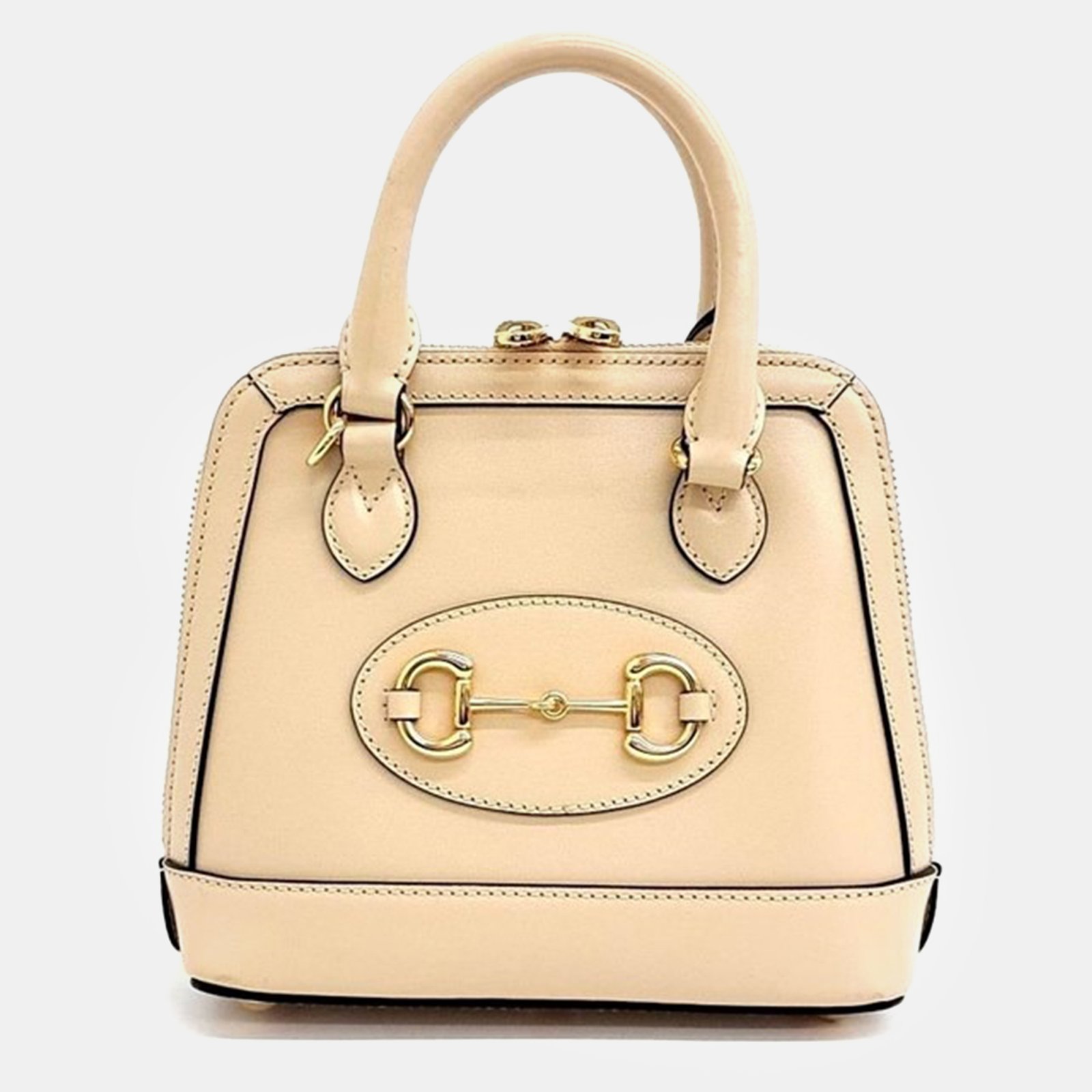 Gucci White Leather Horsebit 1955 Mini Top Handle Bag