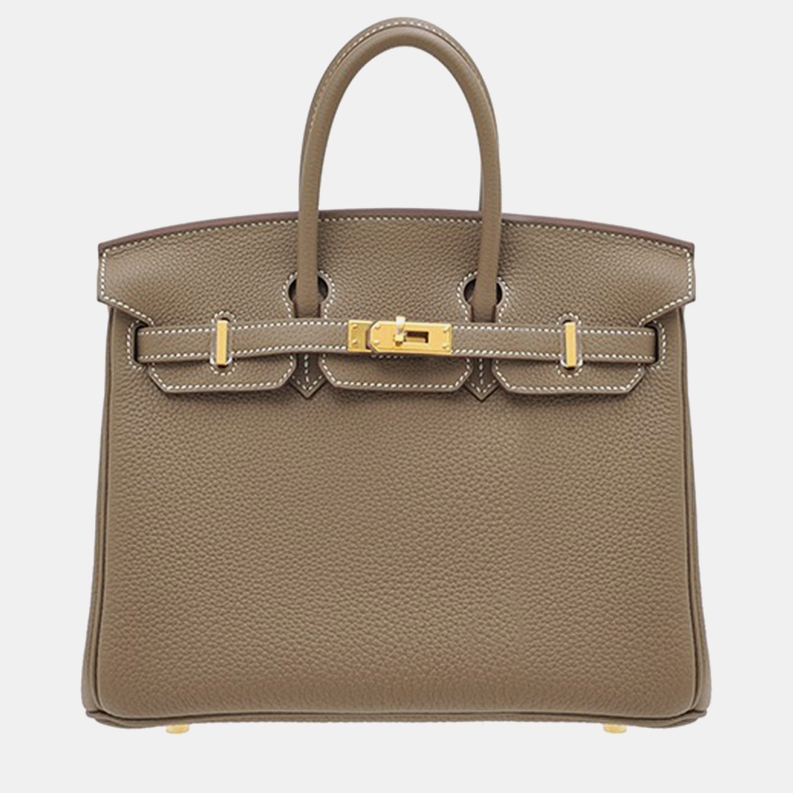Hermes Etoupe Grey Togo Leather Birkin 25 Bag