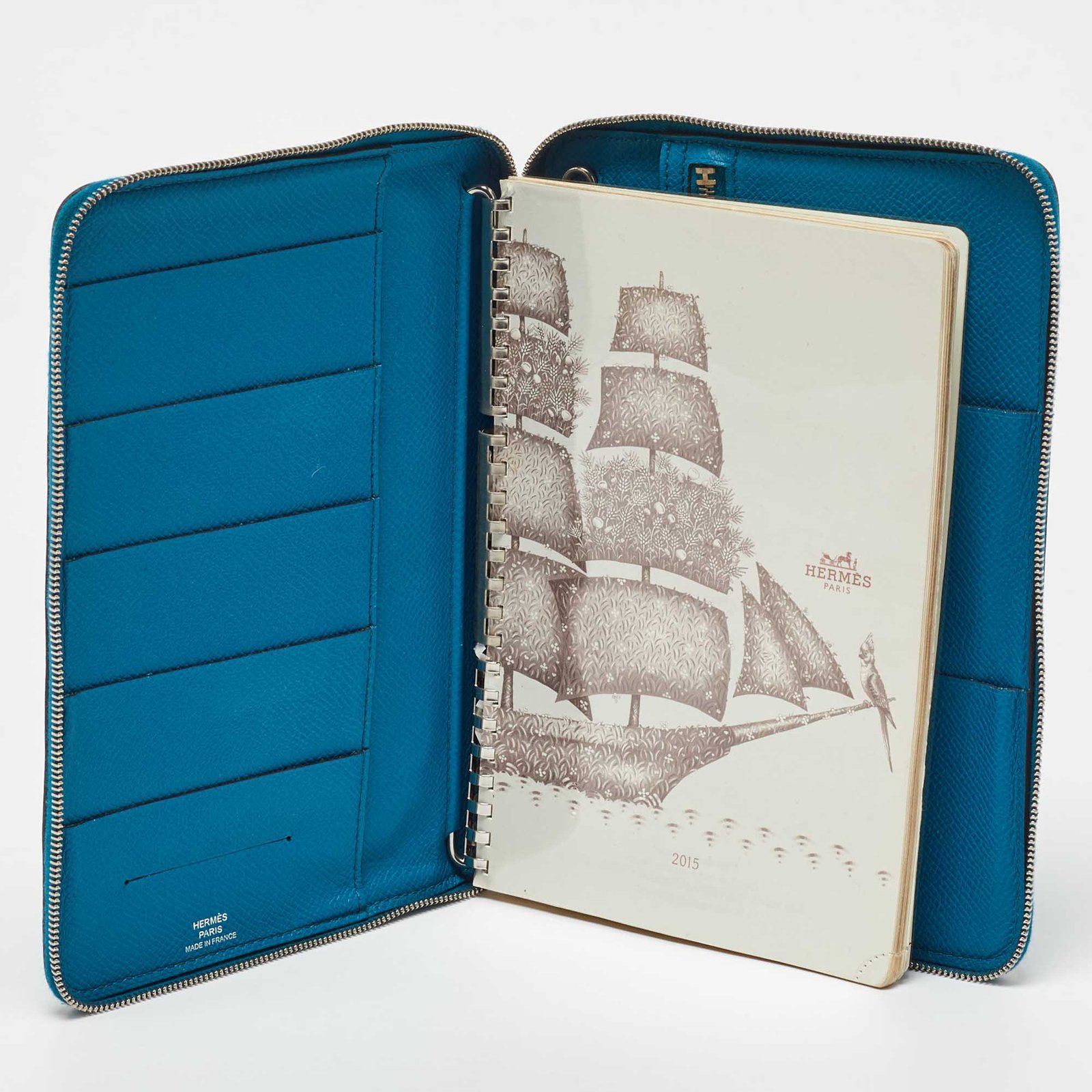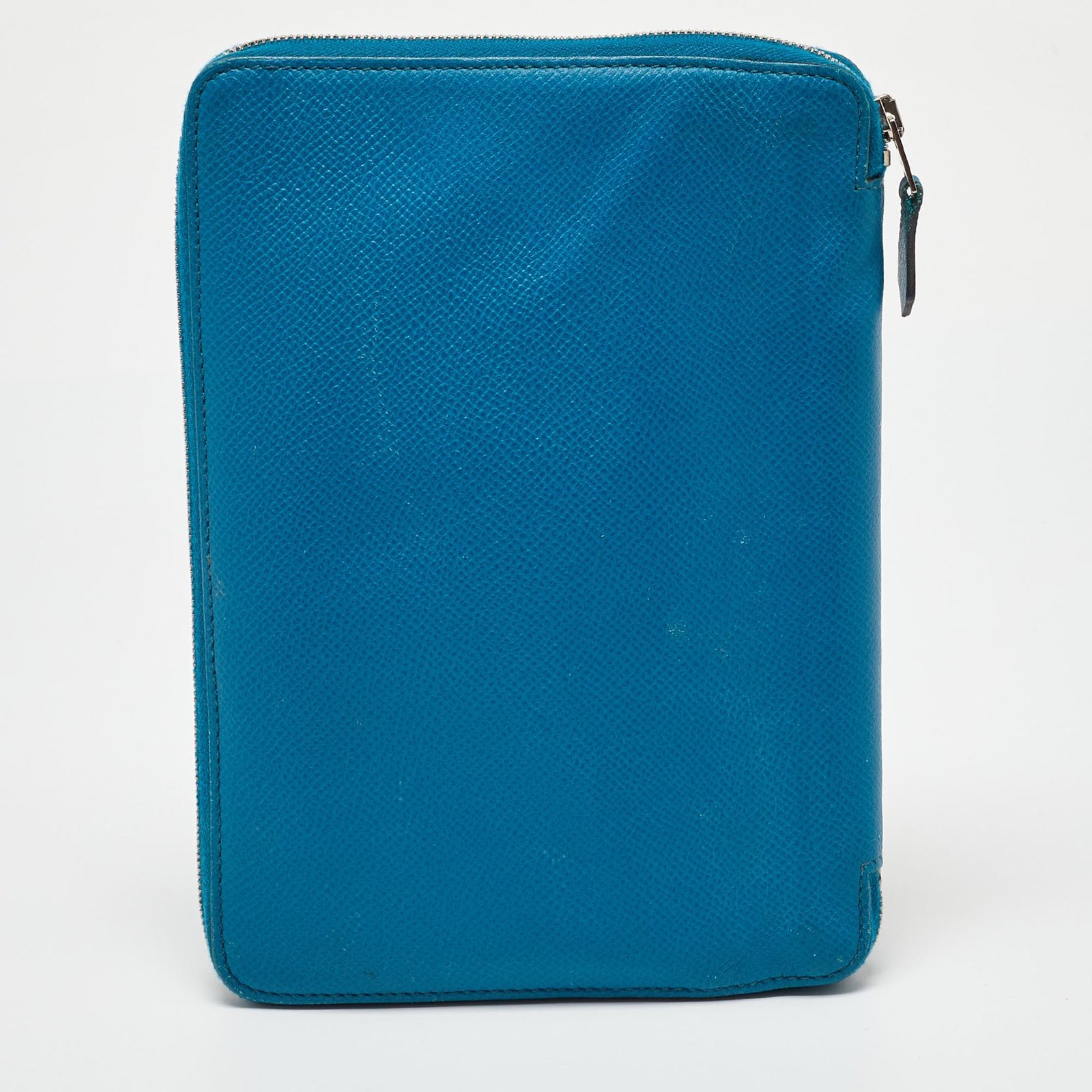 Hermès Blue Izmir Epsom Leather Globe Trotter Zip Agenda Planner