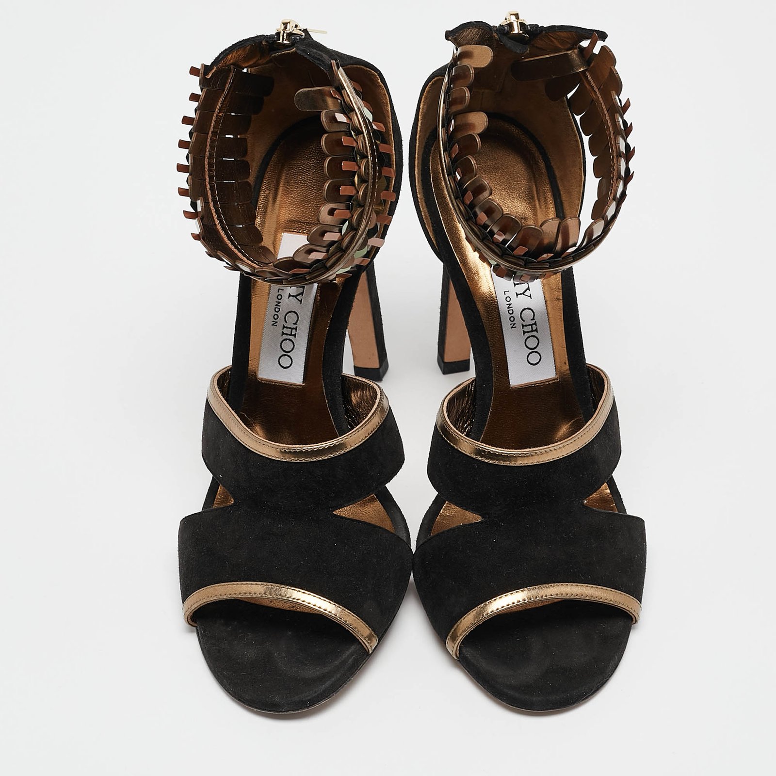 Jimmy Choo Black/Gold Suede and Metallic Leather Klara Sandals Size 38 - Image 4