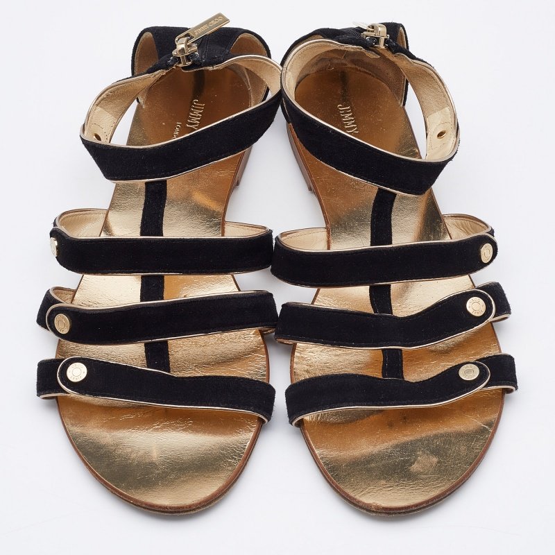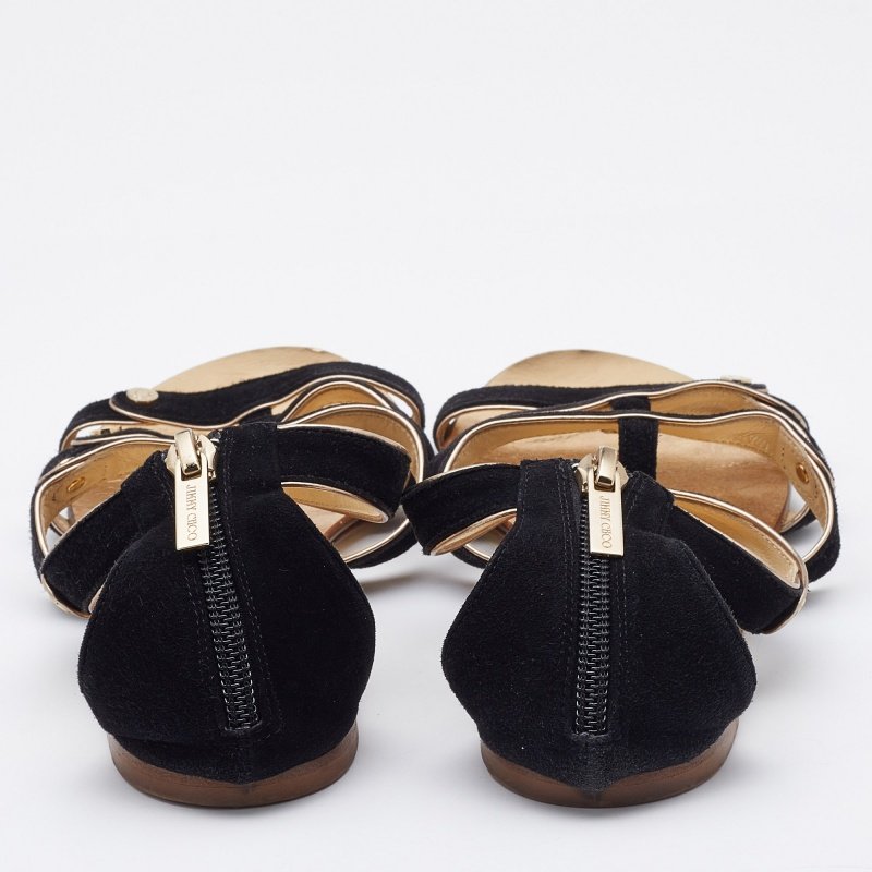Jimmy Choo Black Suede Flat Sandals Size 36