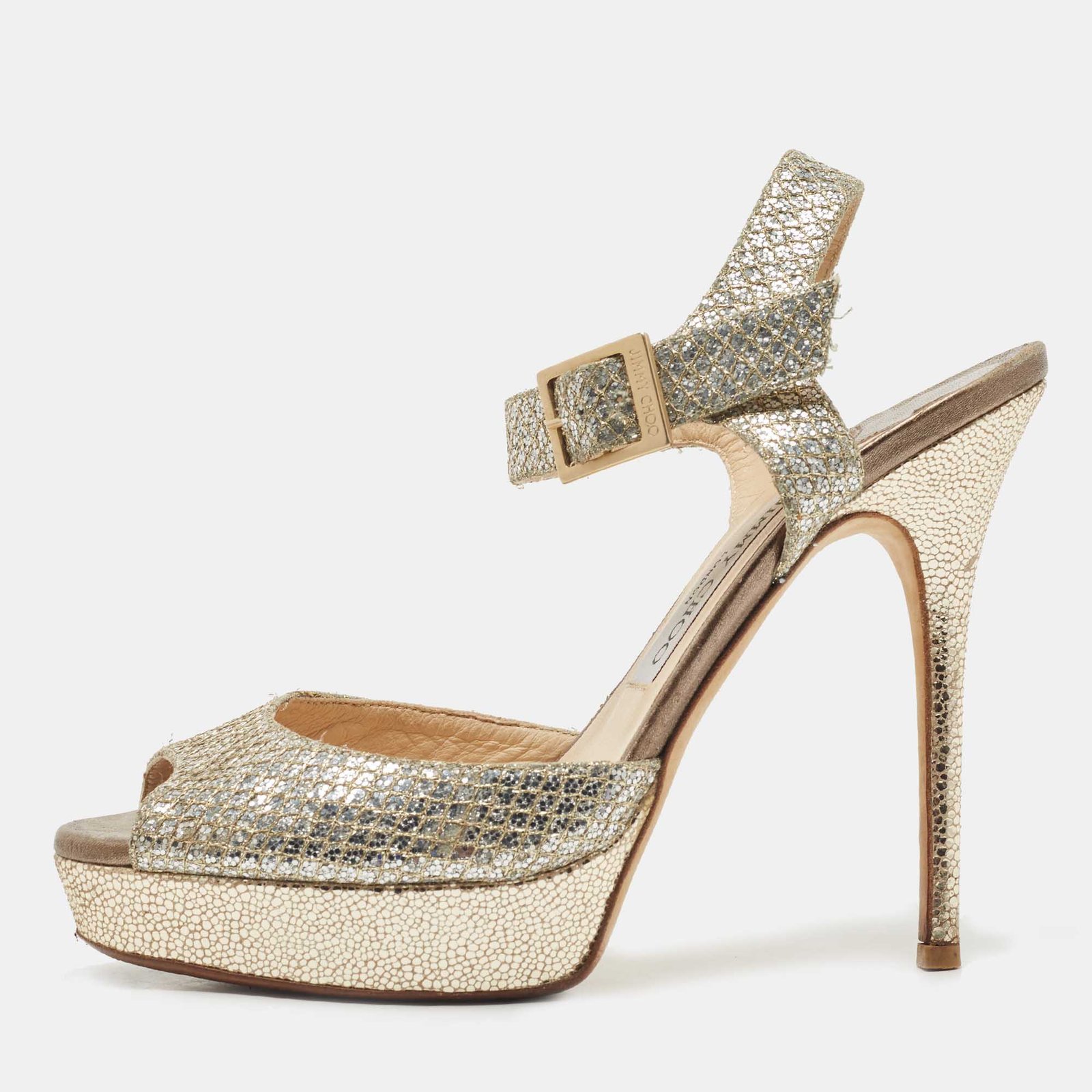 Jimmy Choo Gold Glitter Ankle Strap Platform Sandals Size 38.5 - Image 1