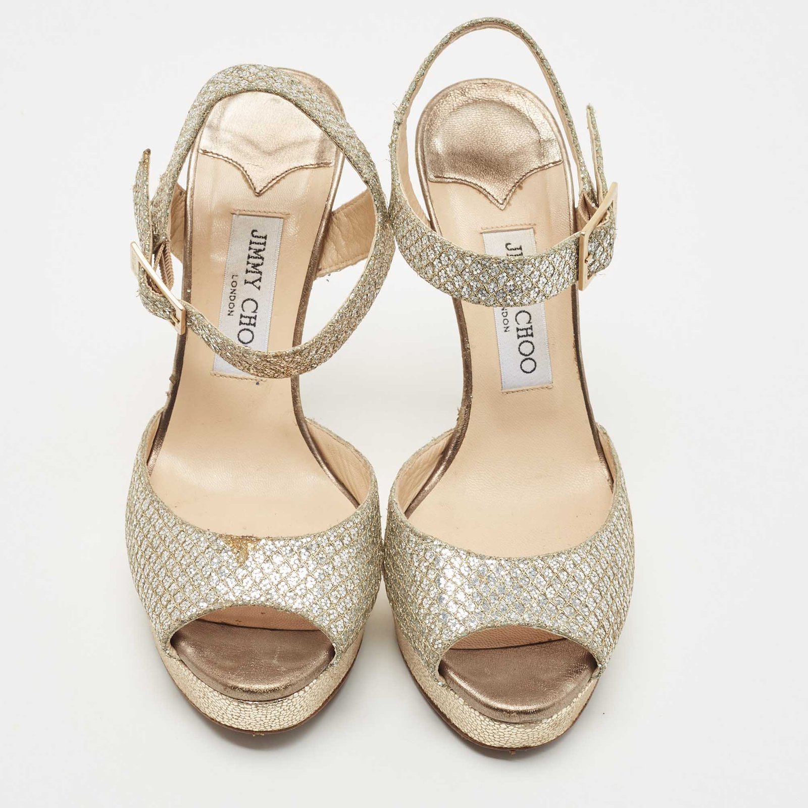 Jimmy Choo Gold Glitter Ankle Strap Platform Sandals Size 38.5 - Image 2