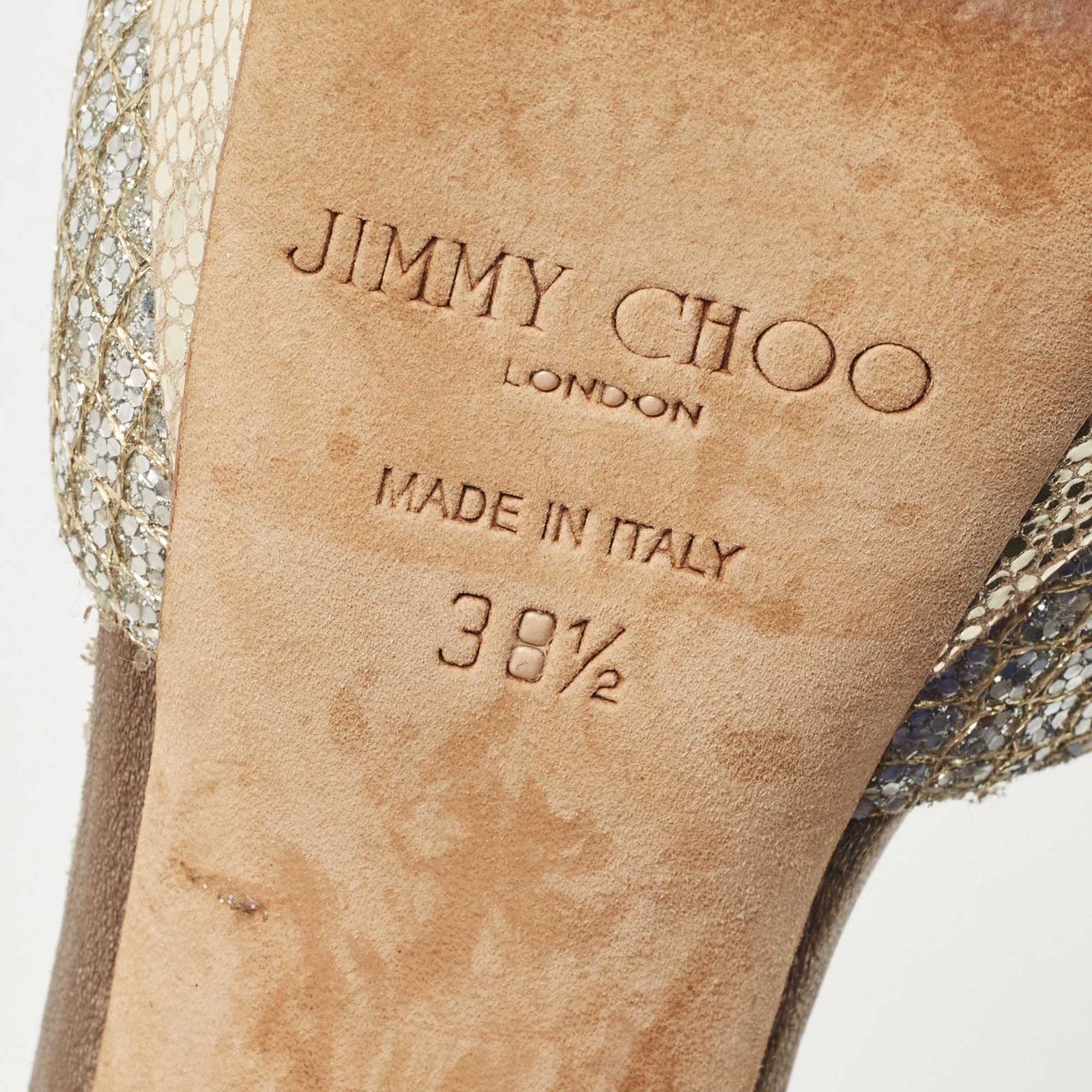 Jimmy Choo Gold Glitter Ankle Strap Platform Sandals Size 38.5 - Image 8