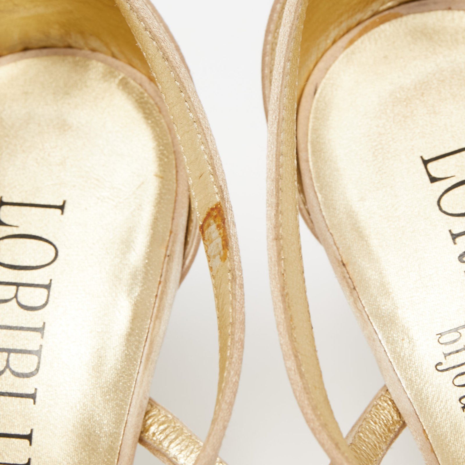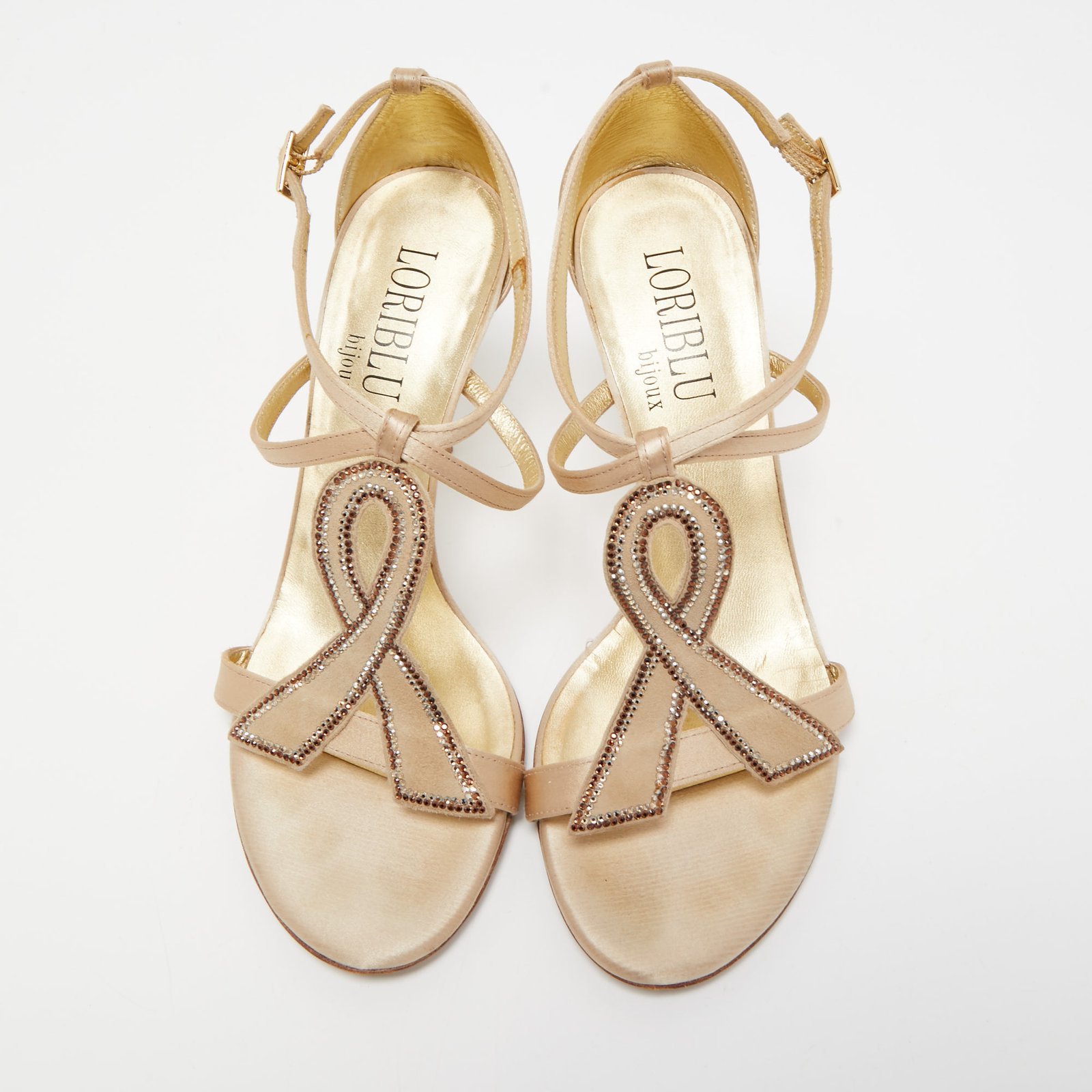 Loriblu Beige Satin Crystal Ankle Strap Sandals Size 38