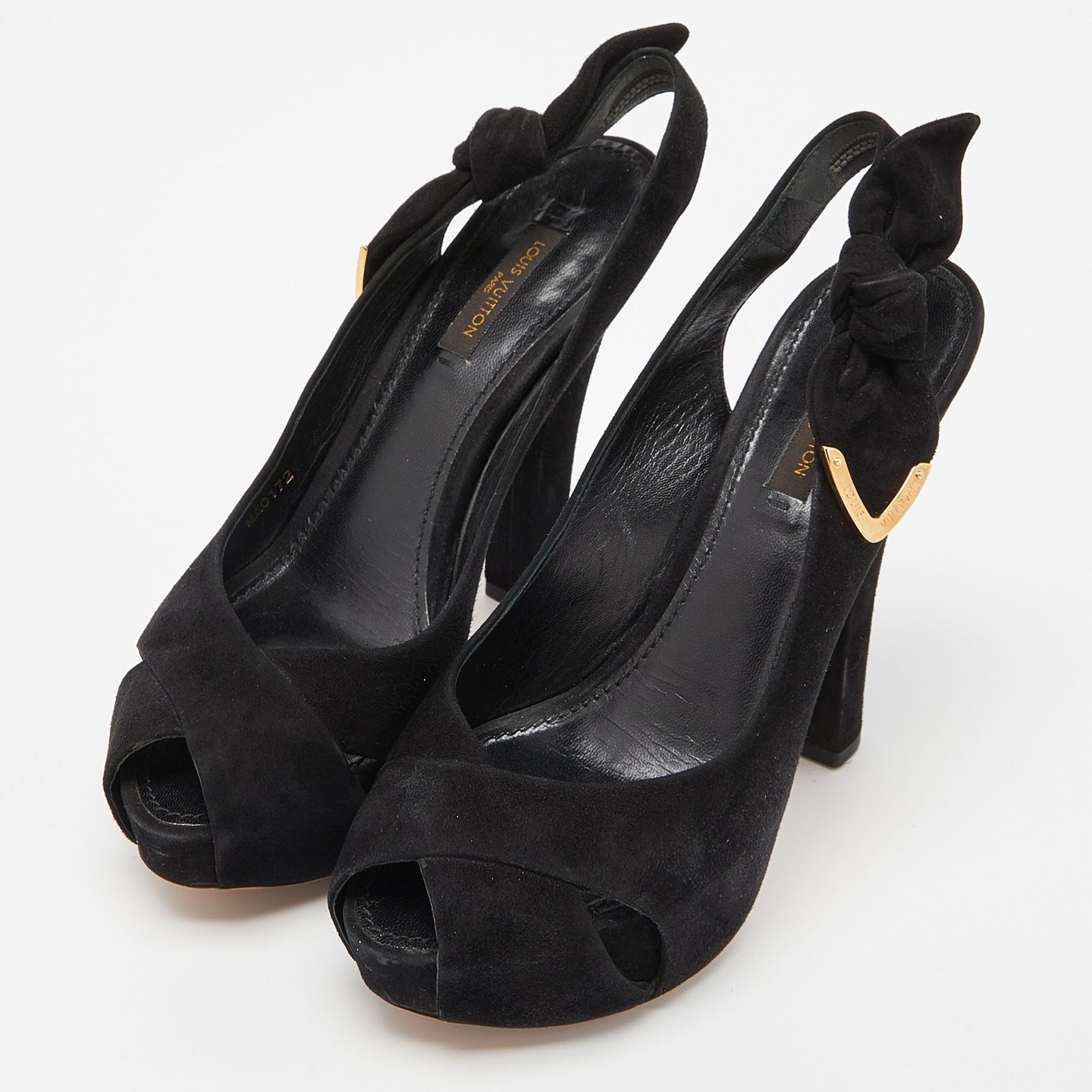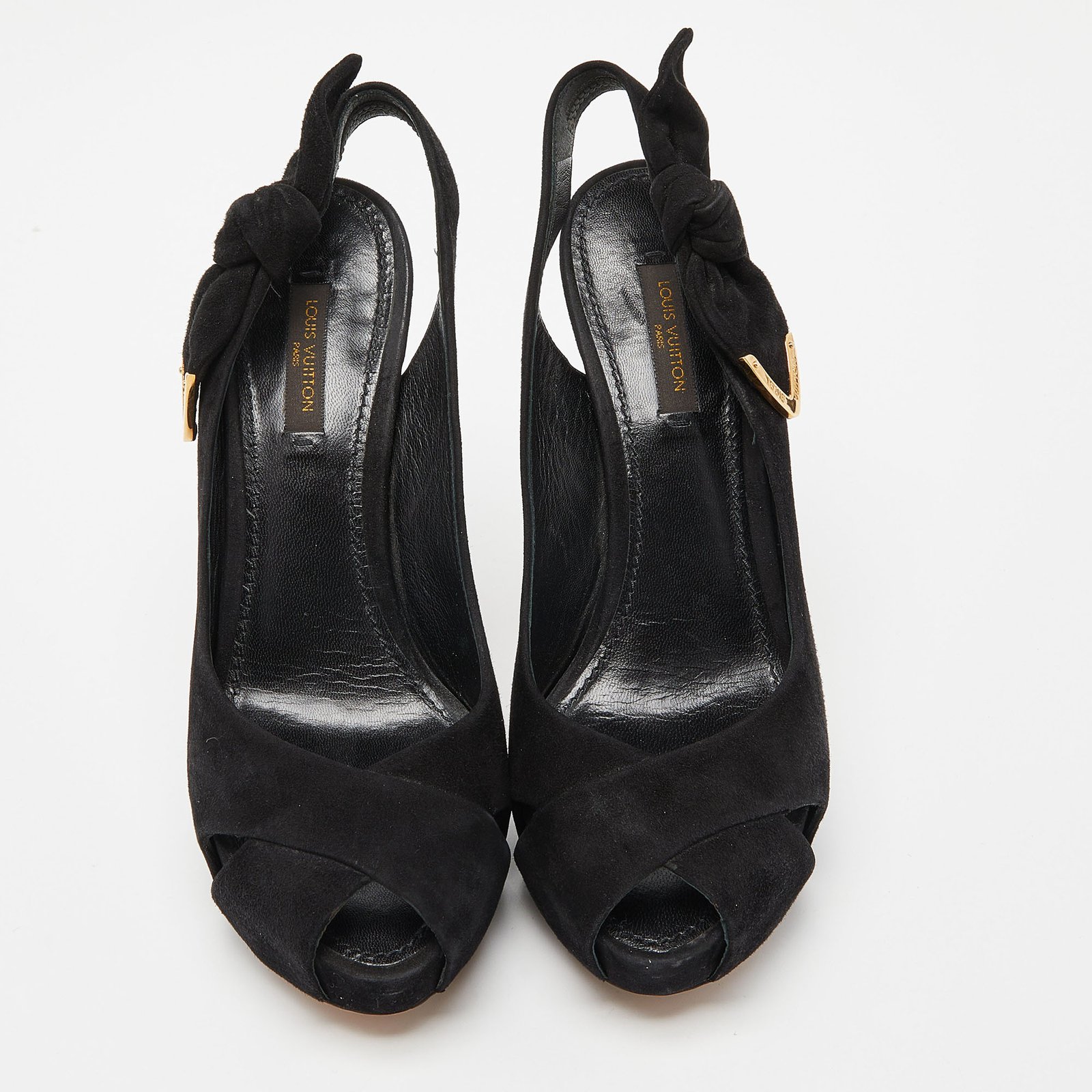 Louis Vuitton Black Suede Tonka Slingback Sandals Size 36.5