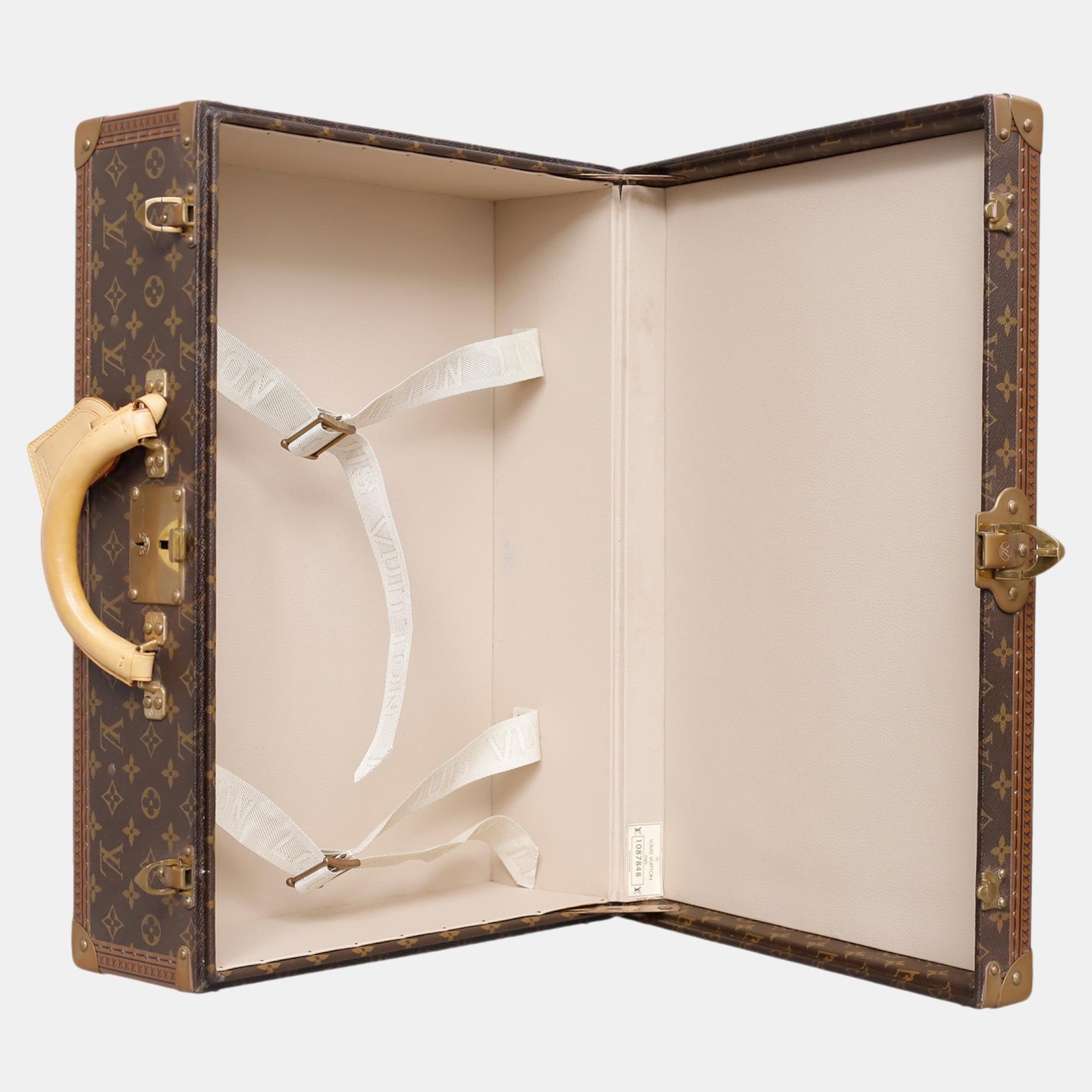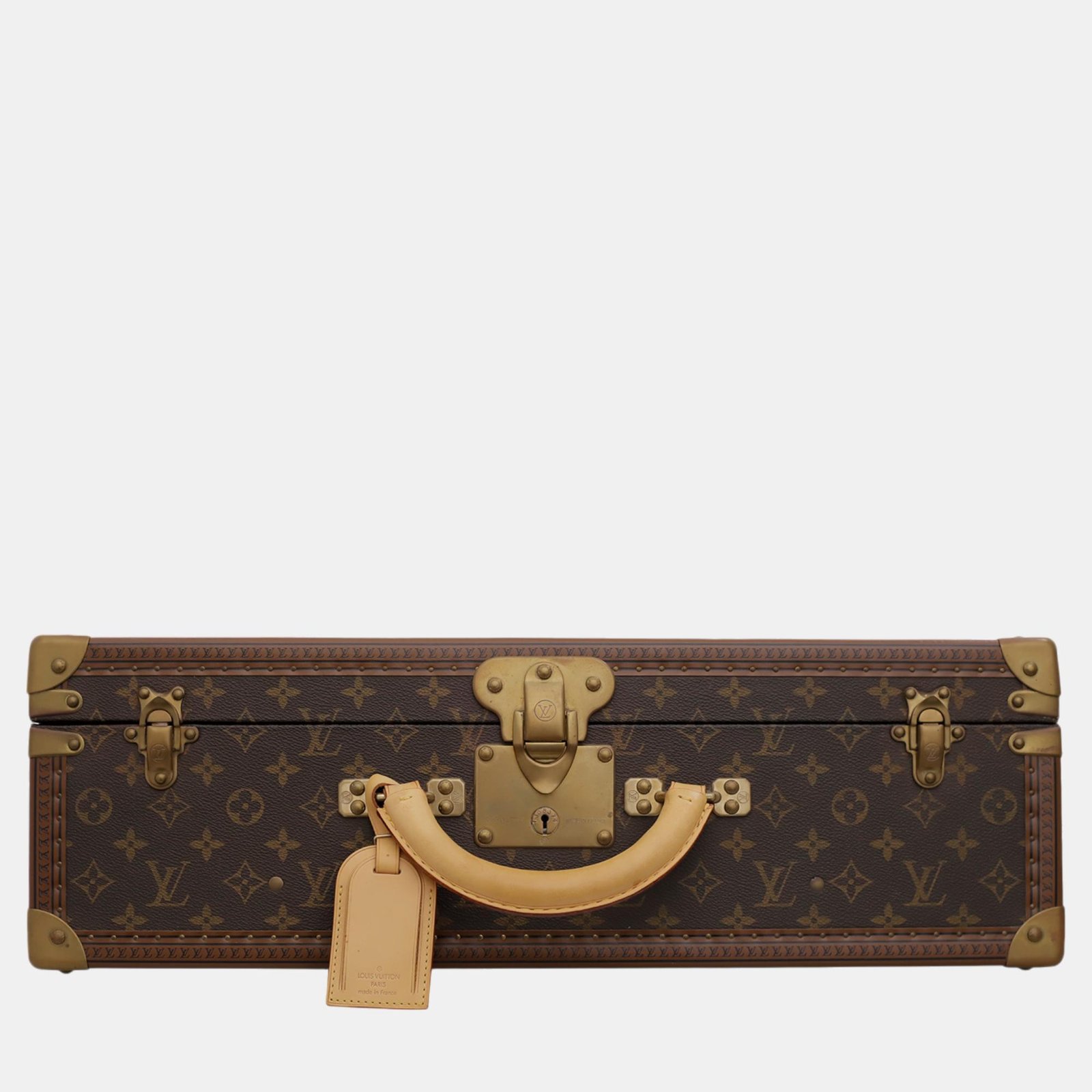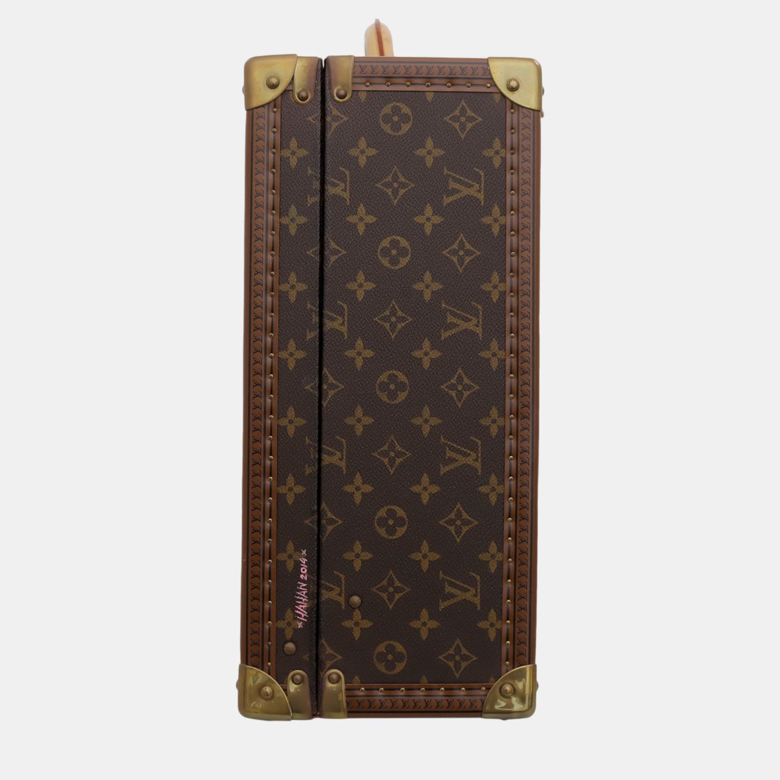 Item shows slight signs of wear with minor marks on the inner leather lining. Oxidations and rust on the front hardwares. Wear marks and discolorations on the top rolled handles vachetta leather and blank leather name tag. There are markings and scuffs on the painter part of the luggage.