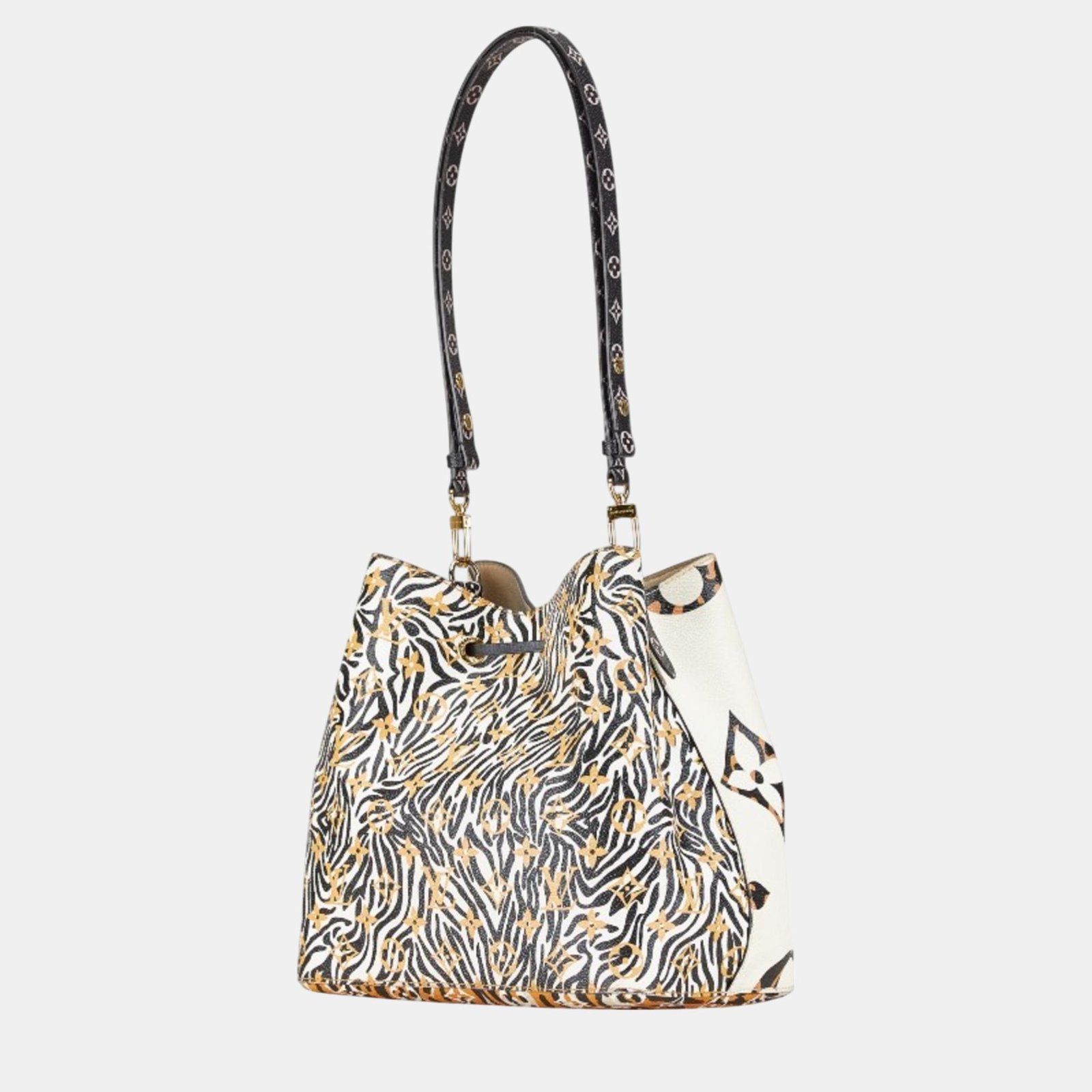 Louis Vuitton Ivory Black Orange Coated Canvas Leather Monogram Jungle Neonoe Shoulder Bag