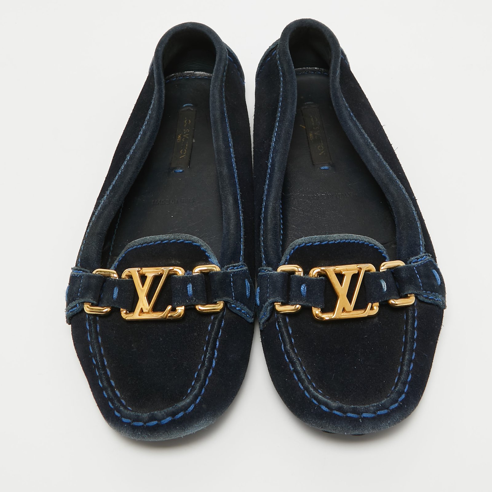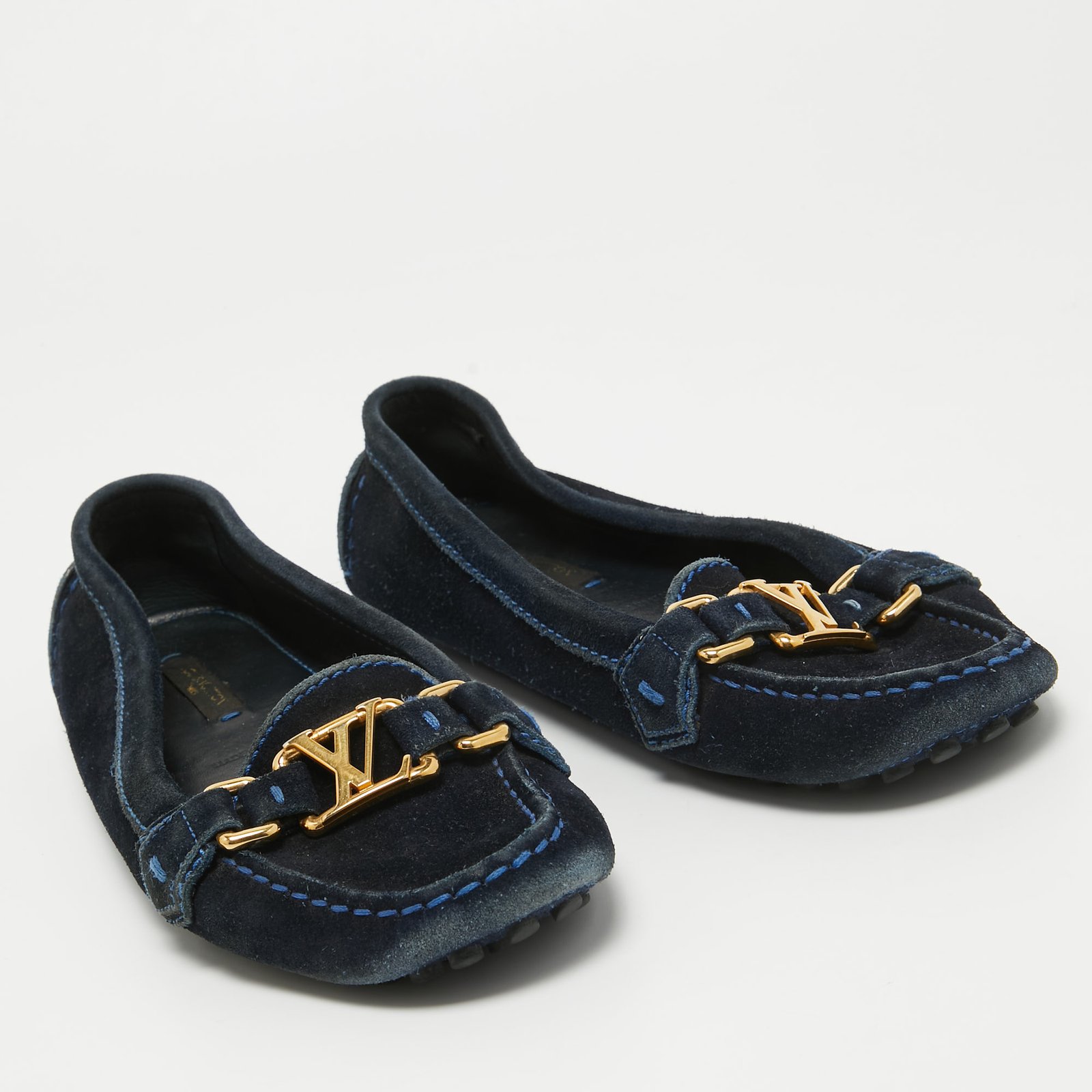 Louis Vuitton Navy Blue Suede Oxford Loafers Size 35.5
