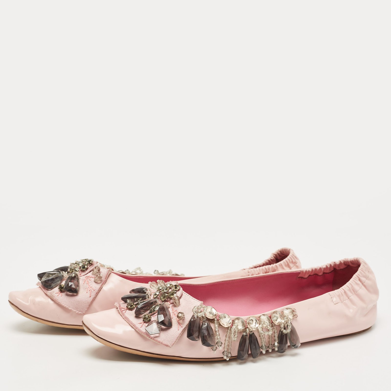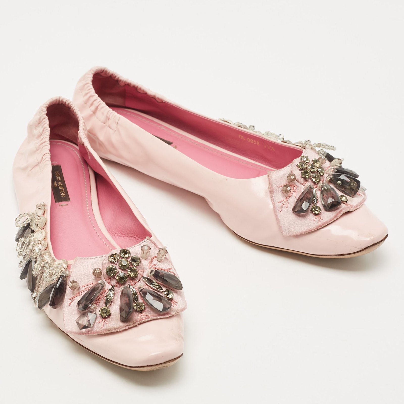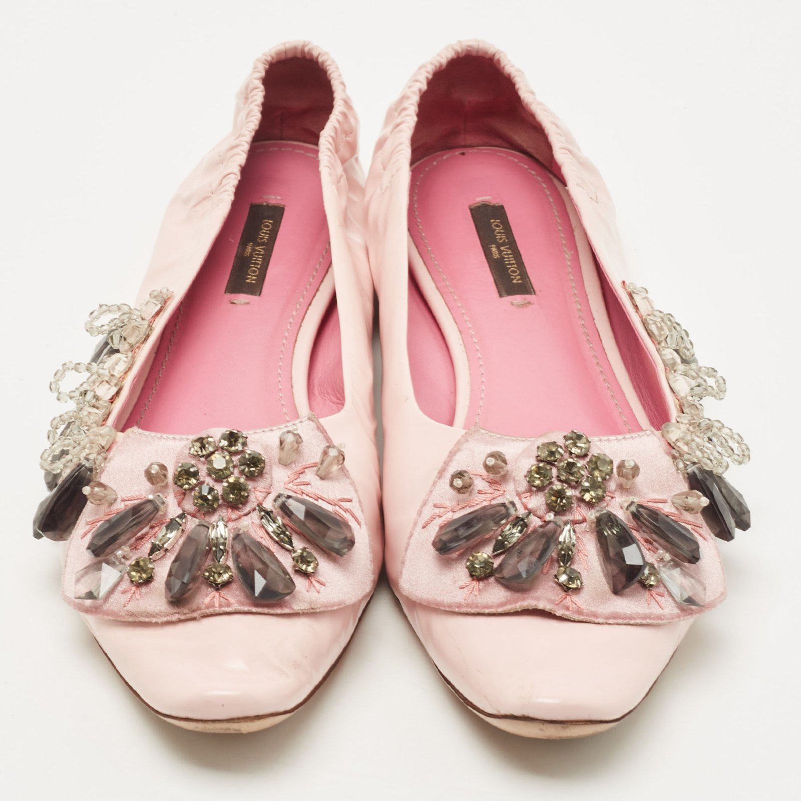 Louis Vuitton Pink Leather Embellished Ballet Flats Size 39.5