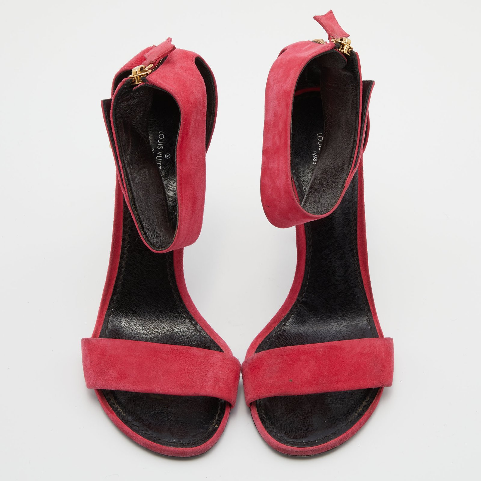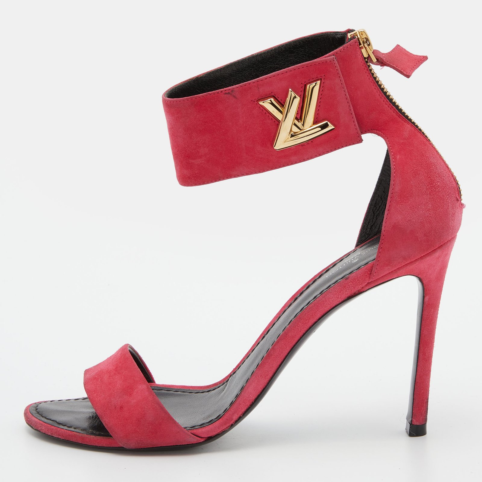 Louis Vuitton Pink Suede Twist Sandals Size 38.5