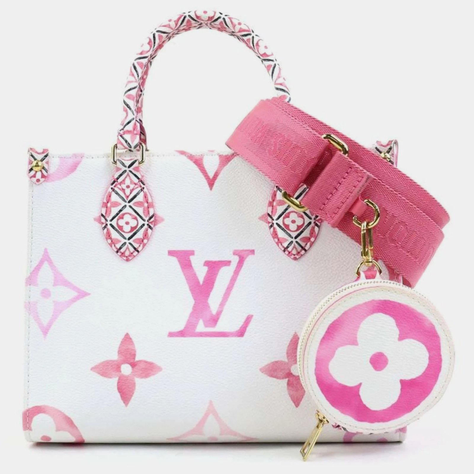 Louis Vuitton White/Pink Leather By The Pool OnTheGo PM Handbag - Image 1