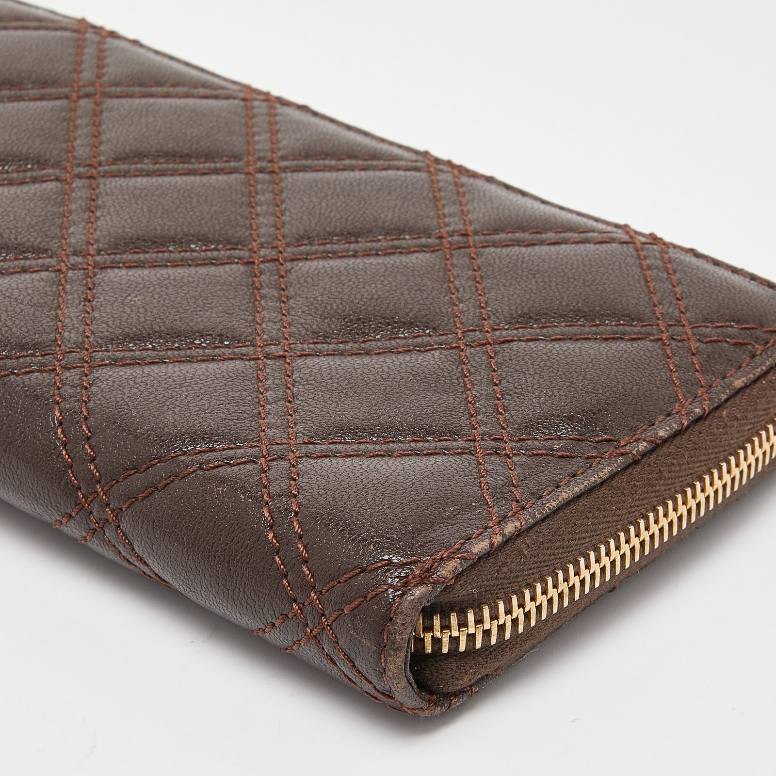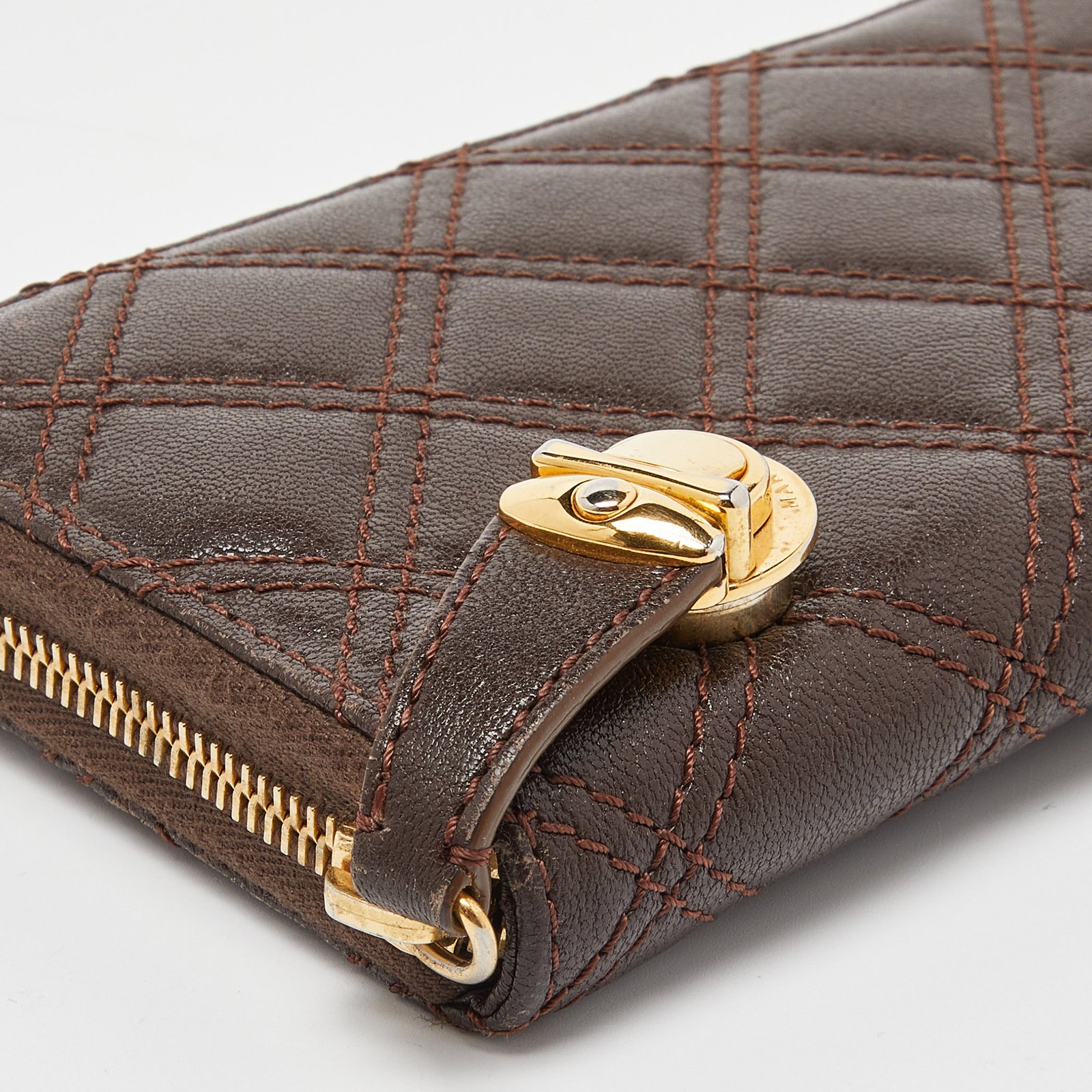 Marc Jacobs Brown Quilted Leather Deluxe Zip Around Wallet