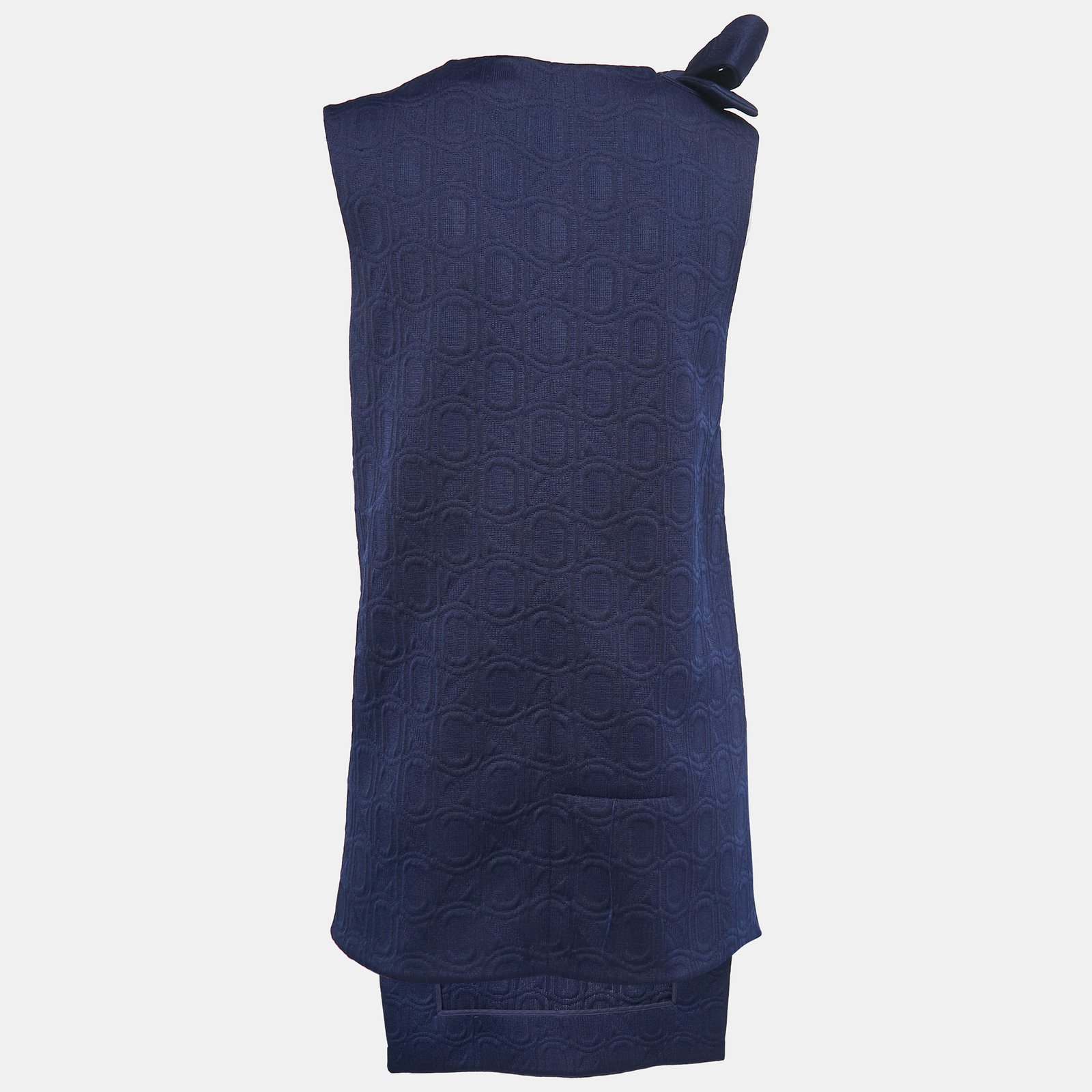 Marni Navy Blue Jacquard Bow Detail Sleeveless Short Dress S - Image 3
