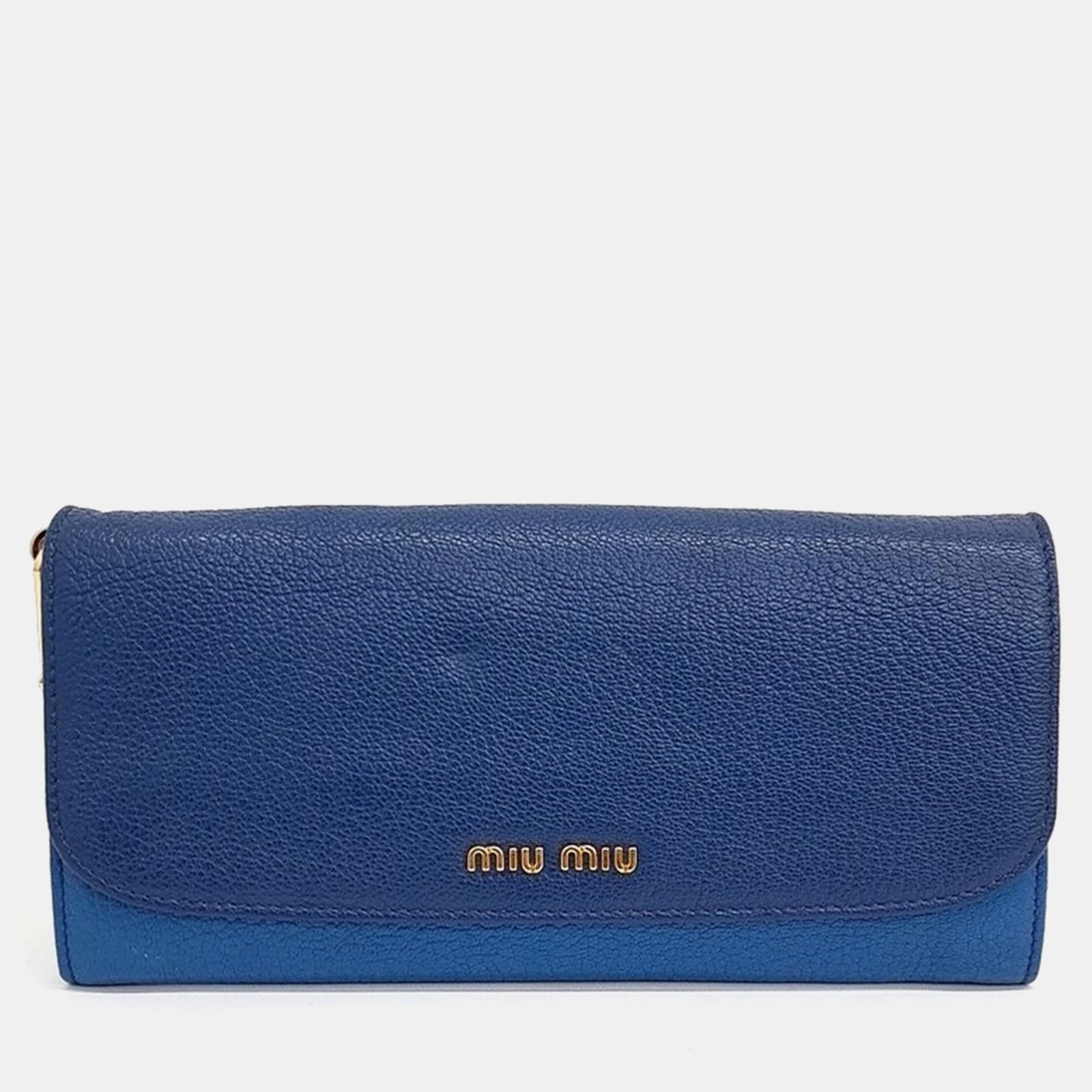 Miu Miu Blue Leather Madras Mini Crossbody Bag