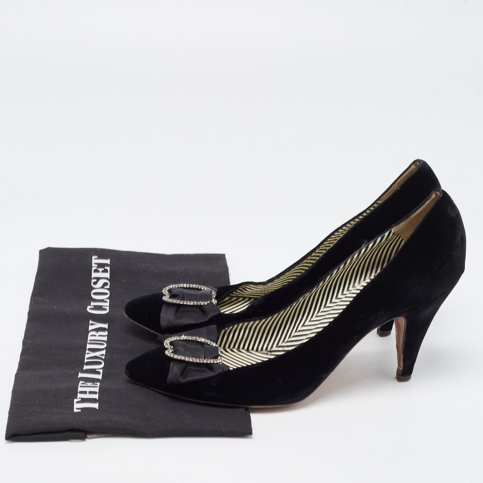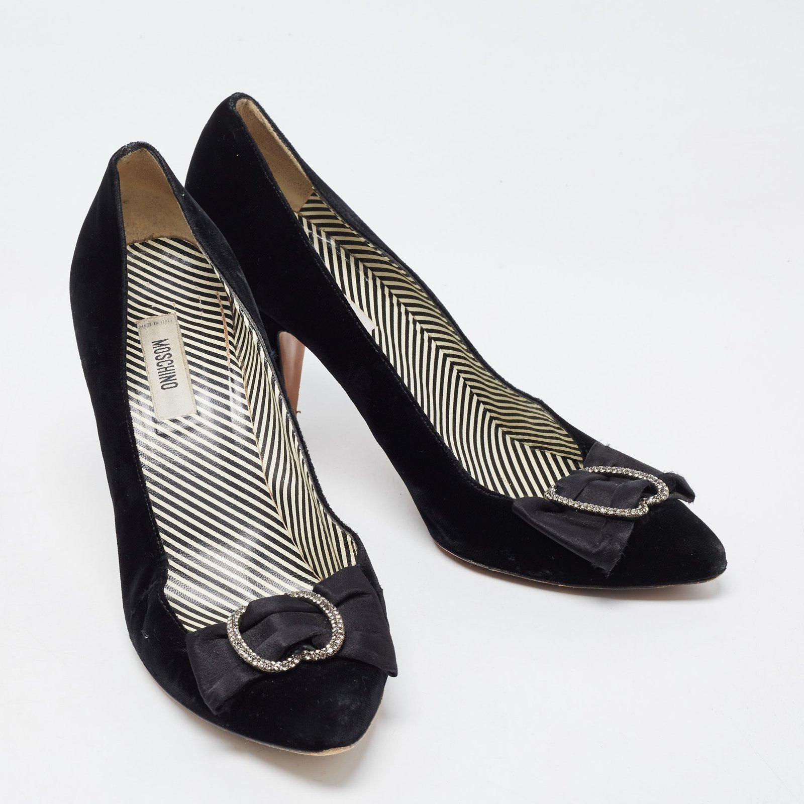 Moschino Black Velvet and Satin Crystal Embellished Bow Pumps Size 41
